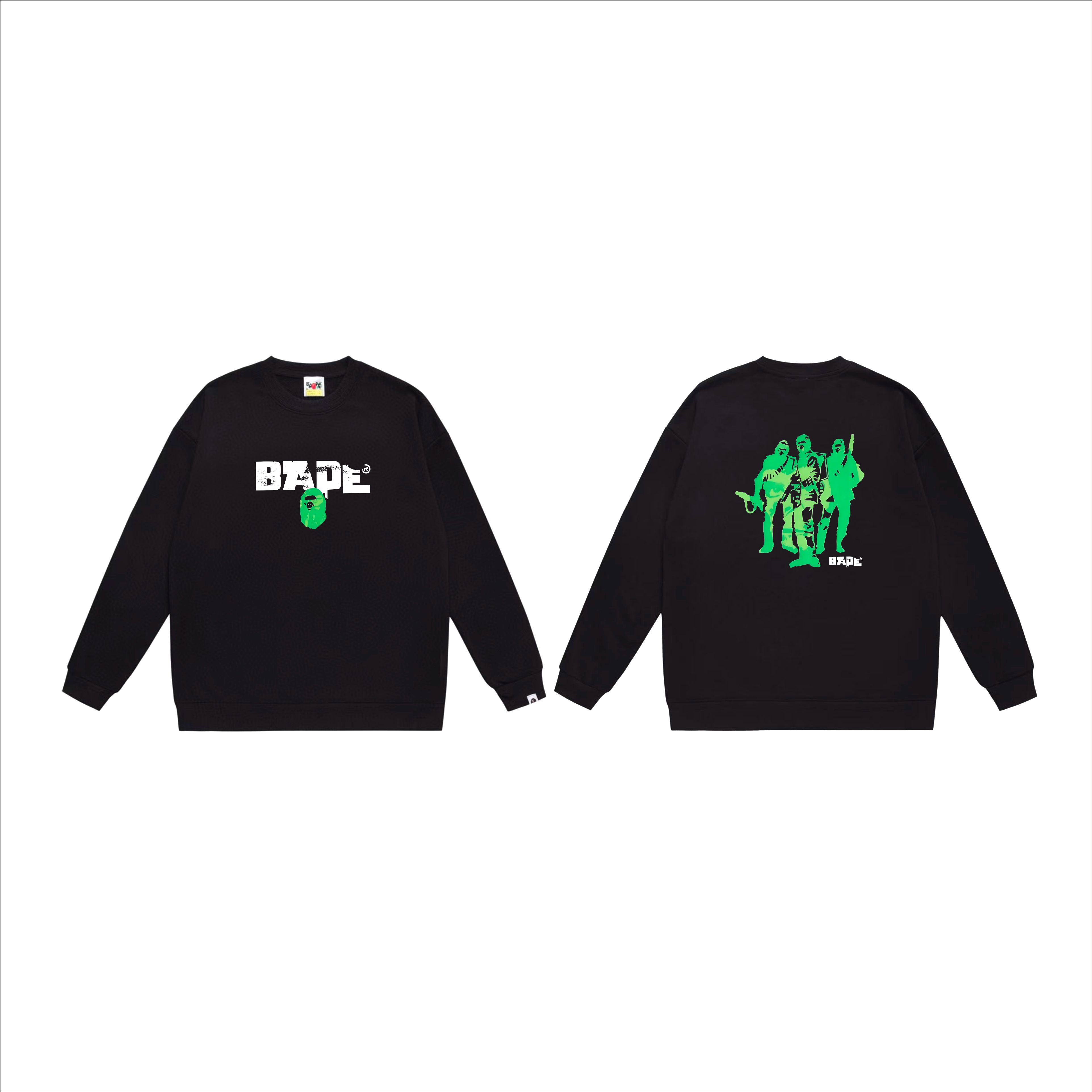 這款衣服是AAAAA 1:1 質量(非常棒). 使用了和原版一模一樣的材料. 商標部分也保持了和Bape一樣. 圖片拍攝是實物衣服拍攝, 您所收到的實物保證和我們圖片一模一樣.