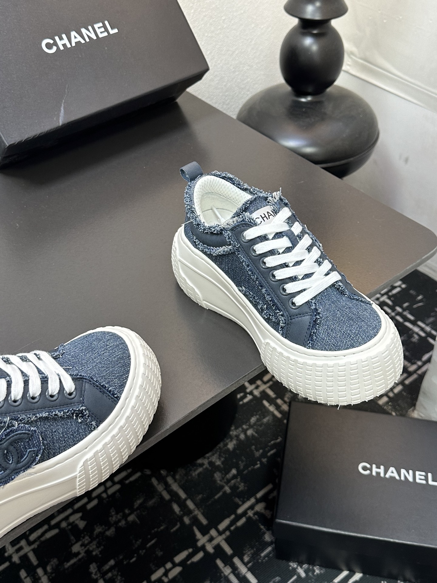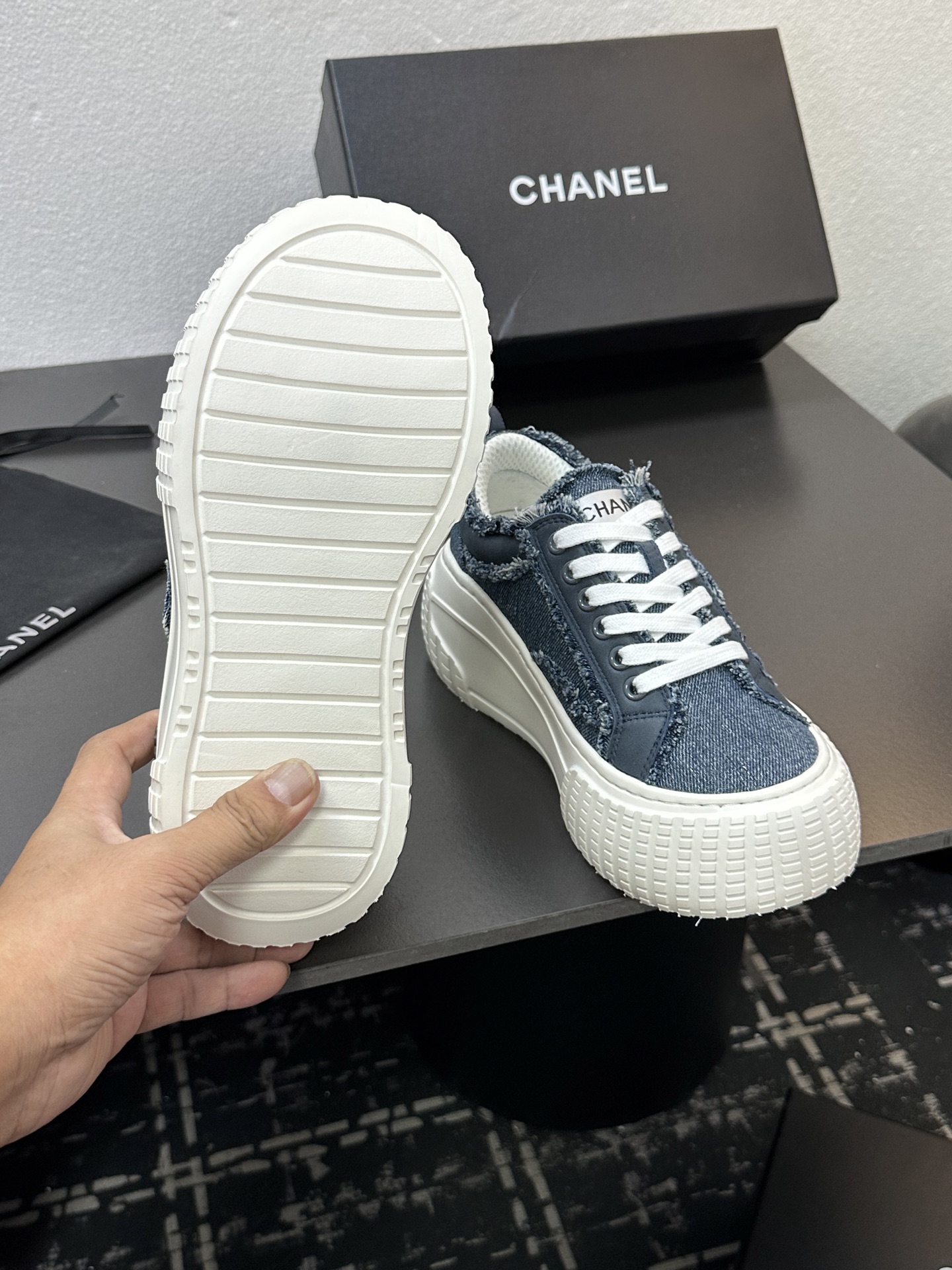 這款鞋子是AAAAA 1:1 質量(非常棒). 使用了和原版一模一樣的材料. 商標部分也保持了和香奈兒/Chanel一樣. 圖片拍攝是實物鞋子拍攝, 您所收到的實物保證和我們圖片一模一樣.