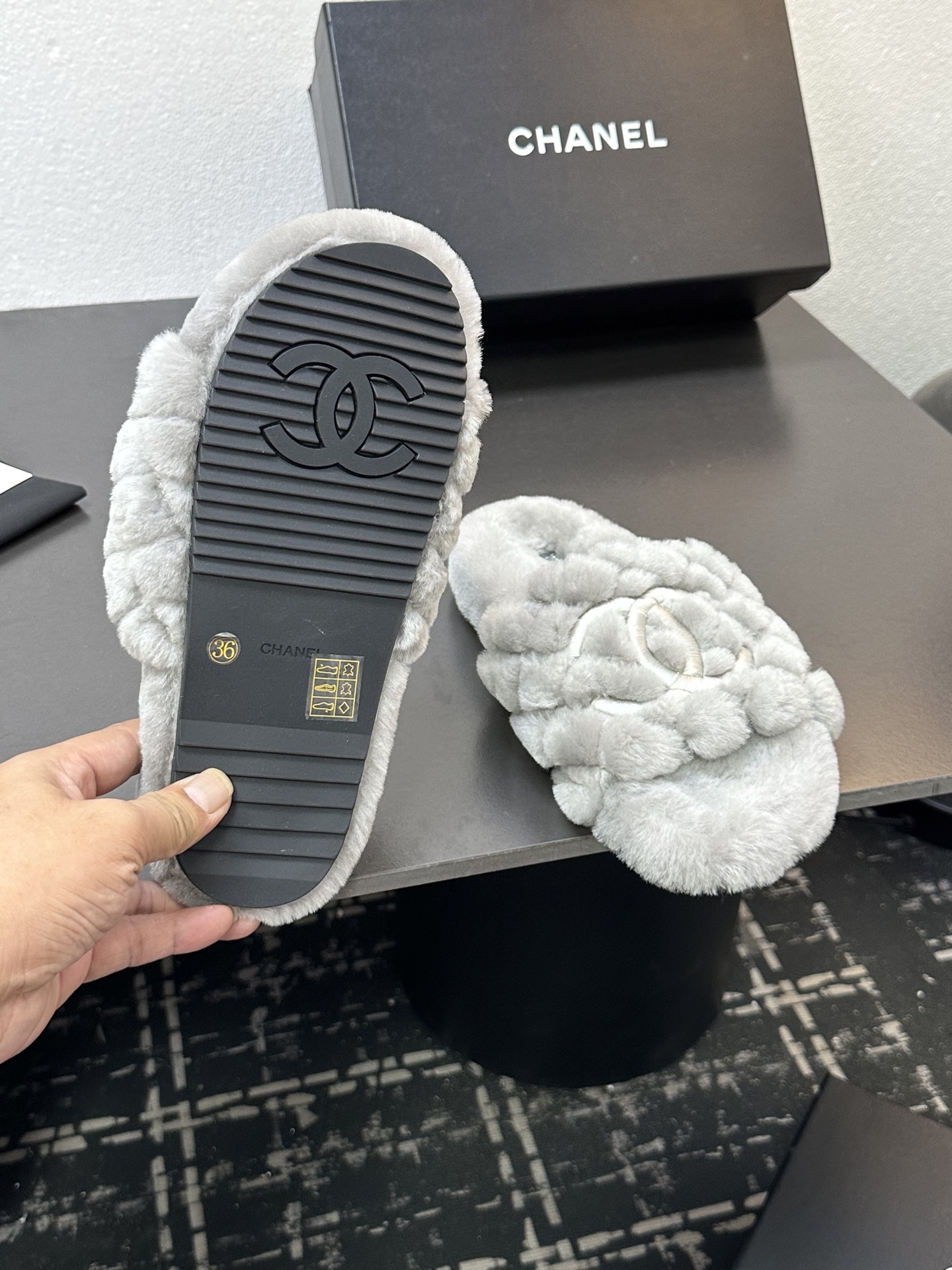 這款鞋子是AAAAA 1:1 質量(非常棒). 使用了和原版一模一樣的材料. 商標部分也保持了和香奈兒/Chanel一樣. 圖片拍攝是實物鞋子拍攝, 您所收到的實物保證和我們圖片一模一樣.