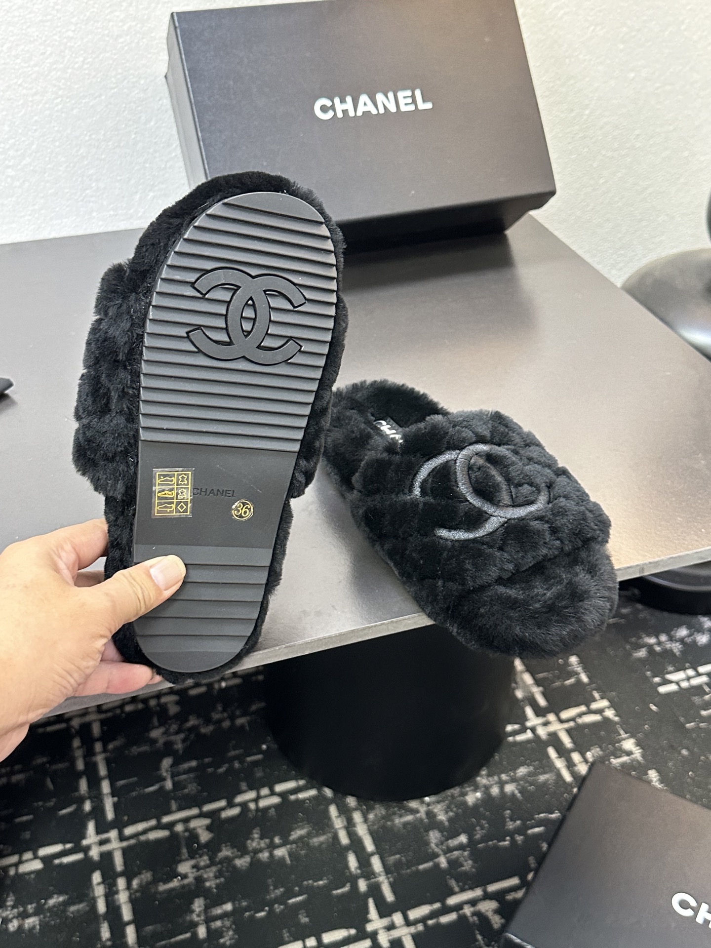 這款鞋子是AAAAA 1:1 質量(非常棒). 使用了和原版一模一樣的材料. 商標部分也保持了和香奈兒/Chanel一樣. 圖片拍攝是實物鞋子拍攝, 您所收到的實物保證和我們圖片一模一樣.