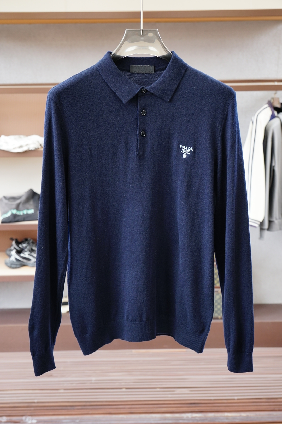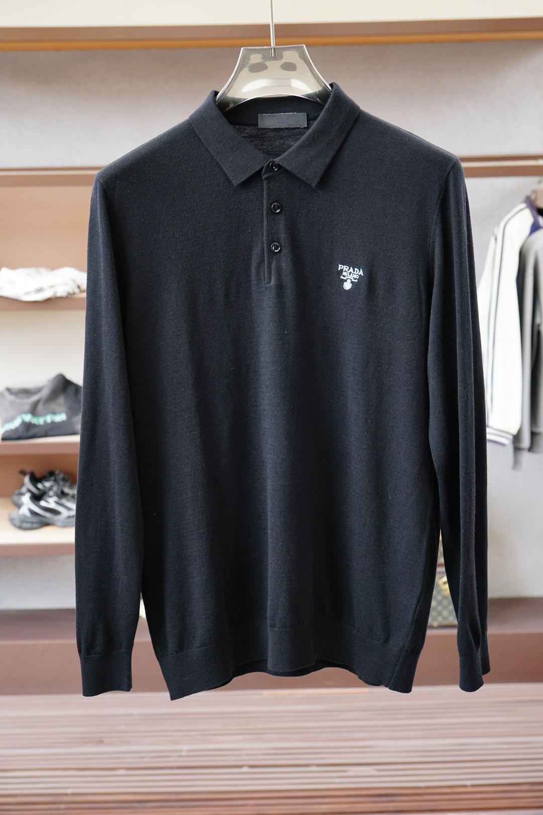 這款衣服是AAAAA 1:1 質量(非常棒). 使用了和原版一模一樣的材料. 商標部分也保持了和普拉達/Prada一樣. 圖片拍攝是實物衣服拍攝, 您所收到的實物保證和我們圖片一模一樣.