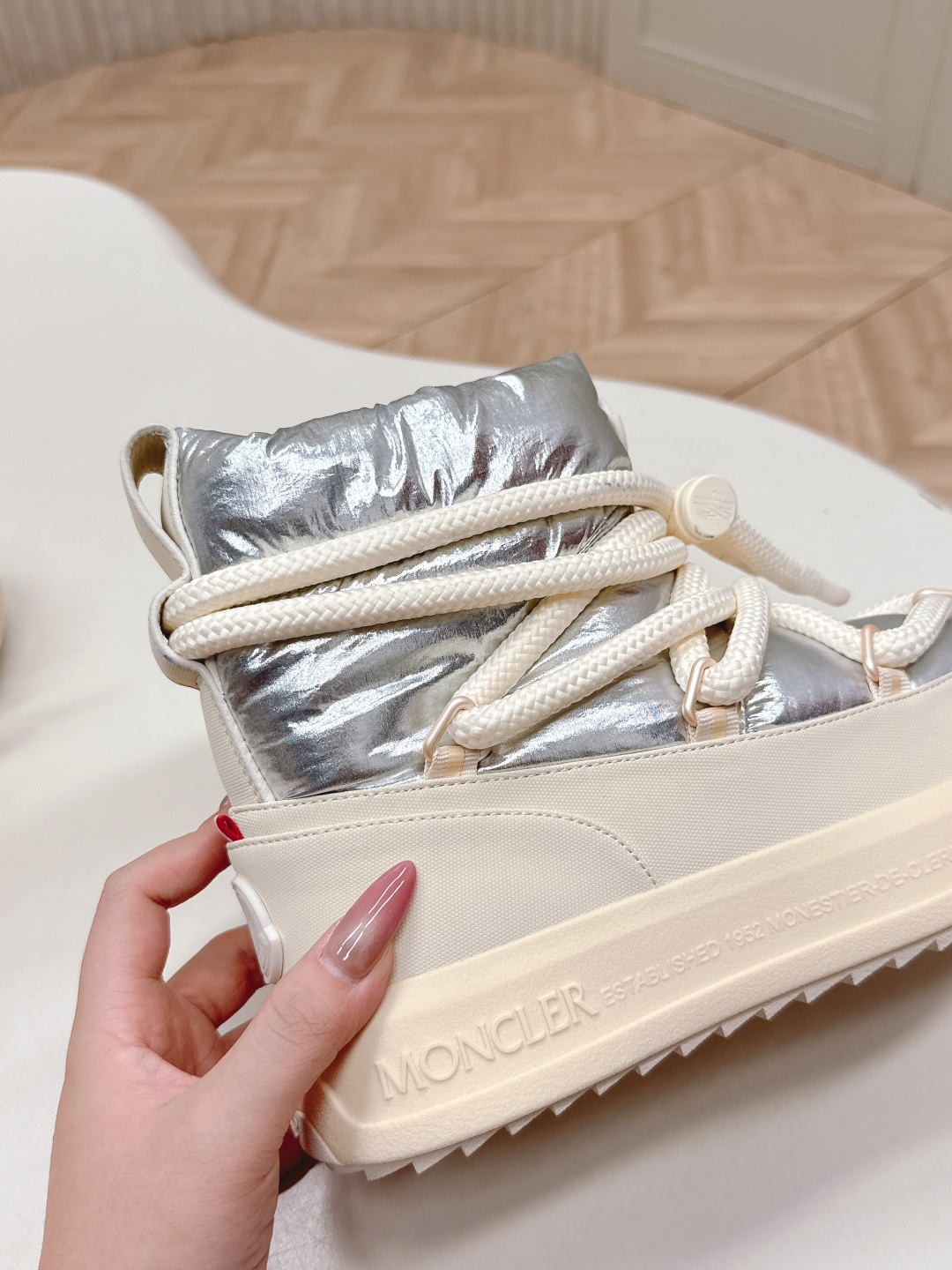 這款鞋子是AAAAA 1:1 質量(非常棒). 使用了和原版一模一樣的材料. 商標部分也保持了和moncler一樣. 圖片拍攝是實物鞋子拍攝, 您所收到的實物保證和我們圖片一模一樣.
