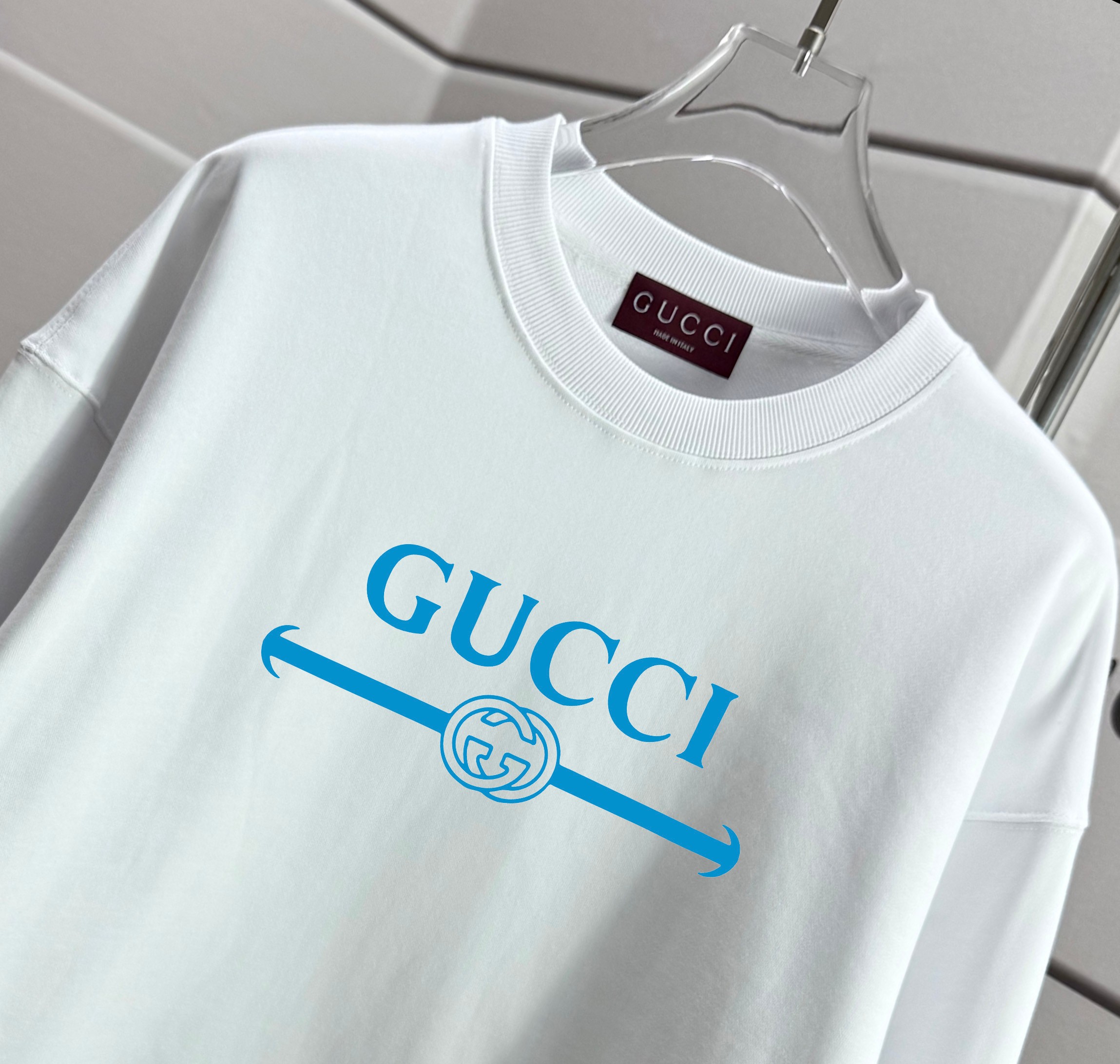 這款衣服是AAAAA 1:1 質量(非常棒). 使用了和原版一模一樣的材料. 商標部分也保持了和古奇/Gucci一樣. 圖片拍攝是實物衣服拍攝, 您所收到的實物保證和我們圖片一模一樣.