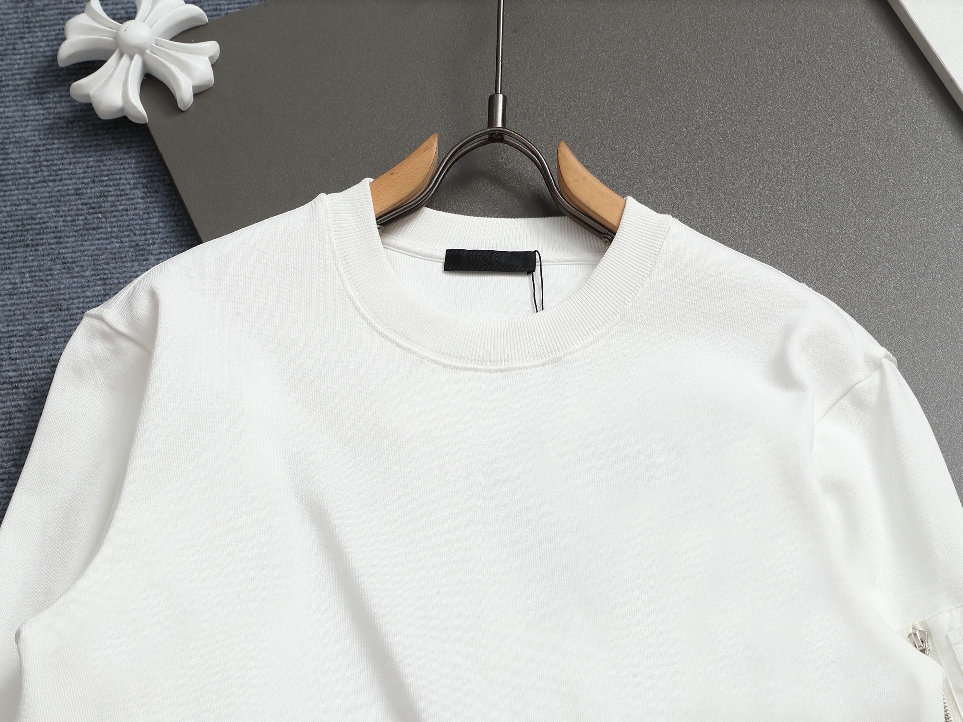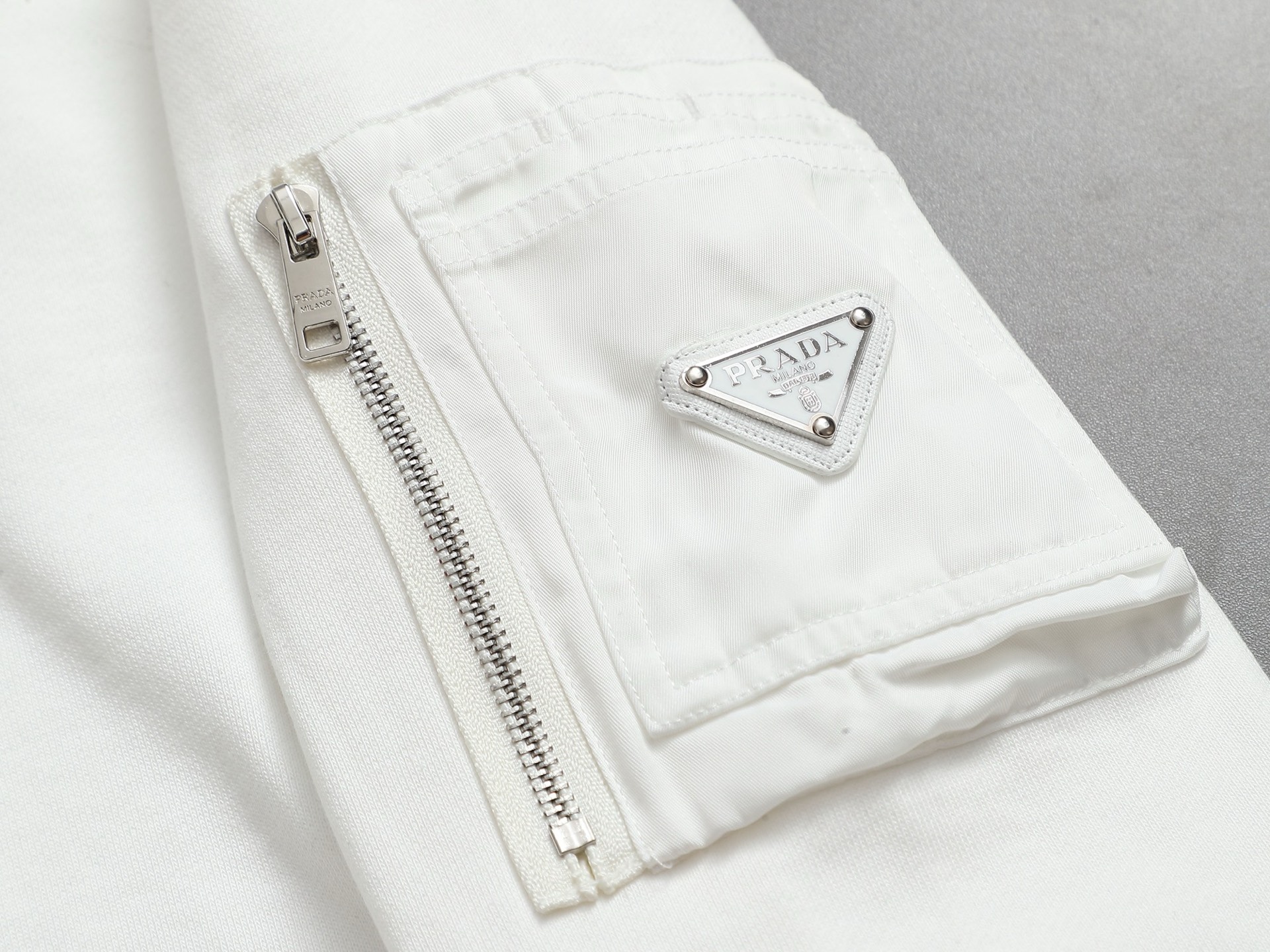 這款衣服是AAAAA 1:1 質量(非常棒). 使用了和原版一模一樣的材料. 商標部分也保持了和普拉達/Prada一樣. 圖片拍攝是實物衣服拍攝, 您所收到的實物保證和我們圖片一模一樣.