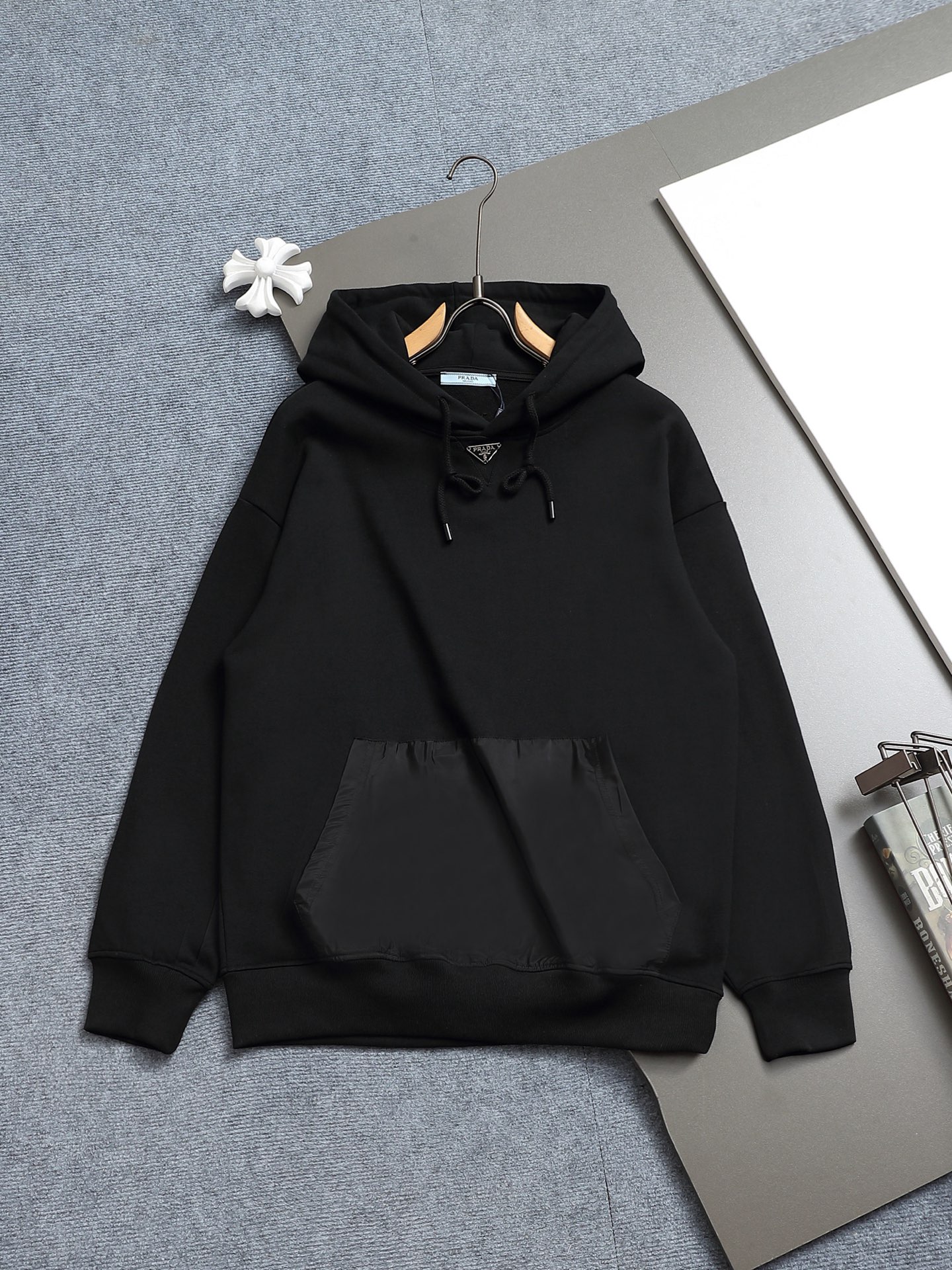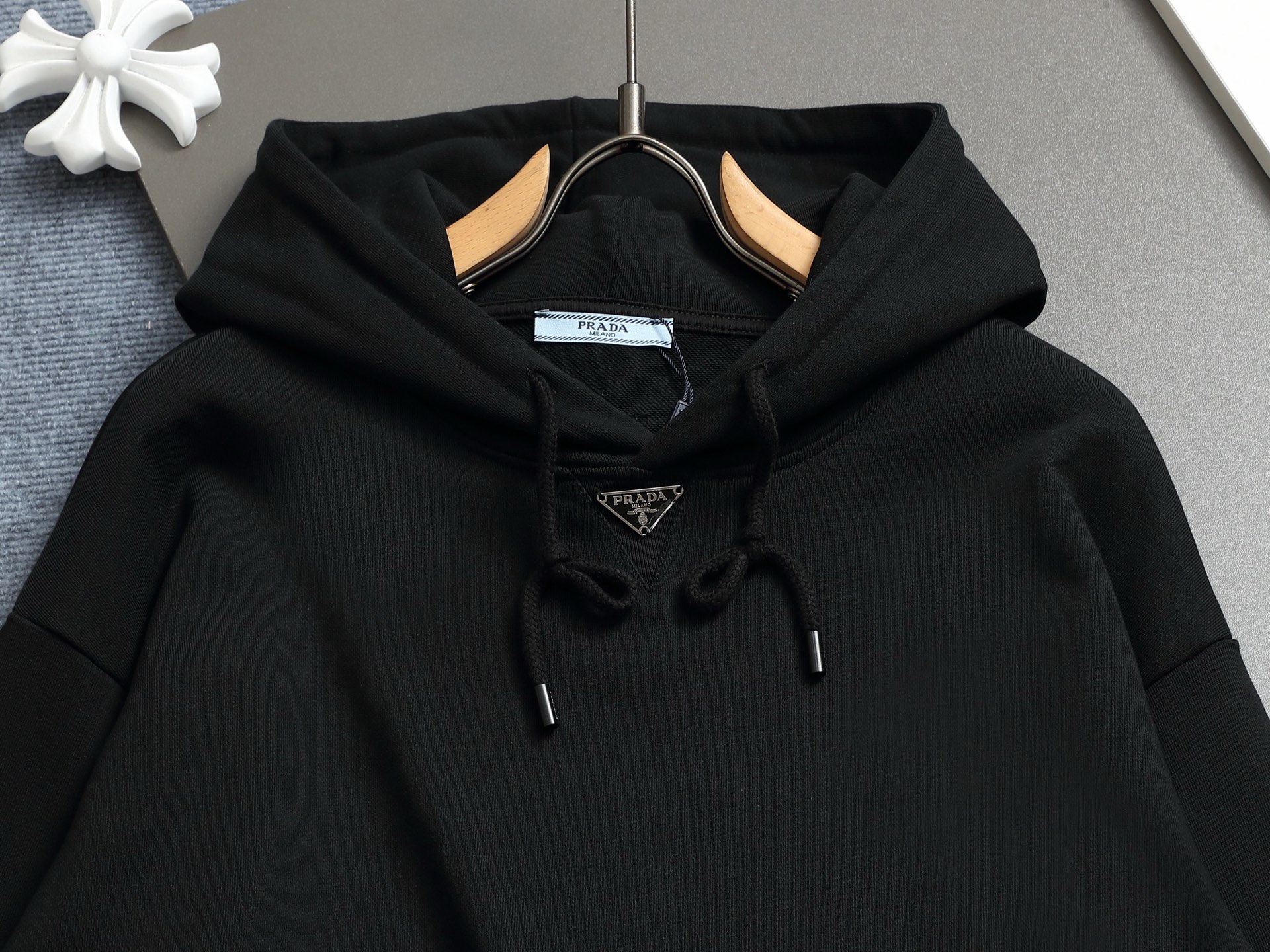 這款衣服是AAAAA 1:1 質量(非常棒). 使用了和原版一模一樣的材料. 商標部分也保持了和普拉達/Prada一樣. 圖片拍攝是實物衣服拍攝, 您所收到的實物保證和我們圖片一模一樣.
