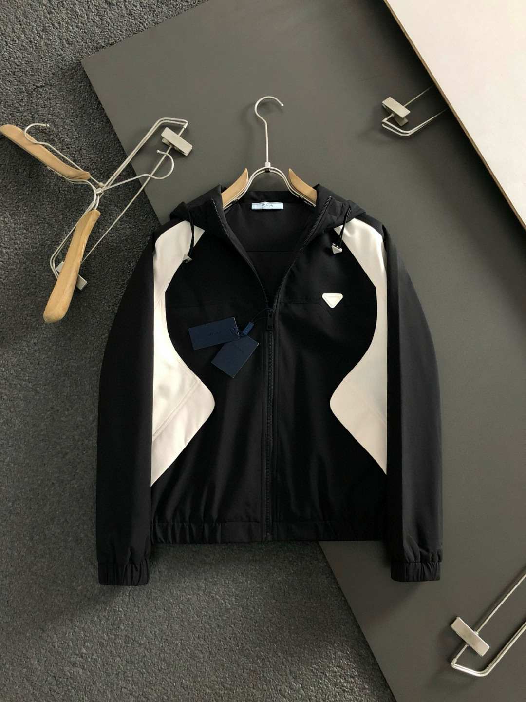 這款衣服是AAAAA 1:1 質量(非常棒). 使用了和原版一模一樣的材料. 商標部分也保持了和普拉達/Prada一樣. 圖片拍攝是實物衣服拍攝, 您所收到的實物保證和我們圖片一模一樣.