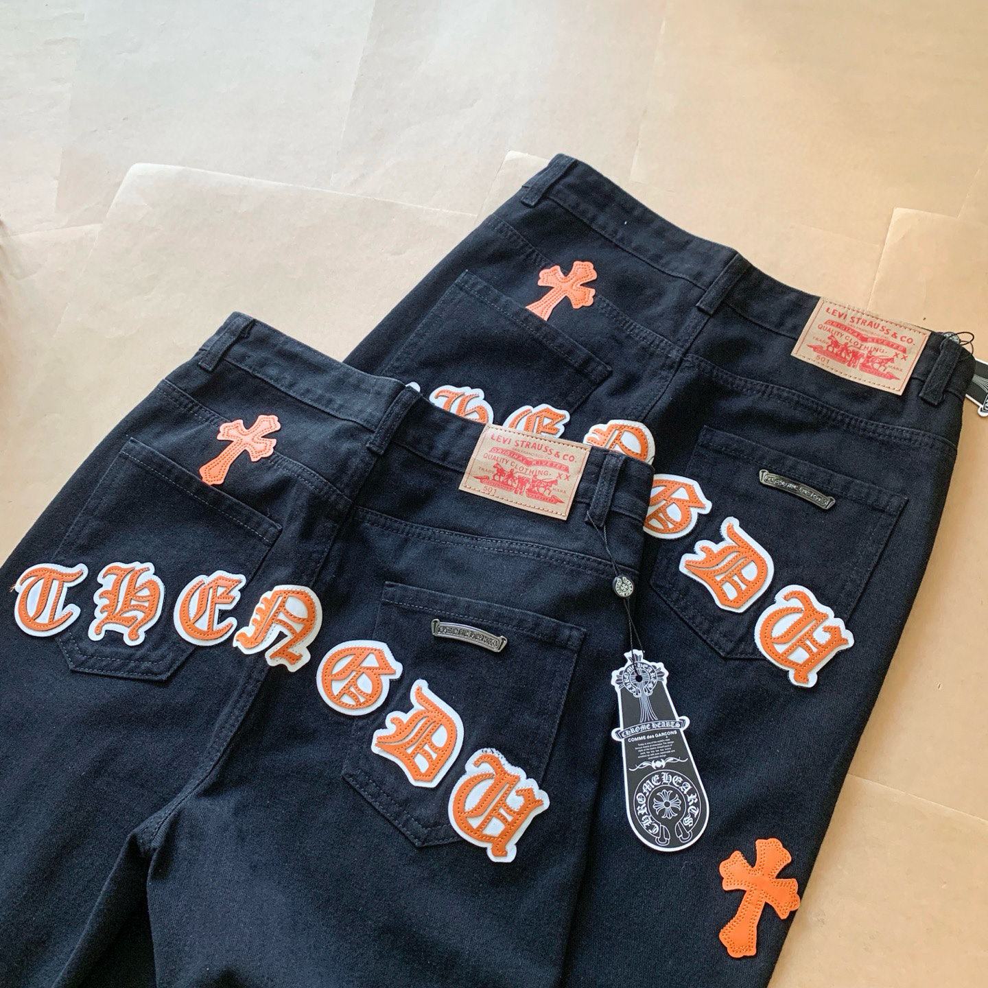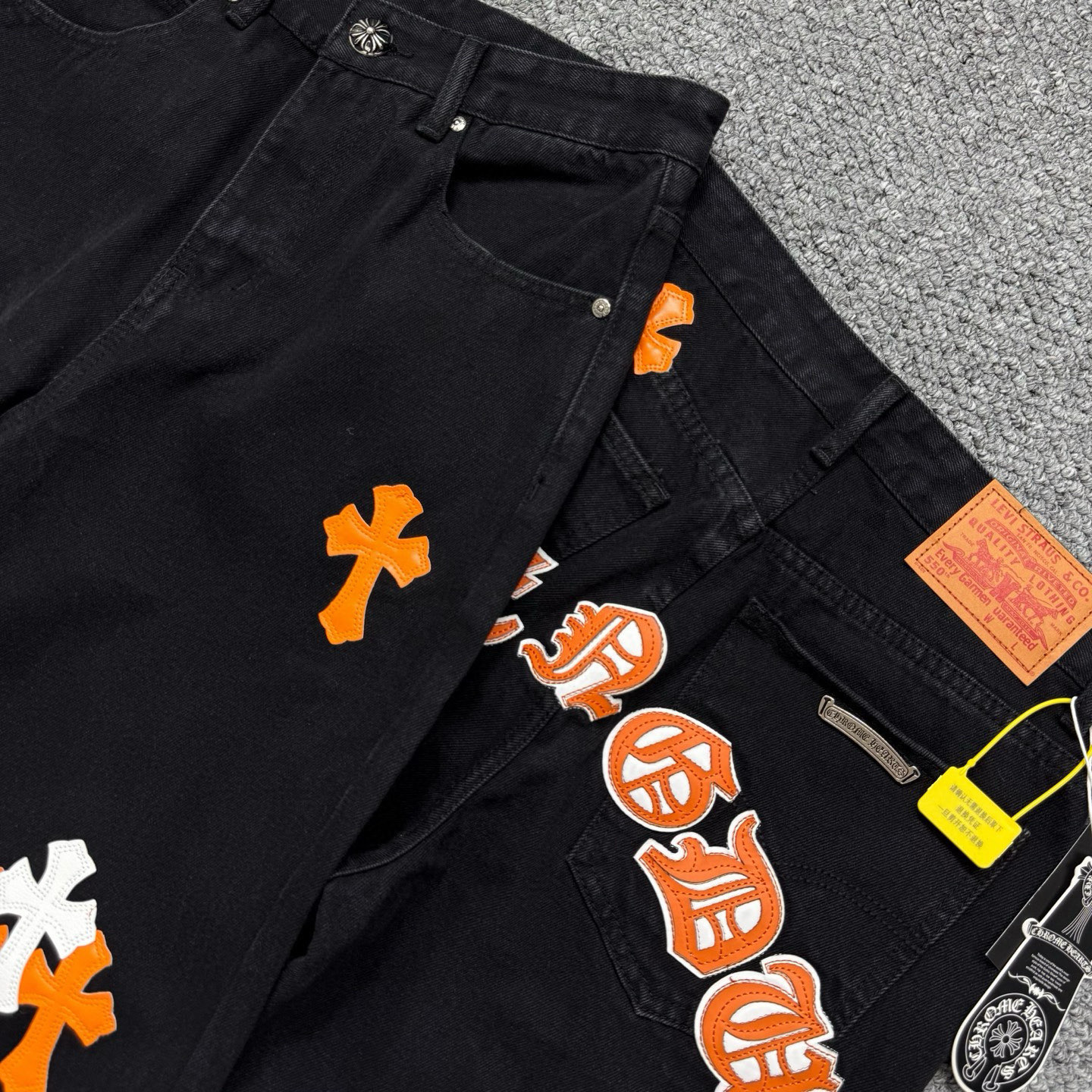 這款衣服是AAAAA 1:1 質量(非常棒). 使用了和原版一模一樣的材料. 商標部分也保持了和鉻心/Chrome Hearts一樣. 圖片拍攝是實物衣服拍攝, 您所收到的實物保證和我們圖片一模一樣.