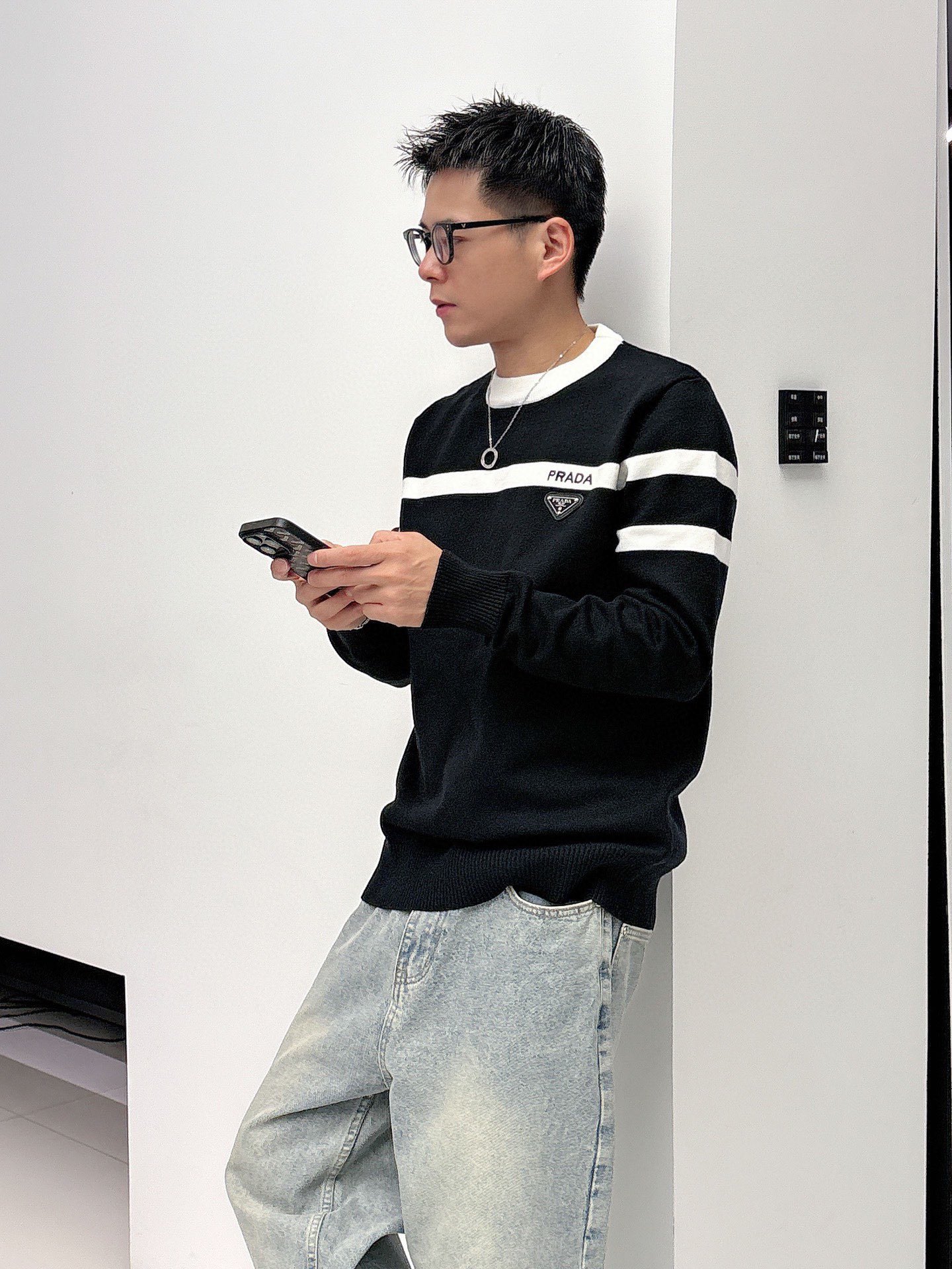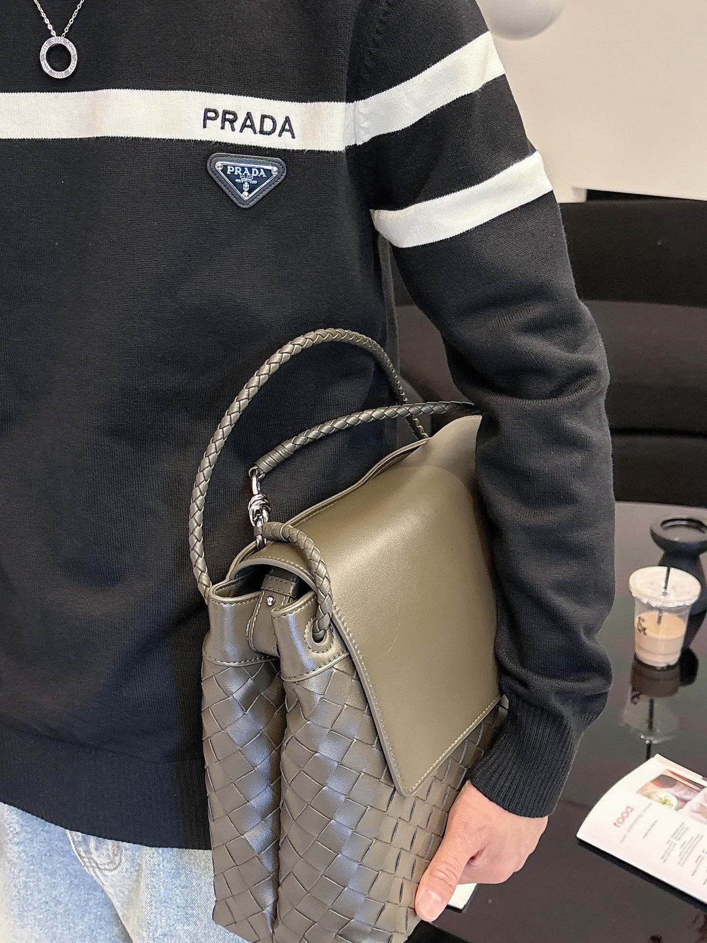 這款衣服是AAAAA 1:1 質量(非常棒). 使用了和原版一模一樣的材料. 商標部分也保持了和普拉達/Prada一樣. 圖片拍攝是實物衣服拍攝, 您所收到的實物保證和我們圖片一模一樣.