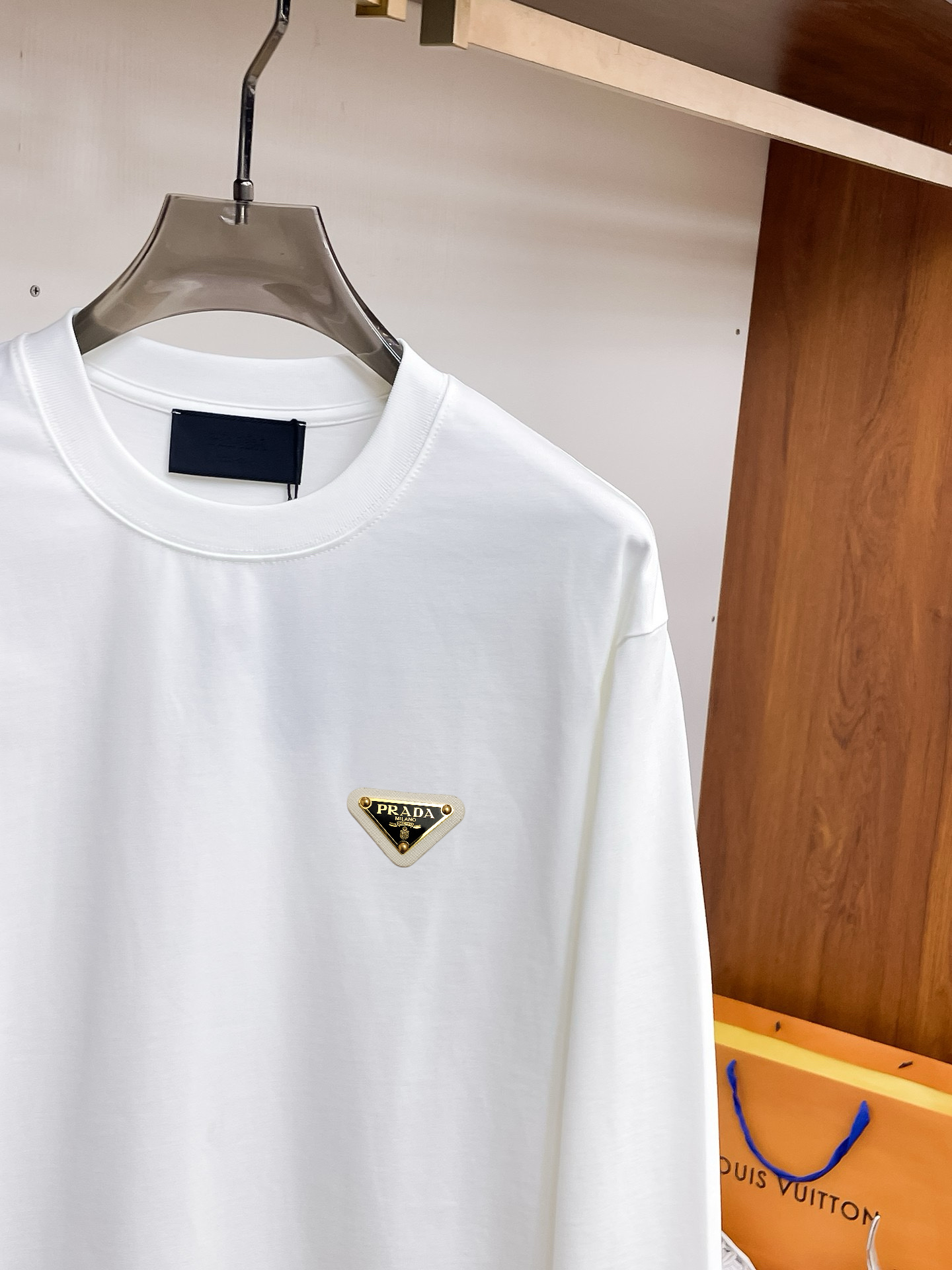 這款衣服是AAAAA 1:1 質量(非常棒). 使用了和原版一模一樣的材料. 商標部分也保持了和普拉達/Prada一樣. 圖片拍攝是實物衣服拍攝, 您所收到的實物保證和我們圖片一模一樣.