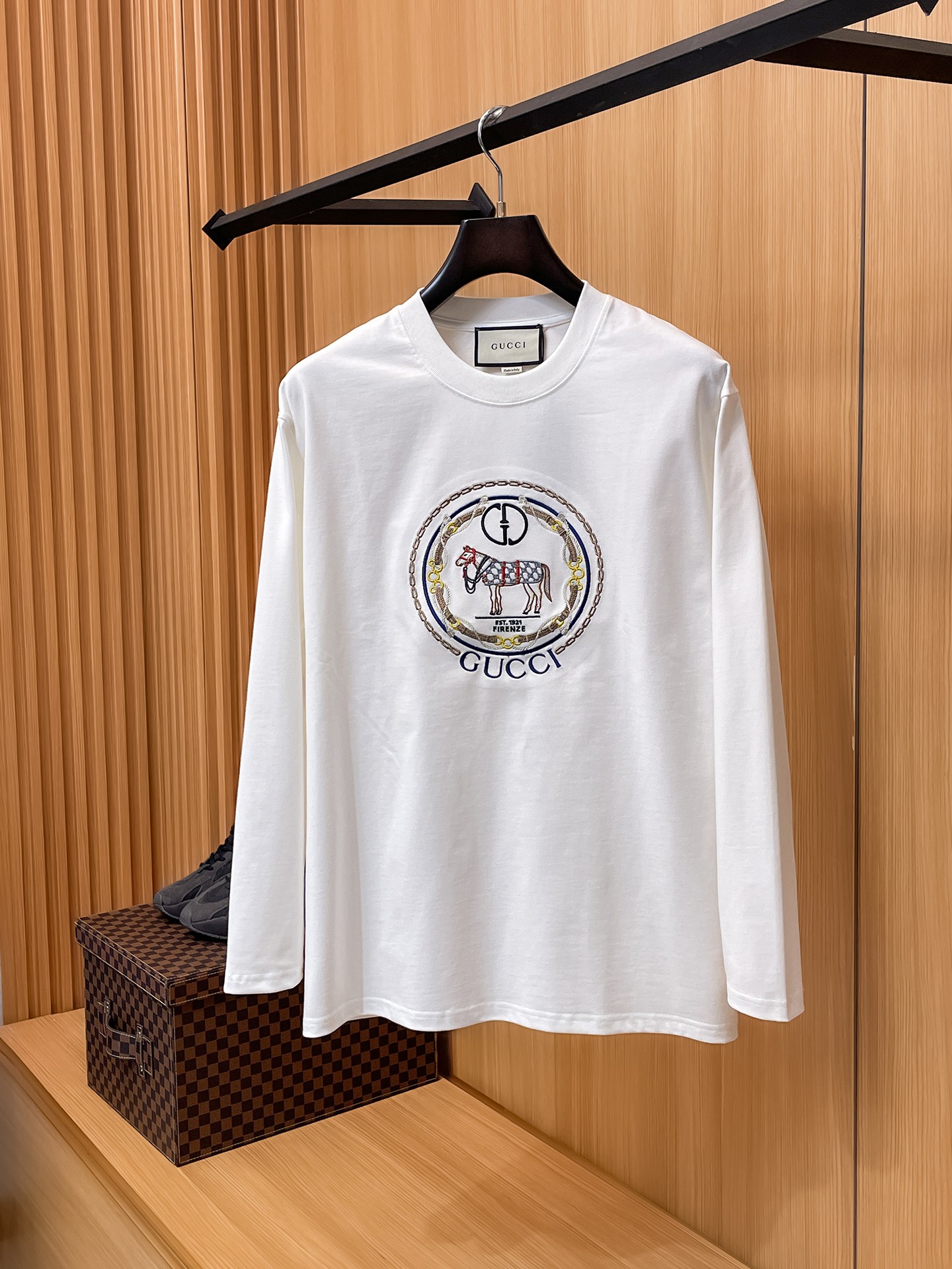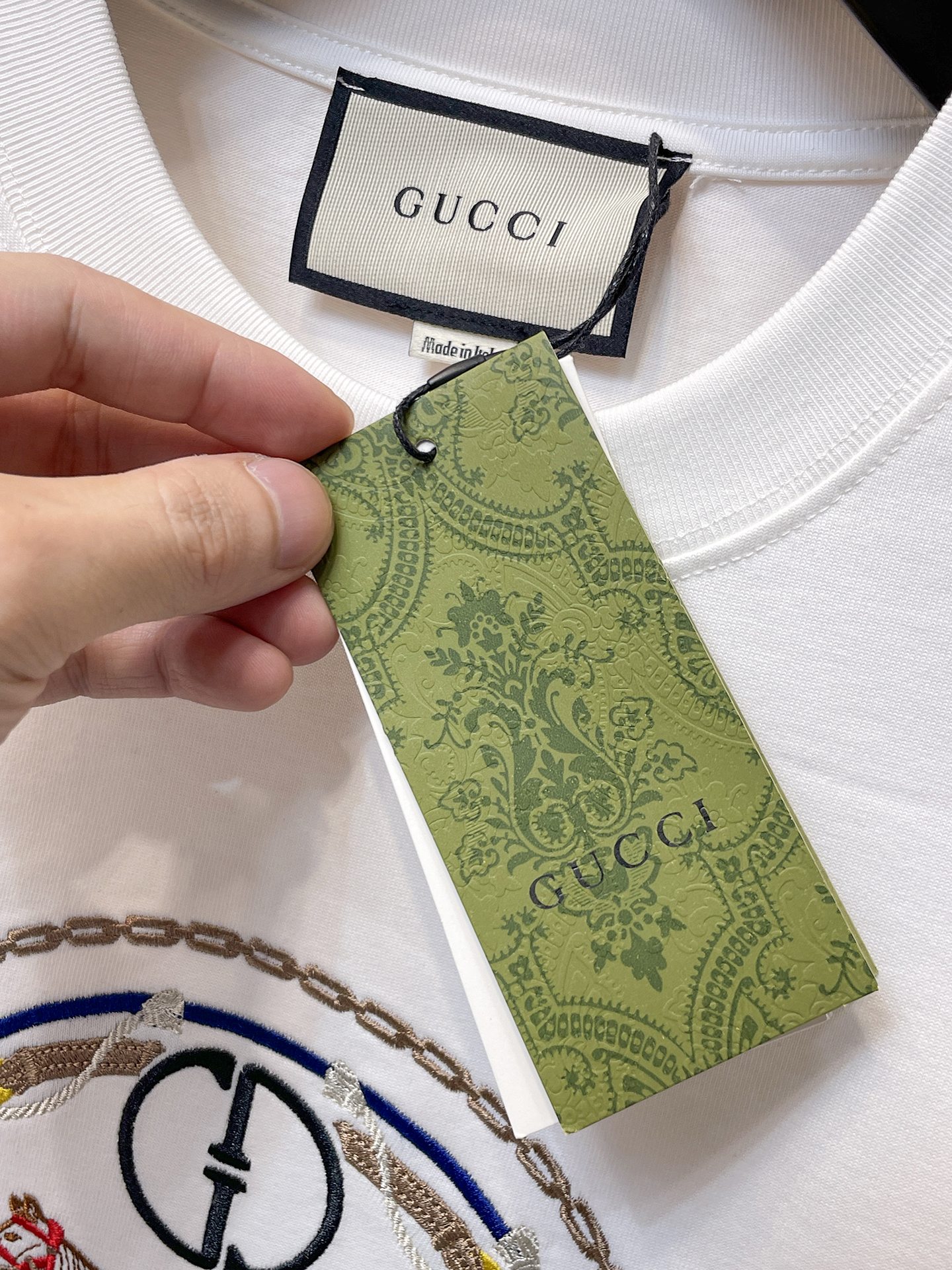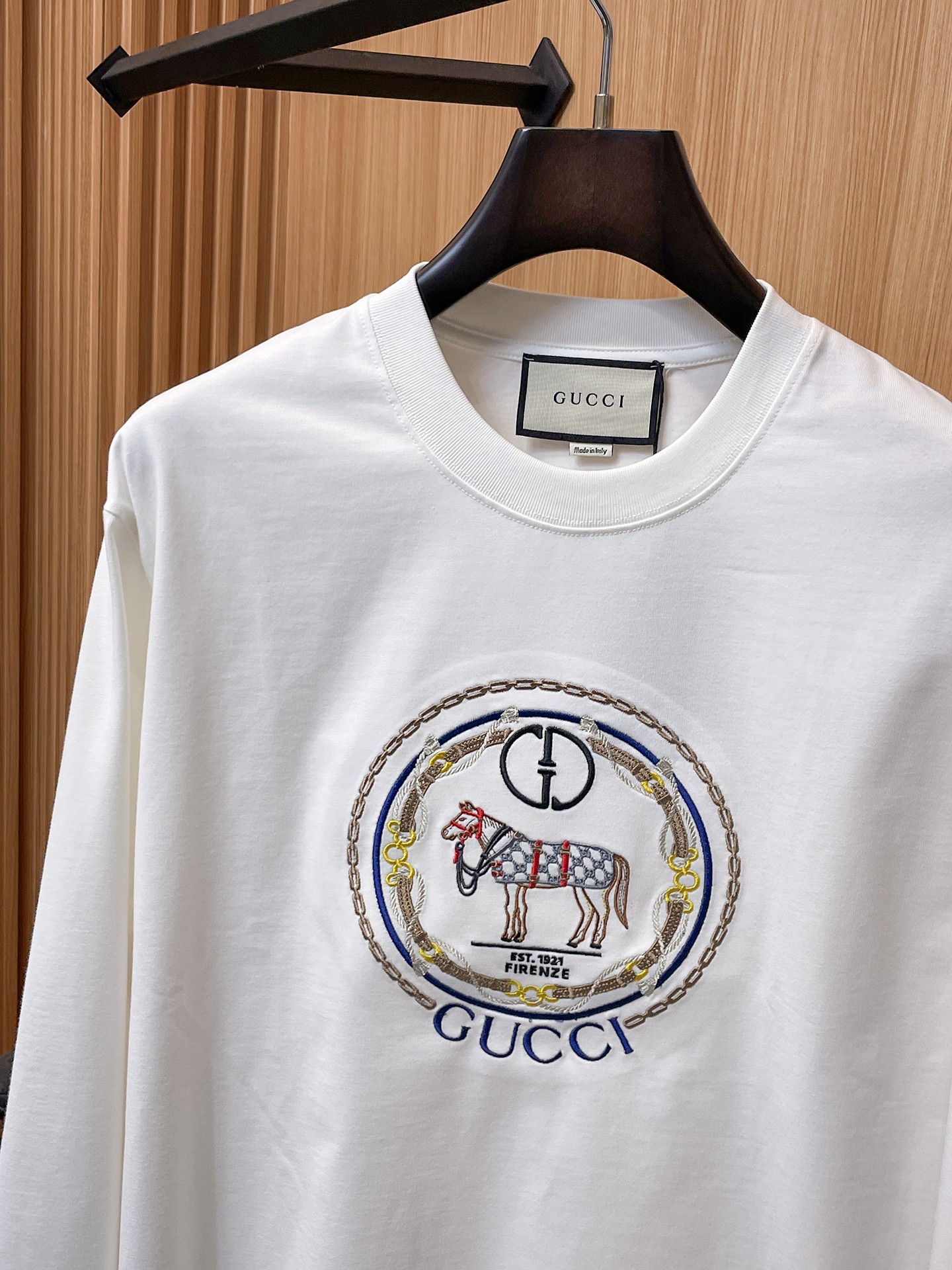 這款衣服是AAAAA 1:1 質量(非常棒). 使用了和原版一模一樣的材料. 商標部分也保持了和古奇/Gucci一樣. 圖片拍攝是實物衣服拍攝, 您所收到的實物保證和我們圖片一模一樣.
