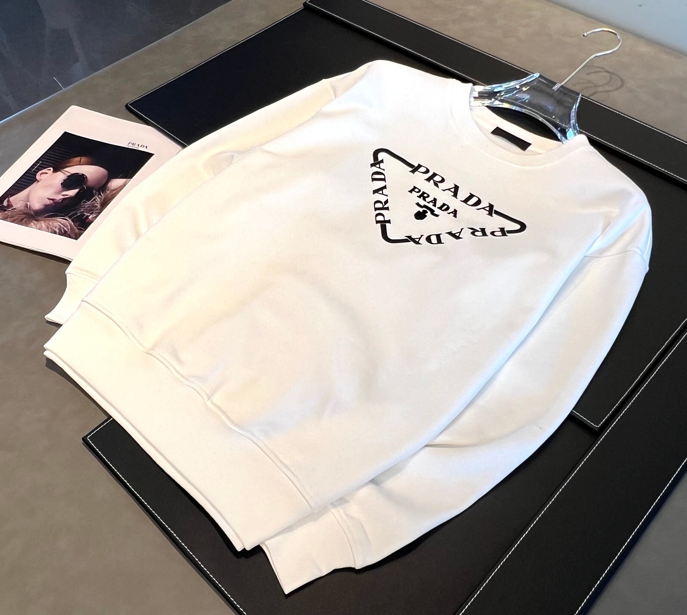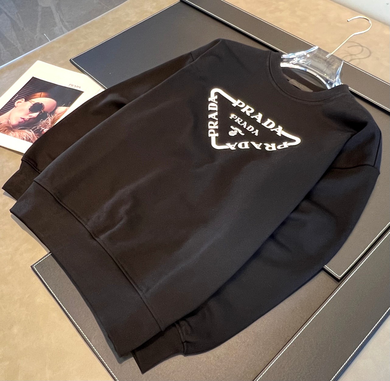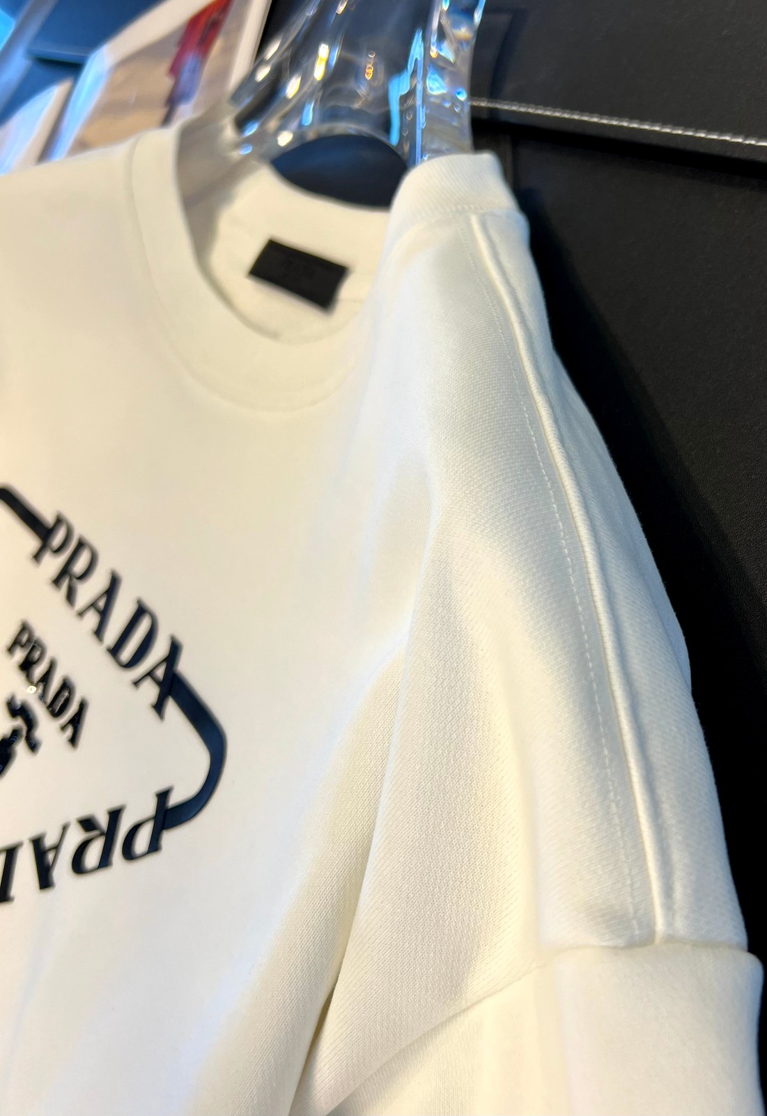 這款衣服是AAAAA 1:1 質量(非常棒). 使用了和原版一模一樣的材料. 商標部分也保持了和普拉達/Prada一樣. 圖片拍攝是實物衣服拍攝, 您所收到的實物保證和我們圖片一模一樣.