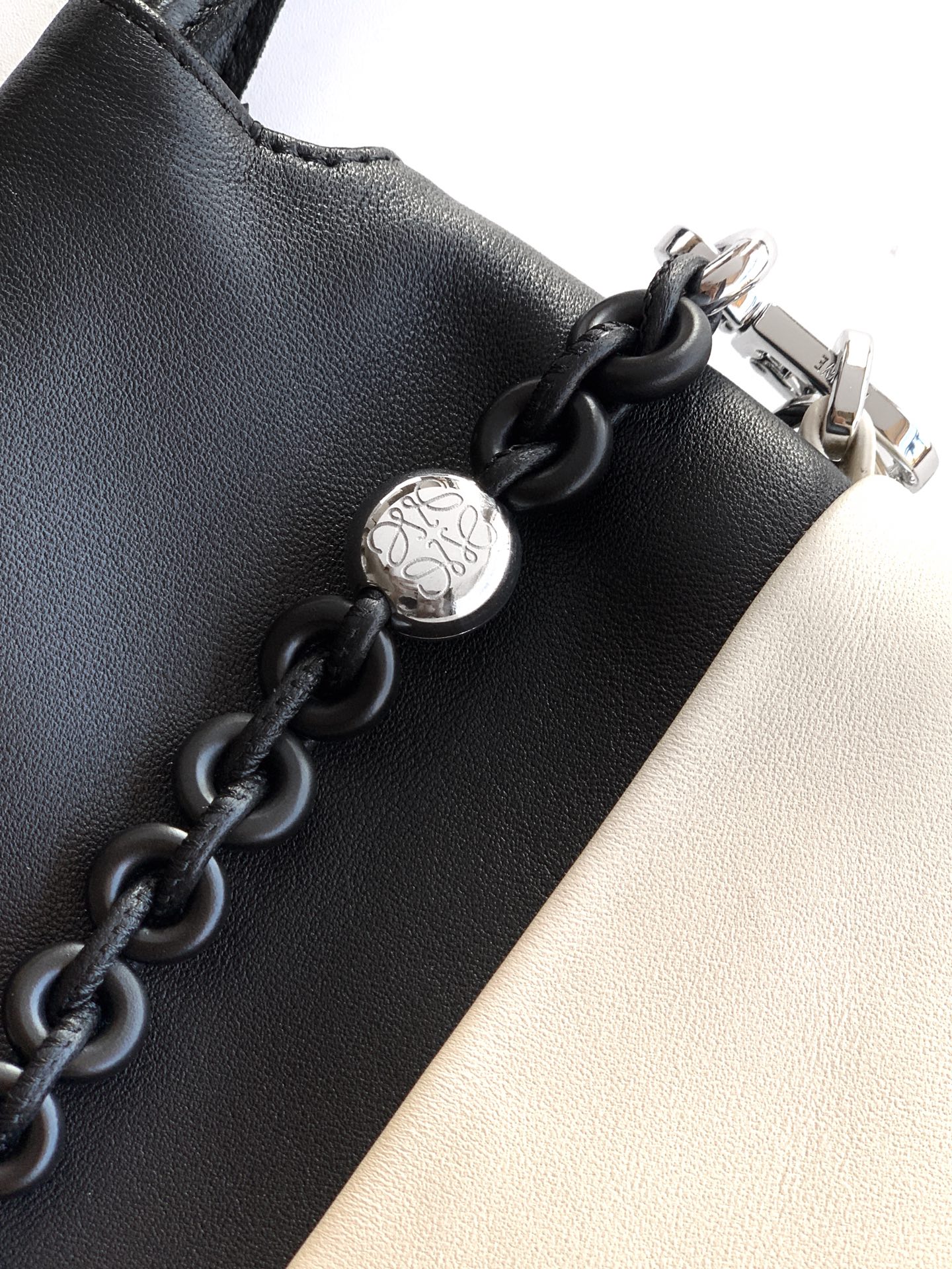 這款包包是AAAAA 1:1 質量(非常棒). 使用了和原版一模一樣的材料. 商標部分也保持了和Loewe一樣. 圖片拍攝是實物包包拍攝, 您所收到的實物保證和我們圖片一模一樣.