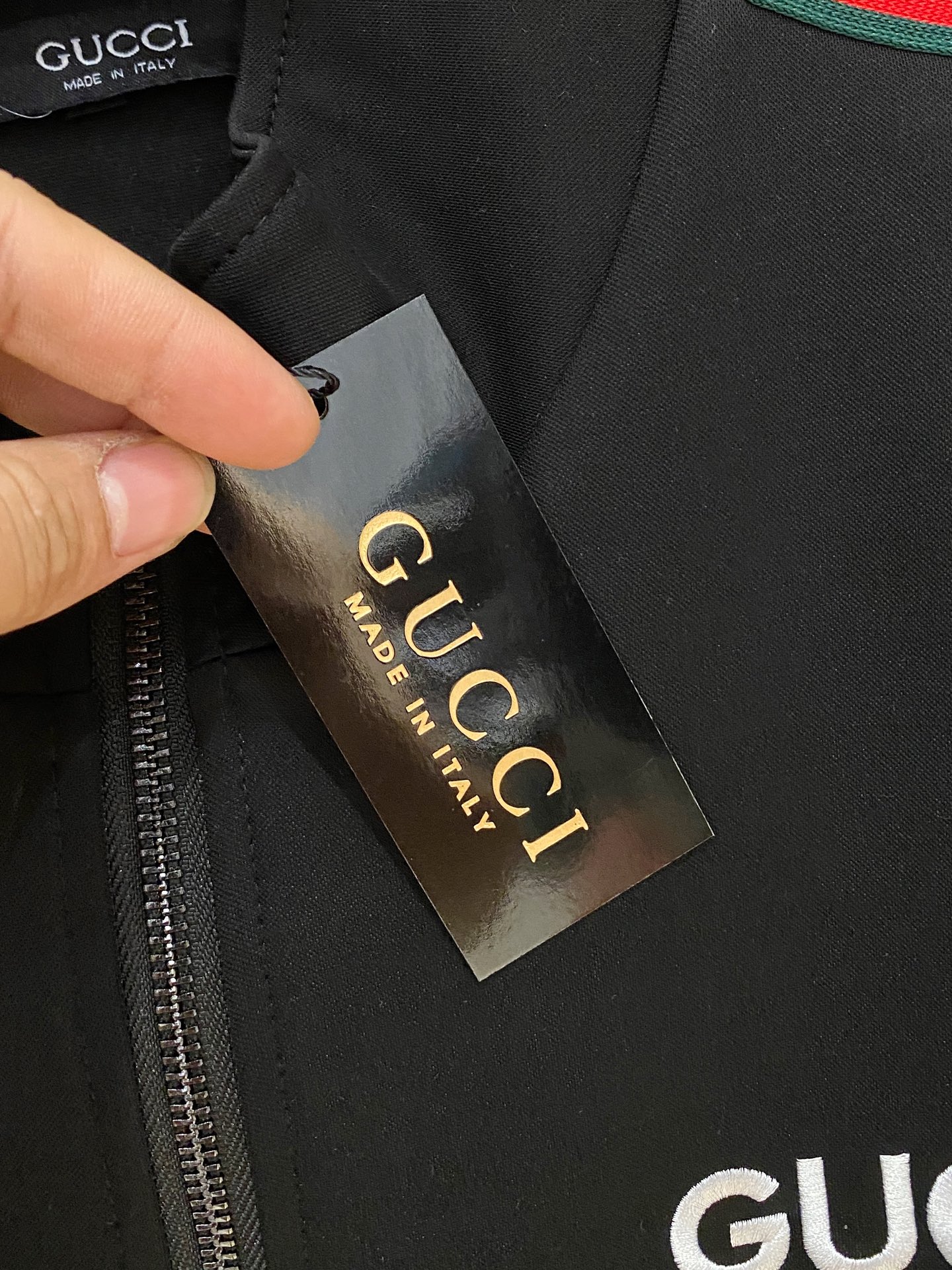 這款衣服是AAAAA 1:1 質量(非常棒). 使用了和原版一模一樣的材料. 商標部分也保持了和古奇/Gucci一樣. 圖片拍攝是實物衣服拍攝, 您所收到的實物保證和我們圖片一模一樣.