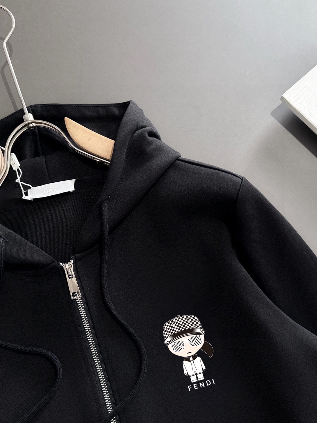 這款衣服是AAAAA 1:1 質量(非常棒). 使用了和原版一模一樣的材料. 商標部分也保持了和芬迪/Fendi一樣. 圖片拍攝是實物衣服拍攝, 您所收到的實物保證和我們圖片一模一樣.