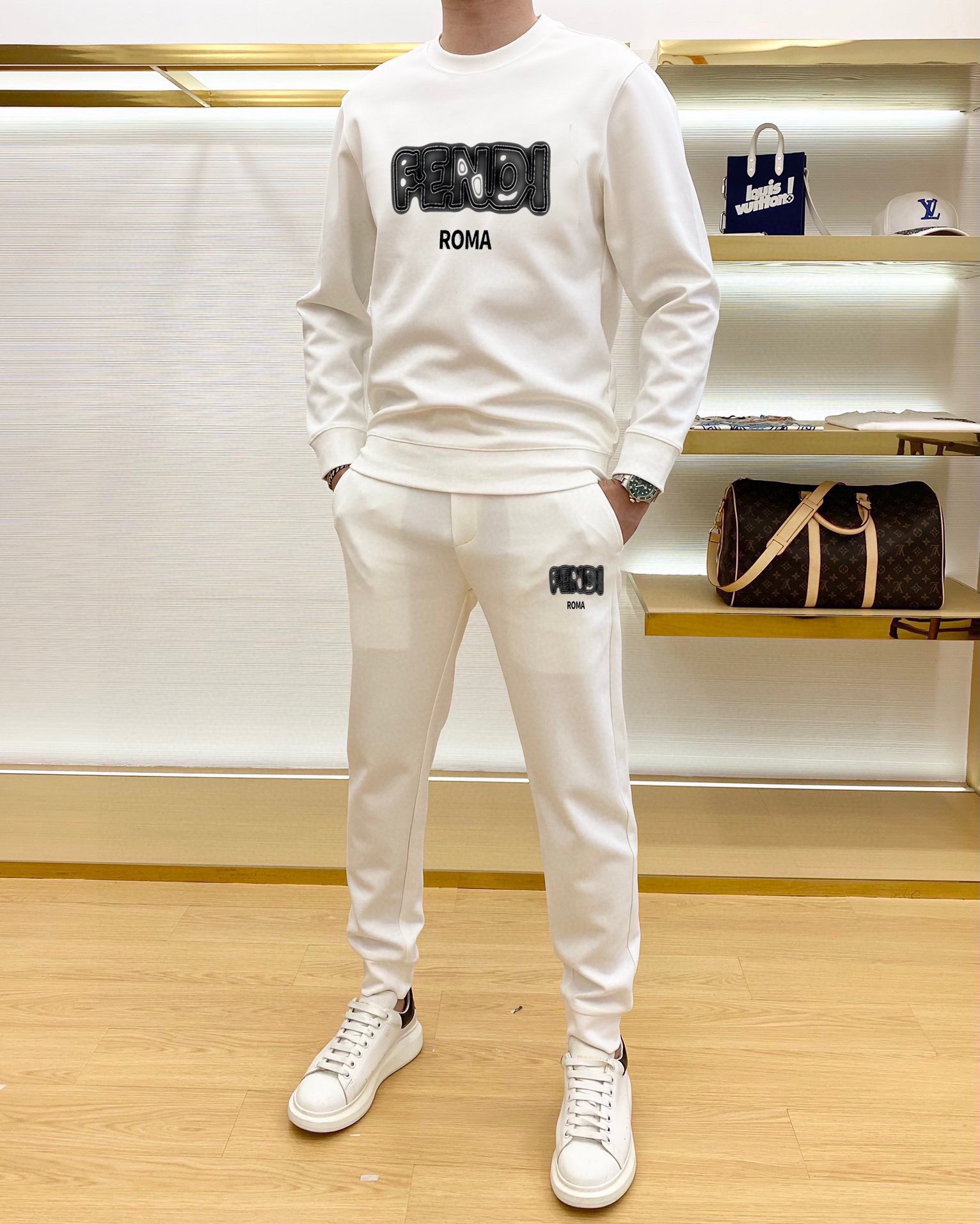 這款衣服是AAAAA 1:1 質量(非常棒). 使用了和原版一模一樣的材料. 商標部分也保持了和芬迪/Fendi一樣. 圖片拍攝是實物衣服拍攝, 您所收到的實物保證和我們圖片一模一樣.