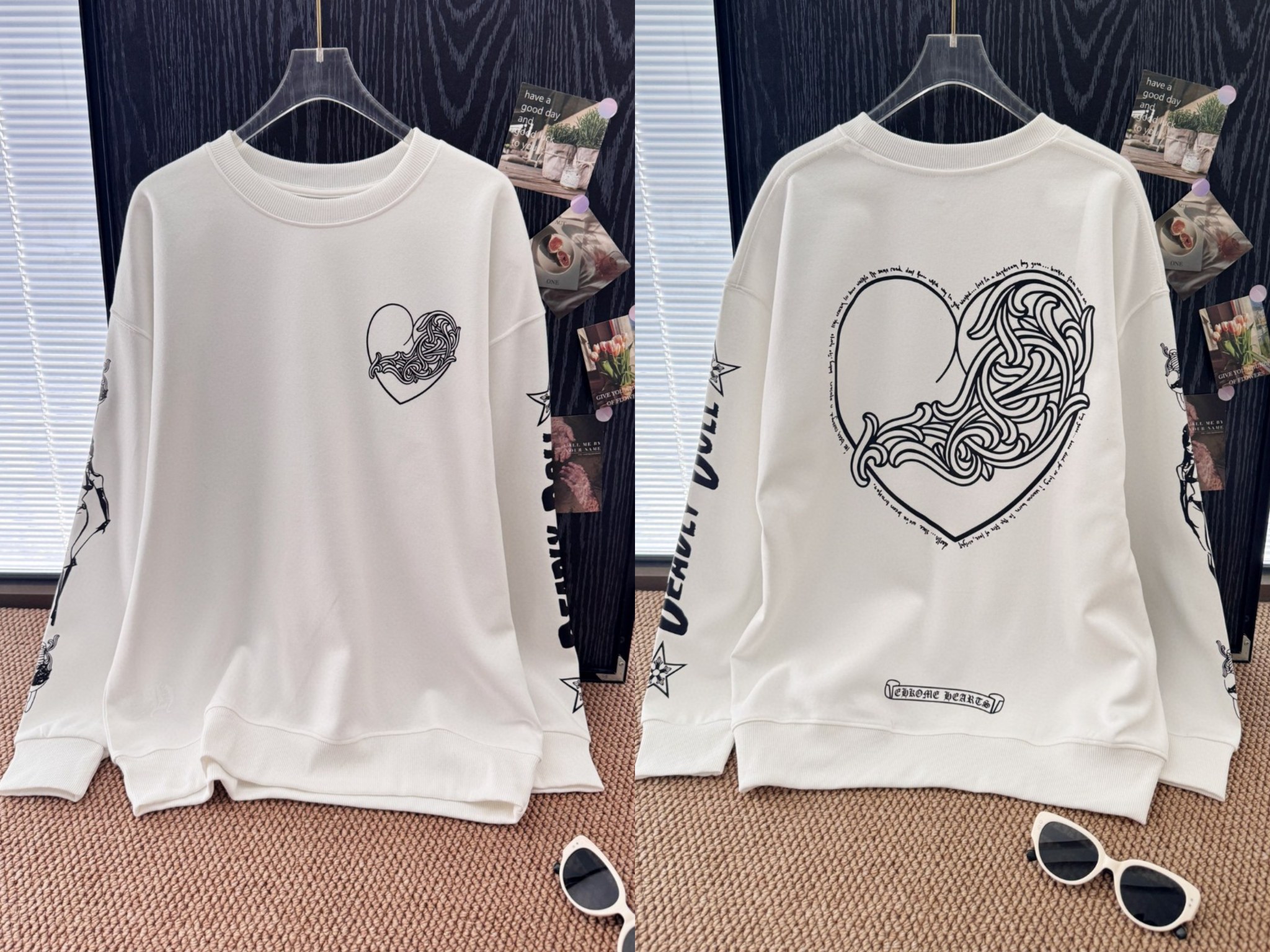 這款衣服是AAAAA 1:1 質量(非常棒). 使用了和原版一模一樣的材料. 商標部分也保持了和鉻心/Chrome Hearts一樣. 圖片拍攝是實物衣服拍攝, 您所收到的實物保證和我們圖片一模一樣.