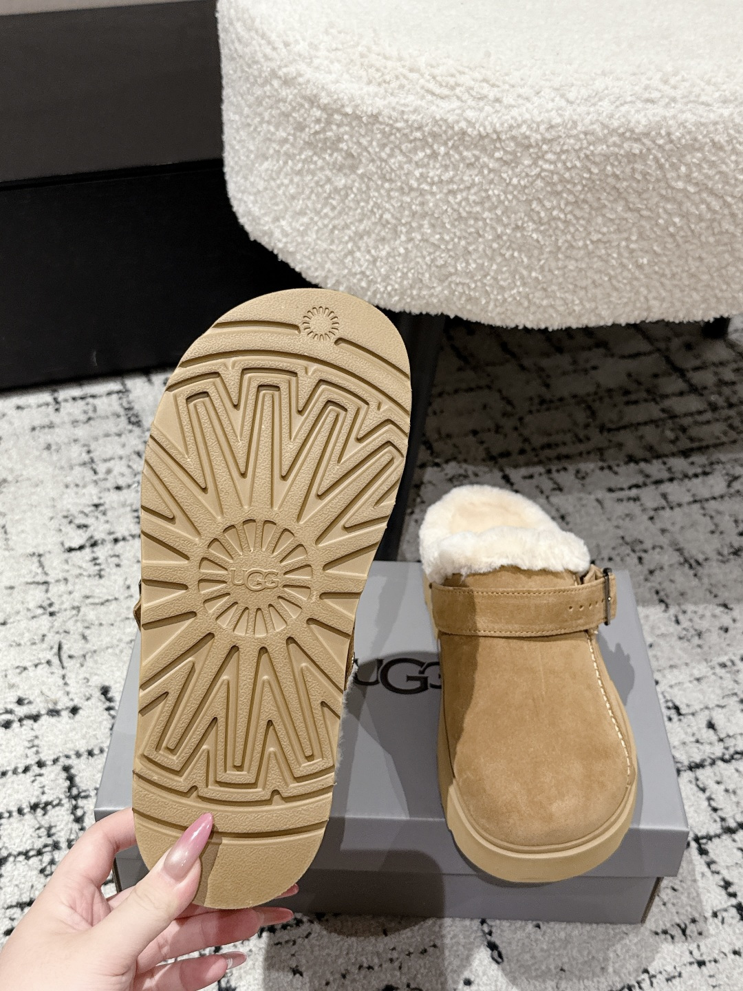 這款鞋子是AAAAA 1:1 質量(非常棒). 使用了和原版一模一樣的材料. 商標部分也保持了和UGG一樣. 圖片拍攝是實物鞋子拍攝, 您所收到的實物保證和我們圖片一模一樣.