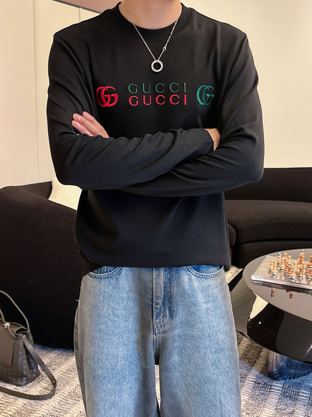 這款衣服是AAAAA 1:1 質量(非常棒). 使用了和原版一模一樣的材料. 商標部分也保持了和古奇/Gucci一樣. 圖片拍攝是實物衣服拍攝, 您所收到的實物保證和我們圖片一模一樣.