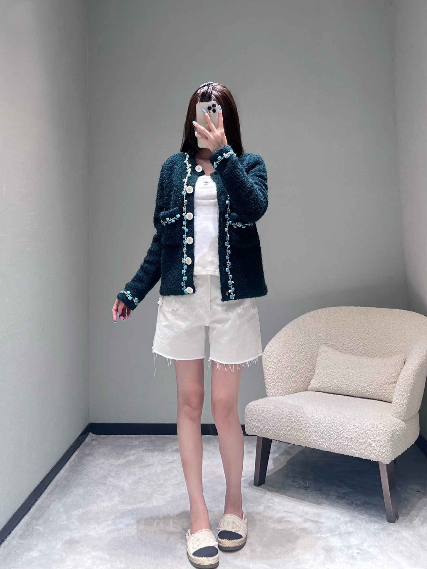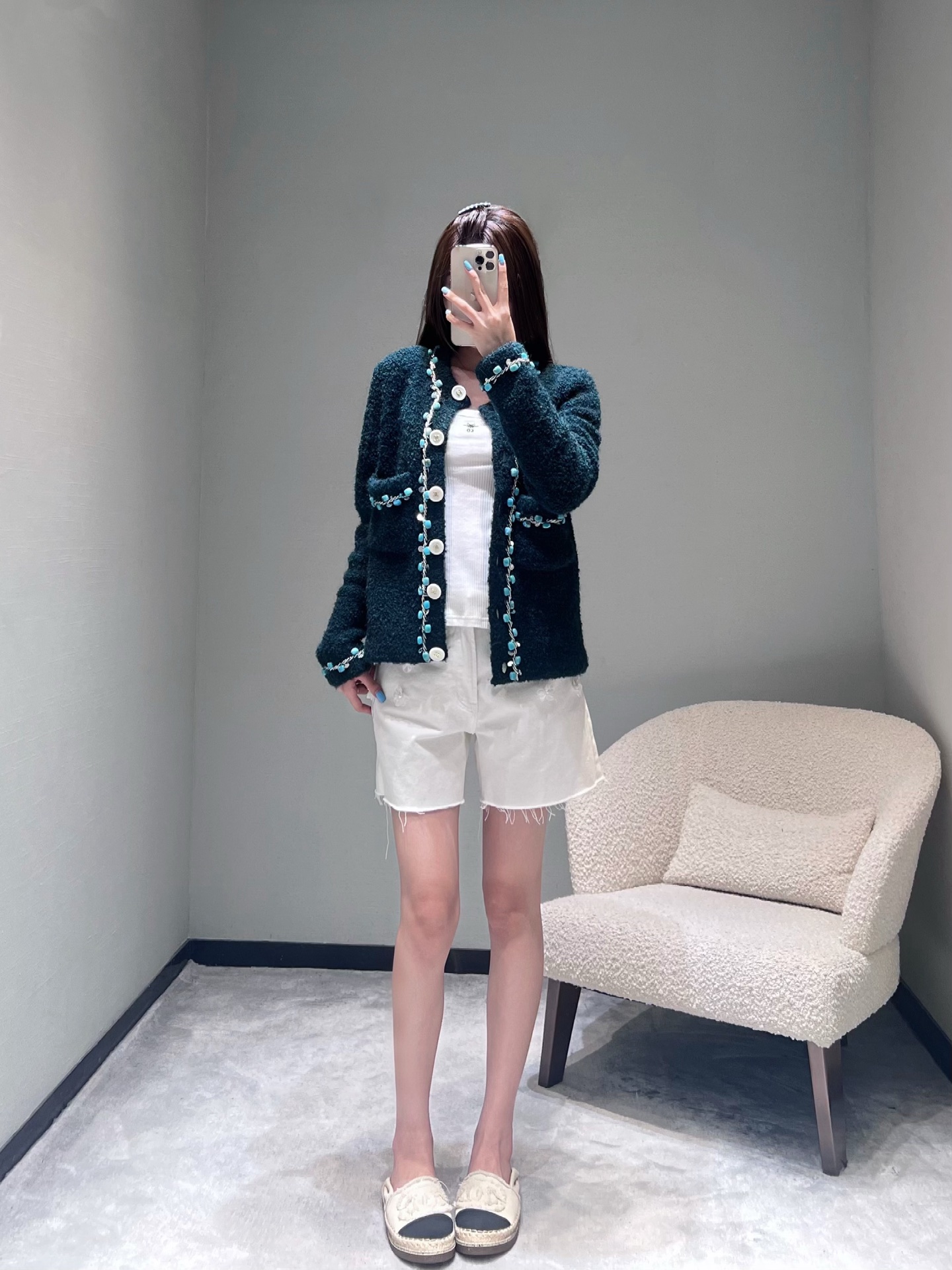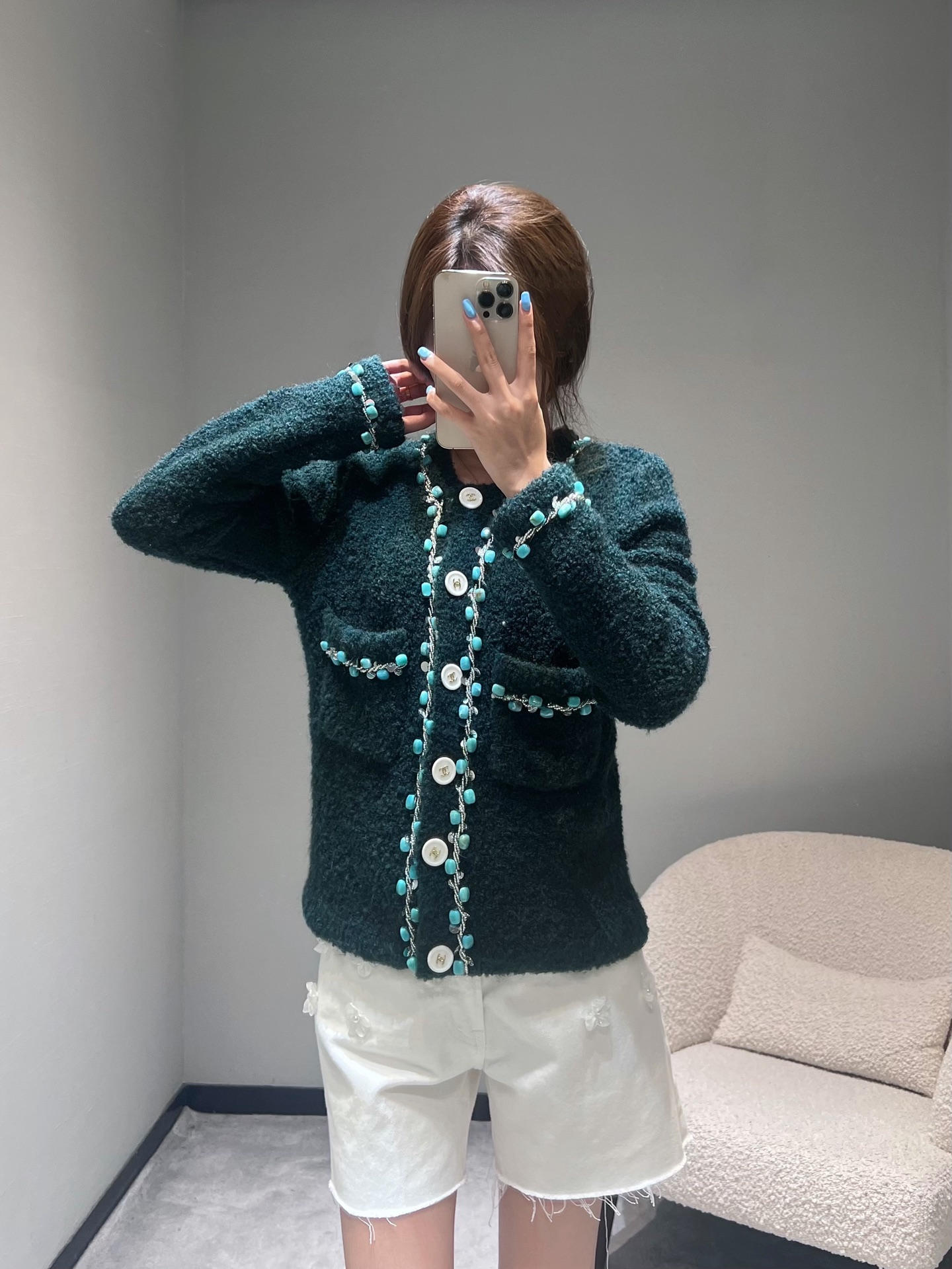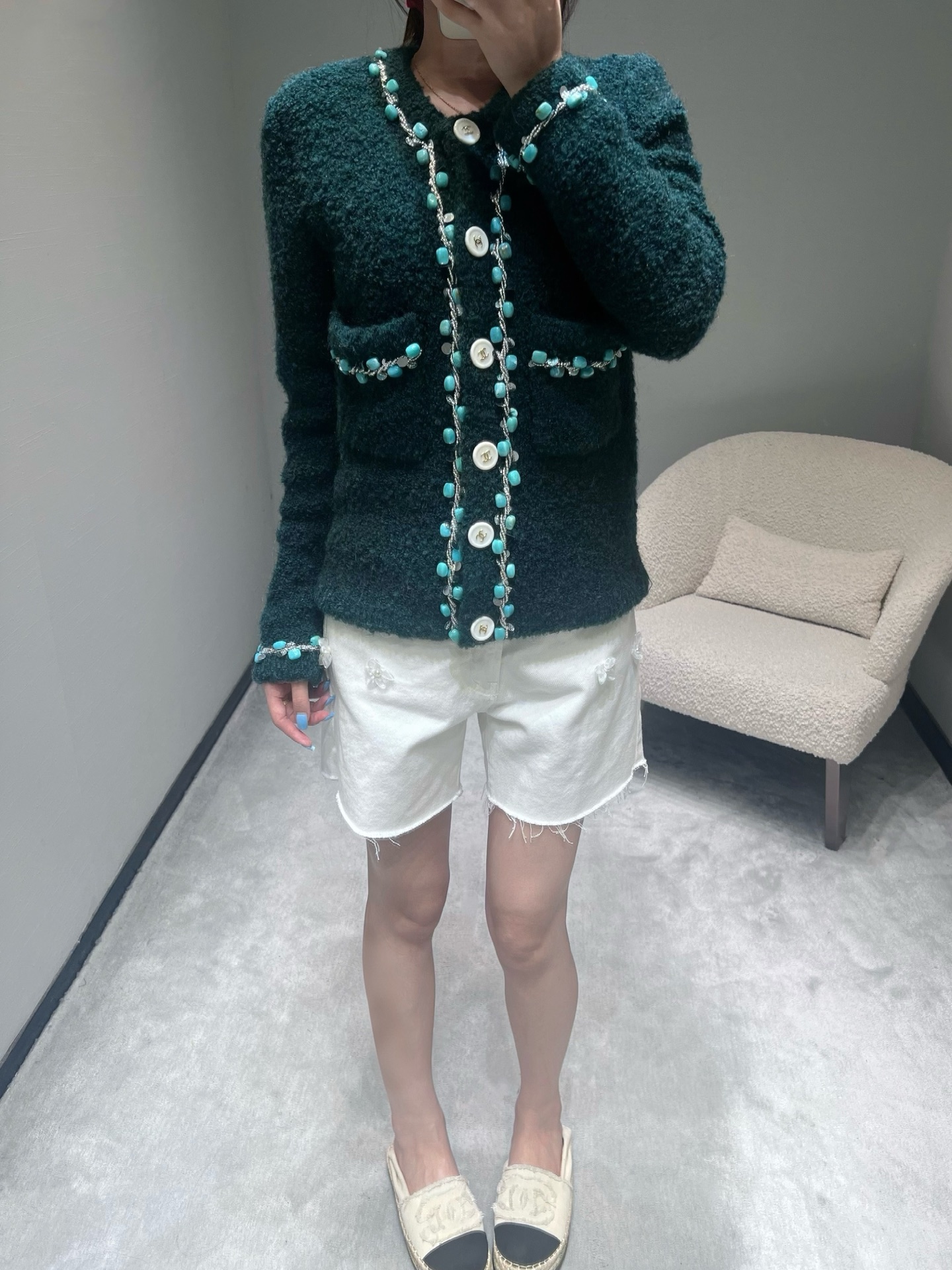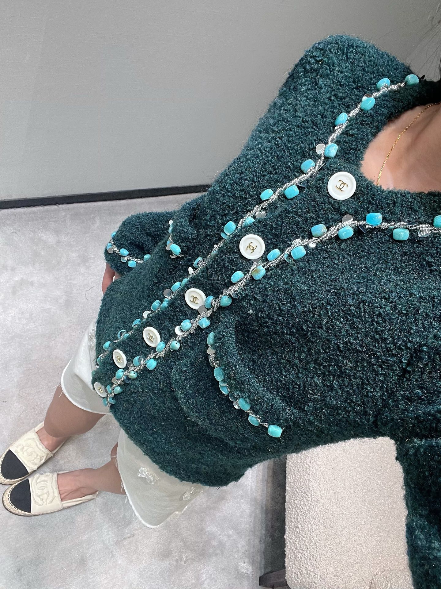 這款衣服是AAAAA 1:1 質量(非常棒). 使用了和原版一模一樣的材料. 商標部分也保持了和香奈兒/Chanel一樣. 圖片拍攝是實物衣服拍攝, 您所收到的實物保證和我們圖片一模一樣.