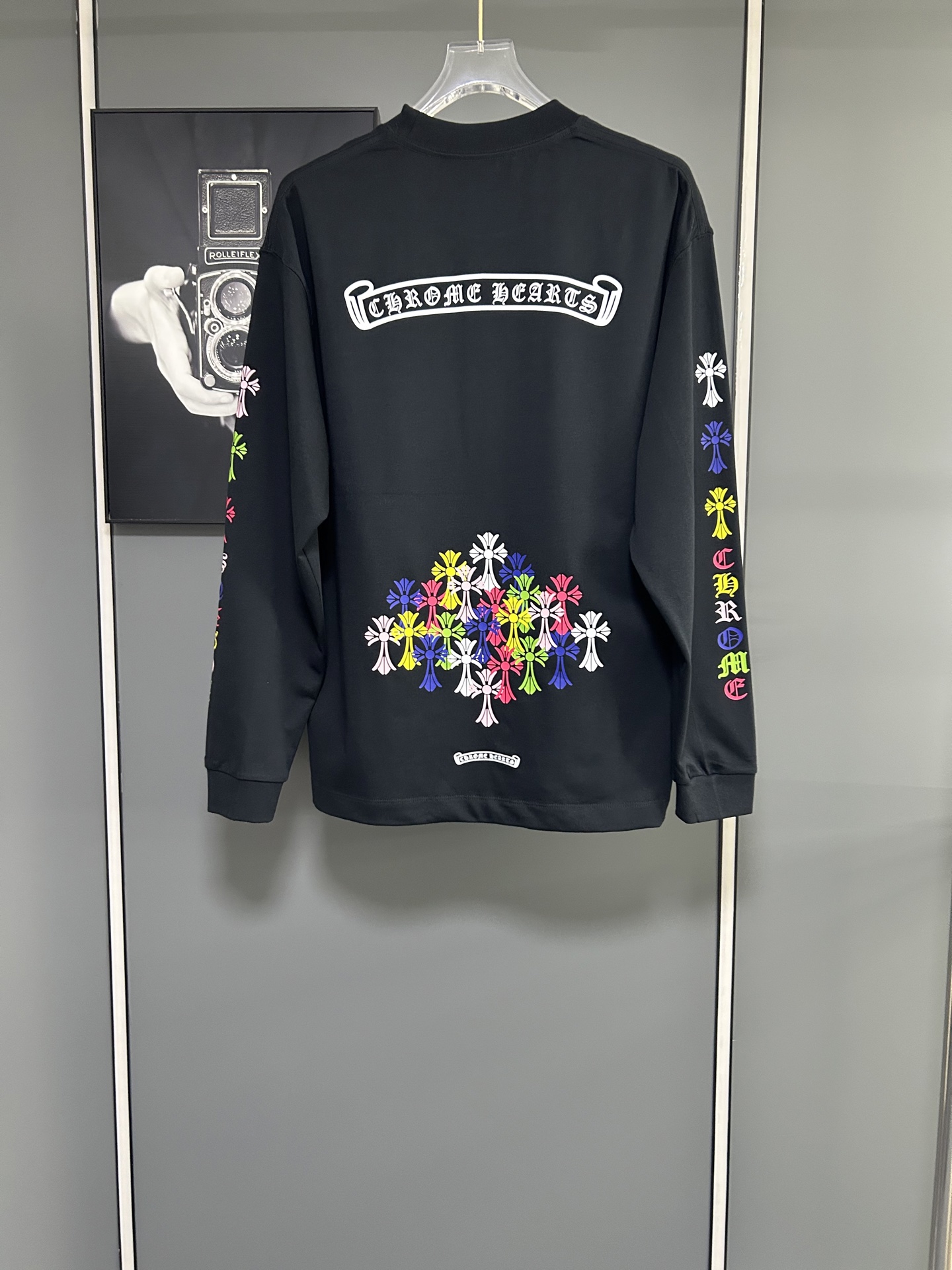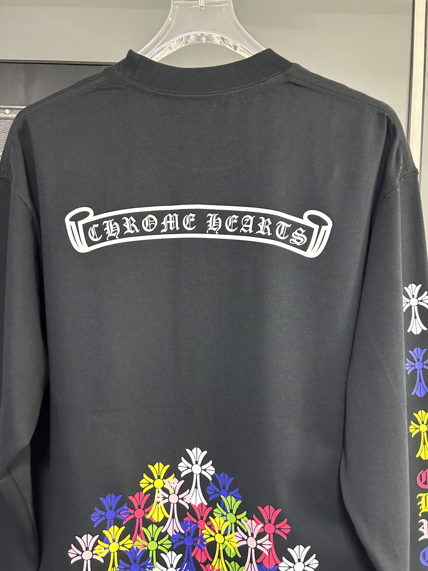 這款衣服是AAAAA 1:1 質量(非常棒). 使用了和原版一模一樣的材料. 商標部分也保持了和鉻心/Chrome Hearts一樣. 圖片拍攝是實物衣服拍攝, 您所收到的實物保證和我們圖片一模一樣.