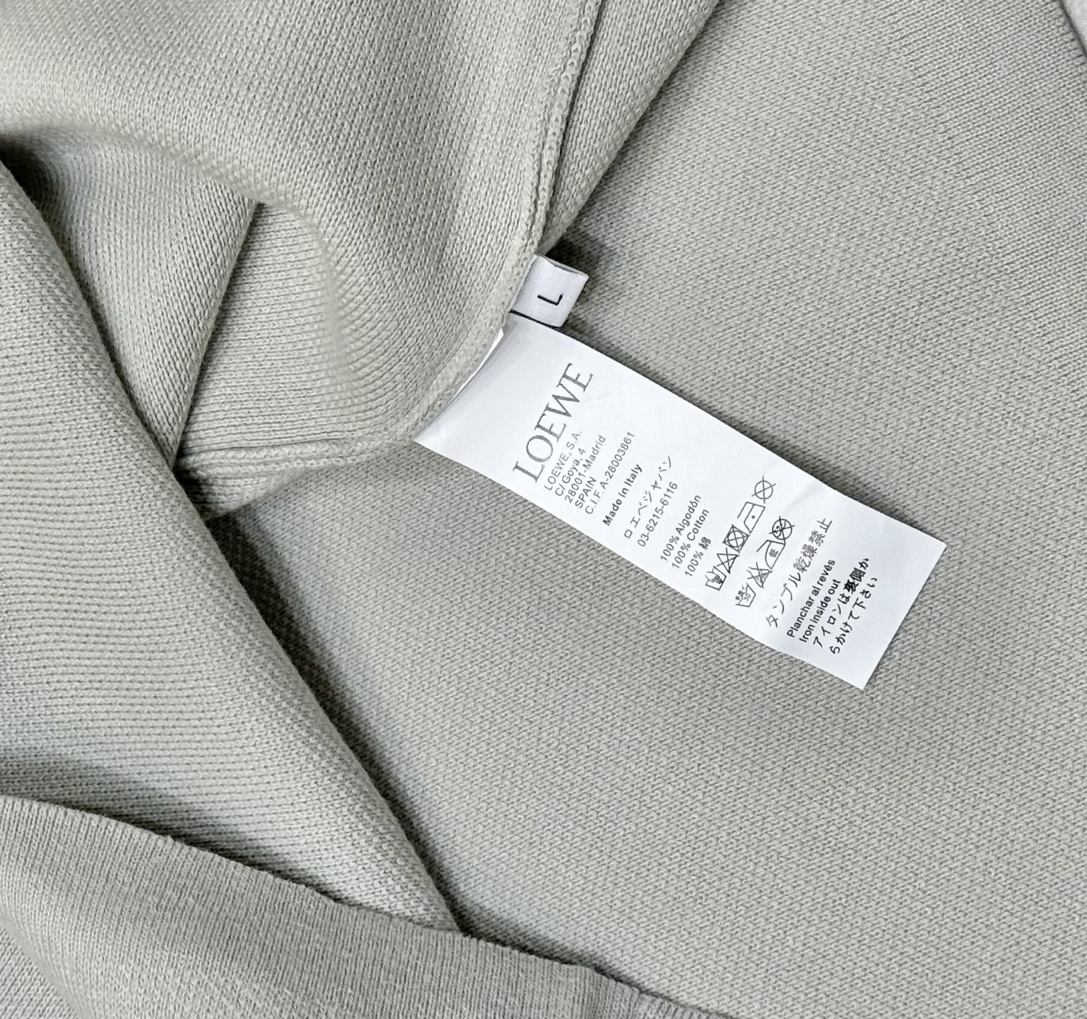 這款衣服是AAAAA 1:1 質量(非常棒). 使用了和原版一模一樣的材料. 商標部分也保持了和Loewe一樣. 圖片拍攝是實物衣服拍攝, 您所收到的實物保證和我們圖片一模一樣.