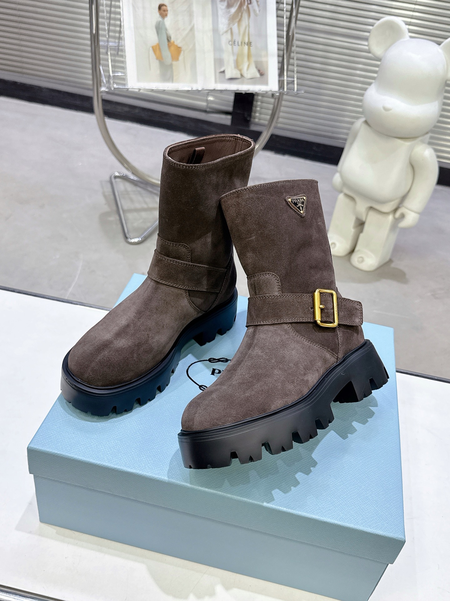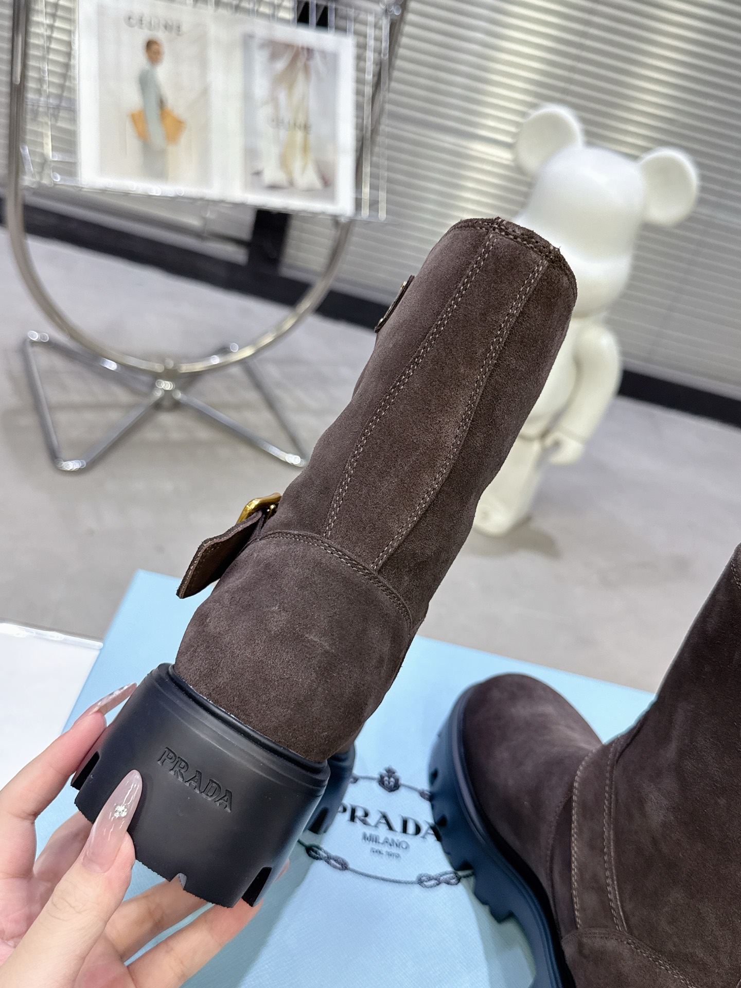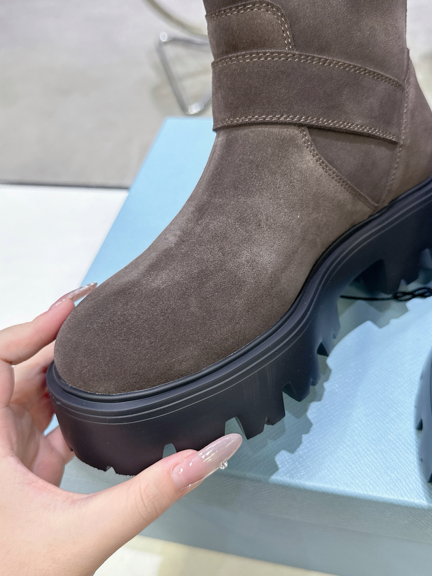 這款鞋子是AAAAA 1:1 質量(非常棒). 使用了和原版一模一樣的材料. 商標部分也保持了和普拉達/Prada一樣. 圖片拍攝是實物鞋子拍攝, 您所收到的實物保證和我們圖片一模一樣.