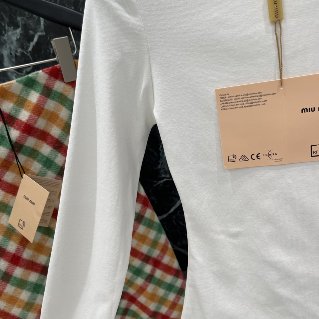 這款衣服是AAAAA 1:1 質量(非常棒). 使用了和原版一模一樣的材料. 商標部分也保持了和繆繆/Miu Miu一樣. 圖片拍攝是實物衣服拍攝, 您所收到的實物保證和我們圖片一模一樣.