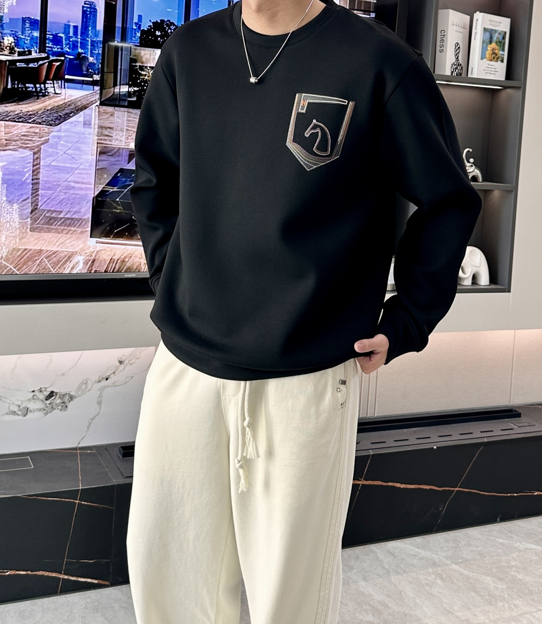 這款衣服是AAAAA 1:1 質量(非常棒). 使用了和原版一模一樣的材料. 商標部分也保持了和愛馬仕/Hermes一樣. 圖片拍攝是實物衣服拍攝, 您所收到的實物保證和我們圖片一模一樣.