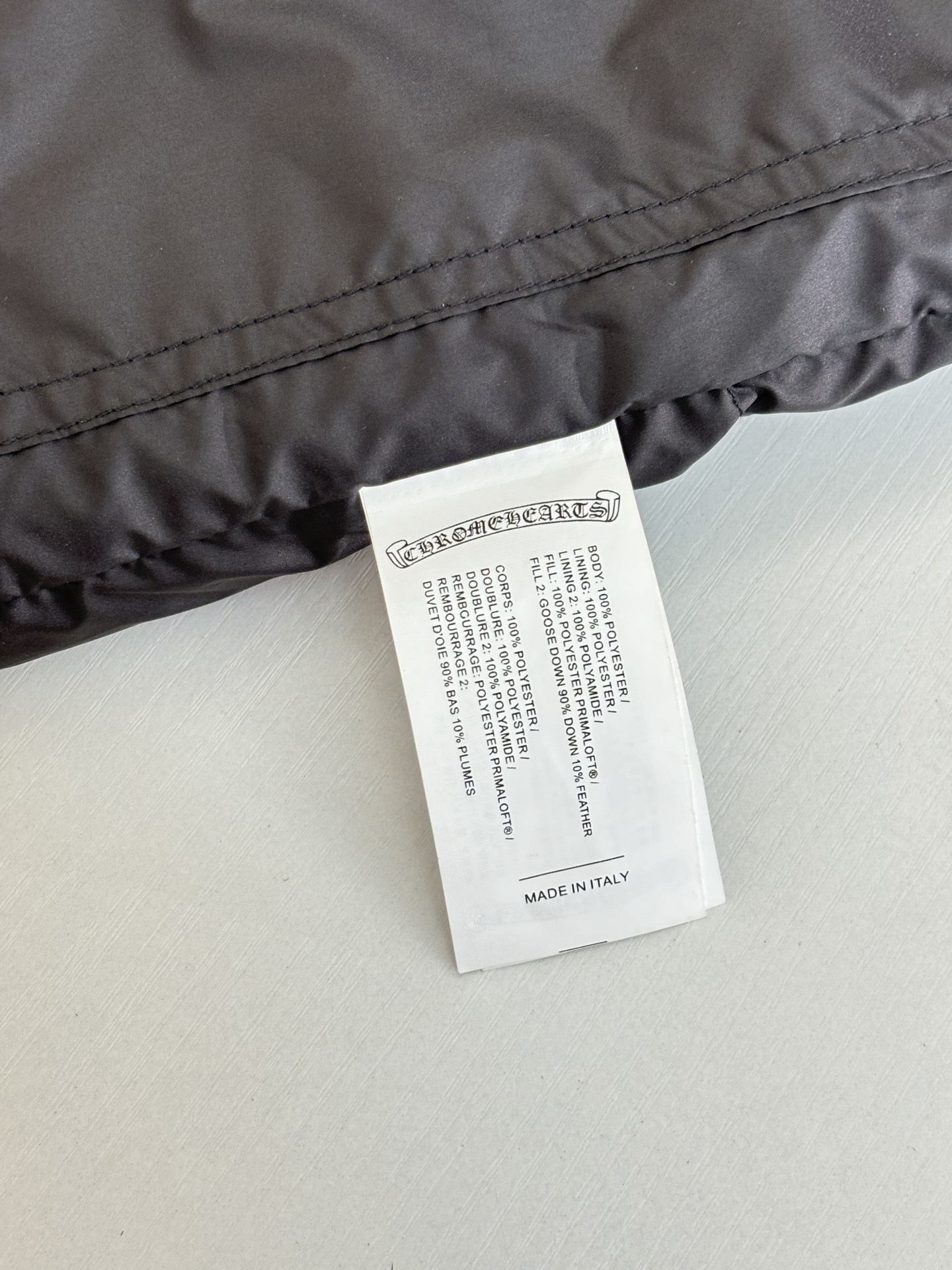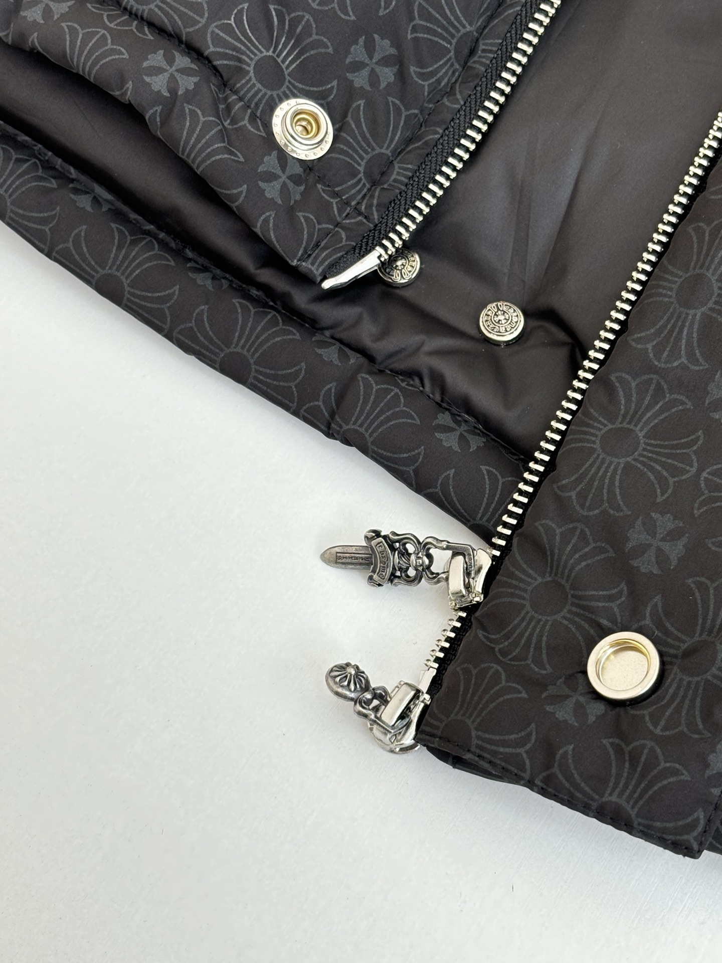這款衣服是AAAAA 1:1 質量(非常棒). 使用了和原版一模一樣的材料. 商標部分也保持了和鉻心/Chrome Hearts一樣. 圖片拍攝是實物衣服拍攝, 您所收到的實物保證和我們圖片一模一樣.