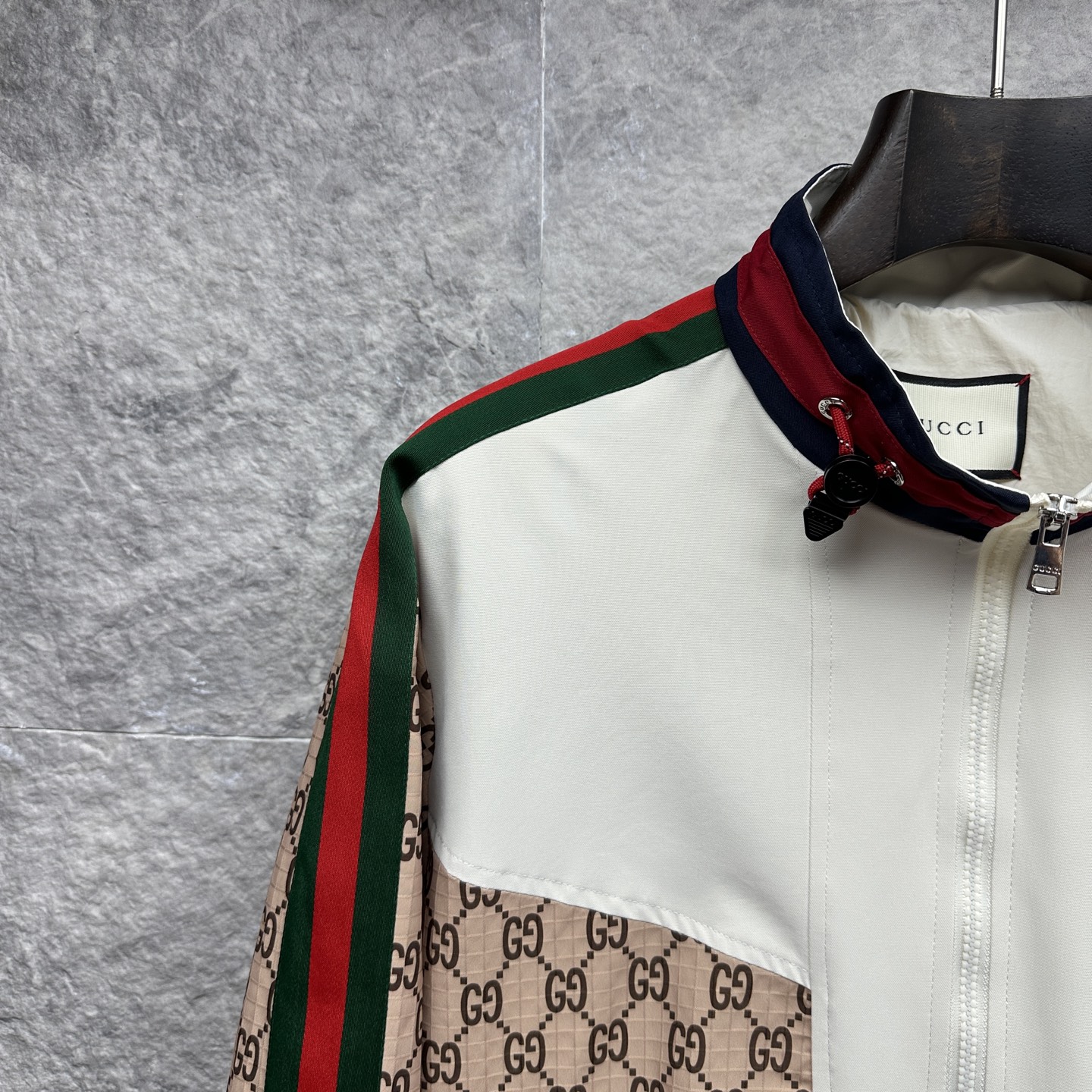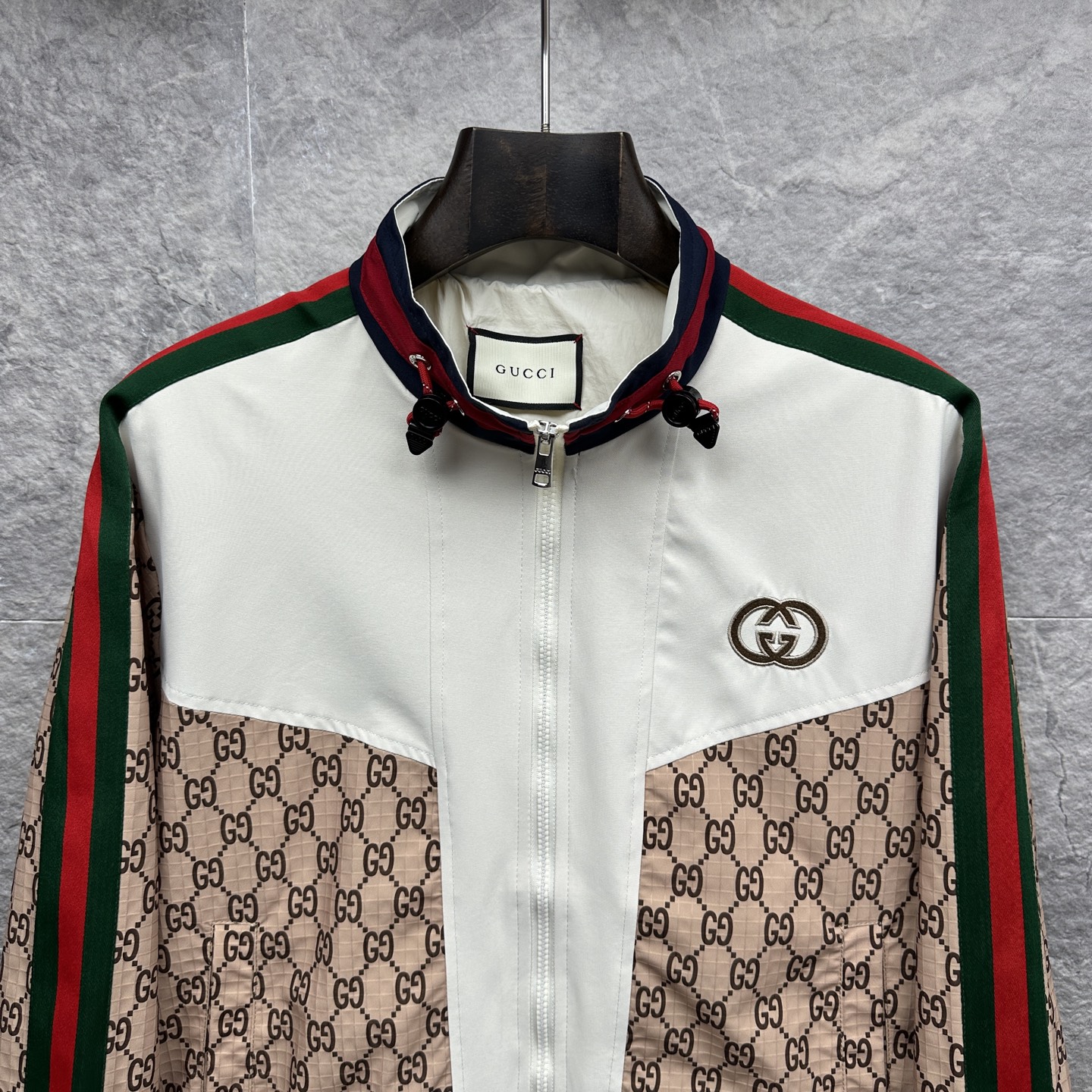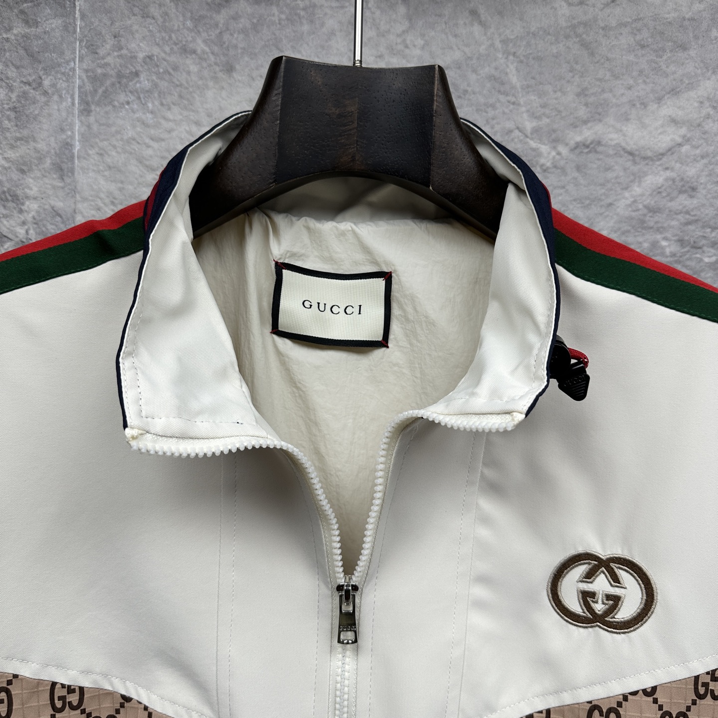 這款衣服是AAAAA 1:1 質量(非常棒). 使用了和原版一模一樣的材料. 商標部分也保持了和古奇/Gucci一樣. 圖片拍攝是實物衣服拍攝, 您所收到的實物保證和我們圖片一模一樣.