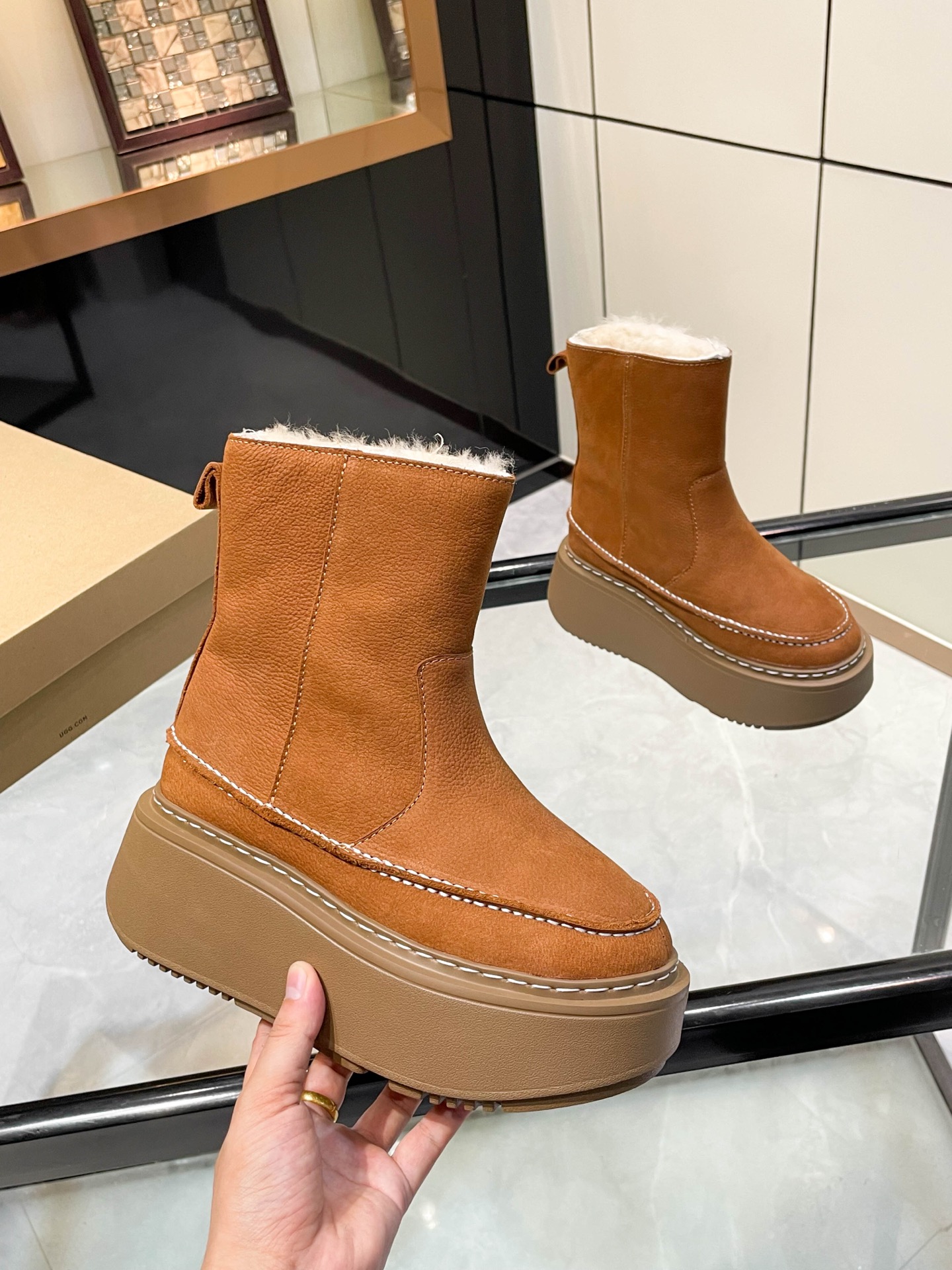 這款鞋子是AAAAA 1:1 質量(非常棒). 使用了和原版一模一樣的材料. 商標部分也保持了和UGG一樣. 圖片拍攝是實物鞋子拍攝, 您所收到的實物保證和我們圖片一模一樣.