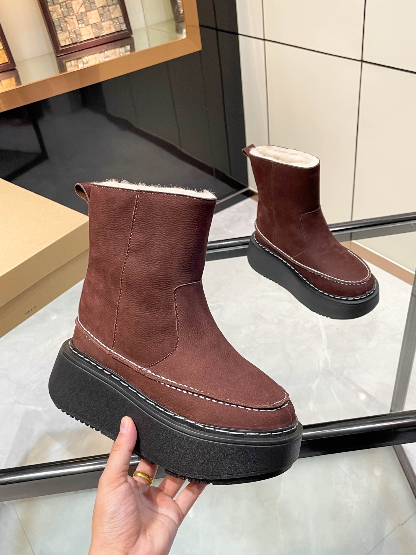 這款鞋子是AAAAA 1:1 質量(非常棒). 使用了和原版一模一樣的材料. 商標部分也保持了和UGG一樣. 圖片拍攝是實物鞋子拍攝, 您所收到的實物保證和我們圖片一模一樣.