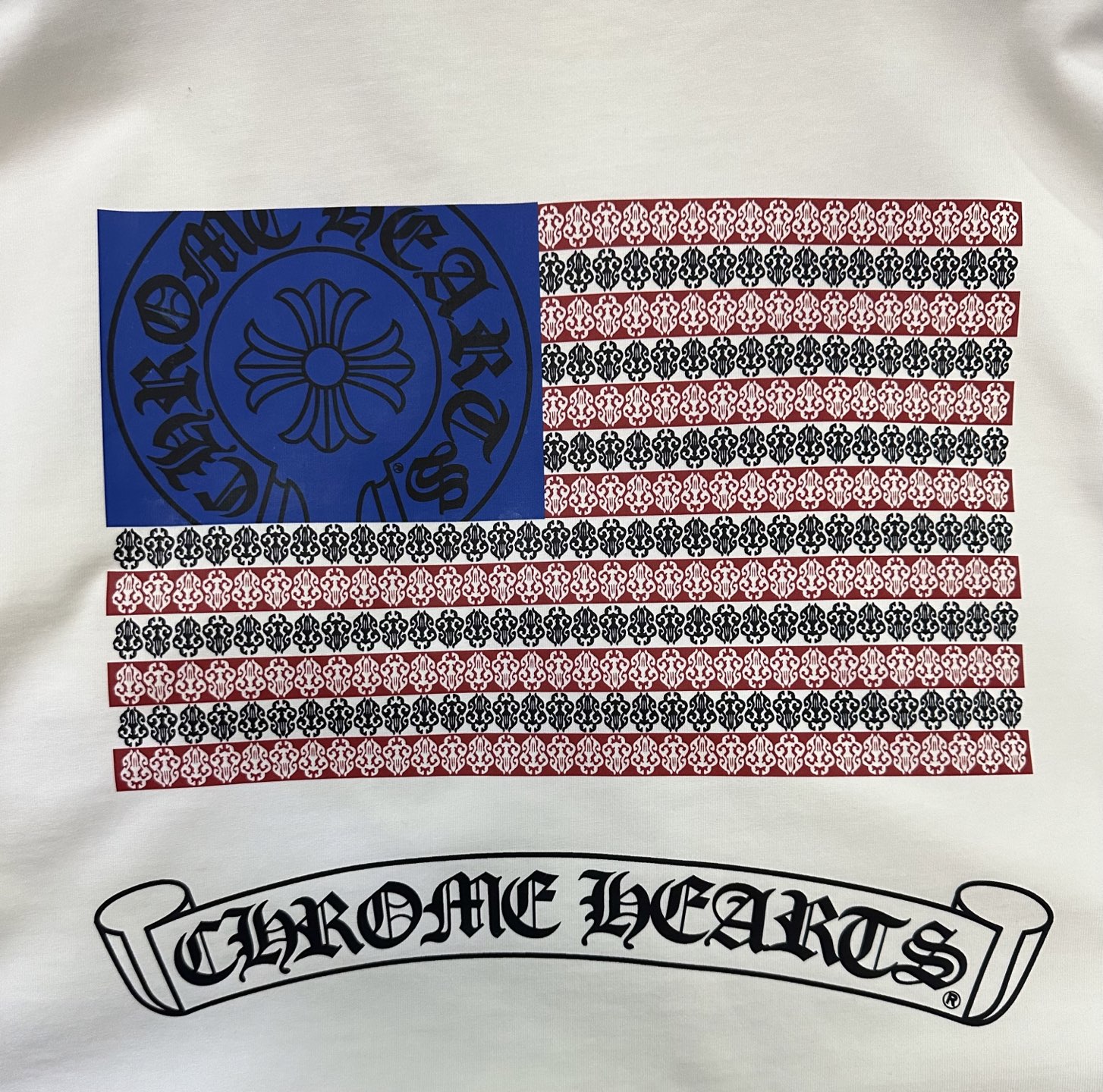 這款衣服是AAAAA 1:1 質量(非常棒). 使用了和原版一模一樣的材料. 商標部分也保持了和鉻心/Chrome Hearts一樣. 圖片拍攝是實物衣服拍攝, 您所收到的實物保證和我們圖片一模一樣.