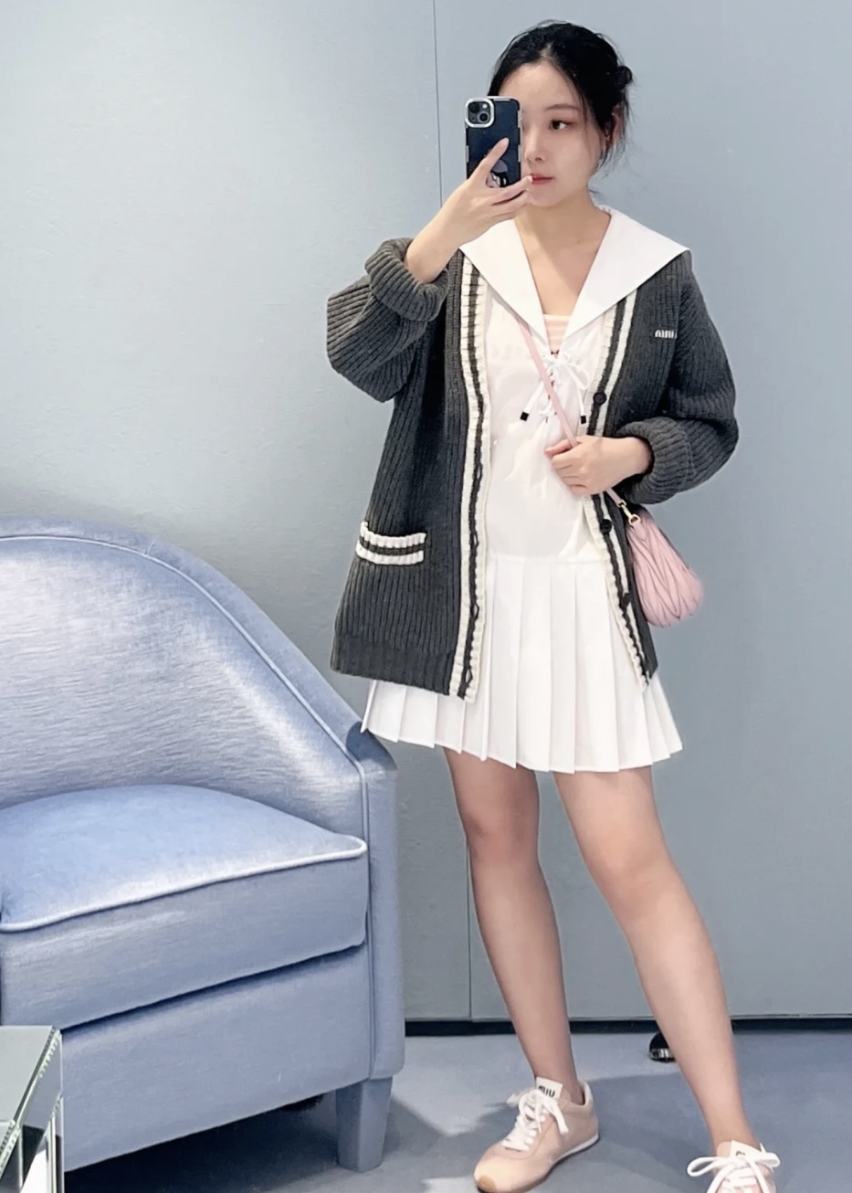 這款衣服是AAAAA 1:1 質量(非常棒). 使用了和原版一模一樣的材料. 商標部分也保持了和繆繆/Miu Miu一樣. 圖片拍攝是實物衣服拍攝, 您所收到的實物保證和我們圖片一模一樣.