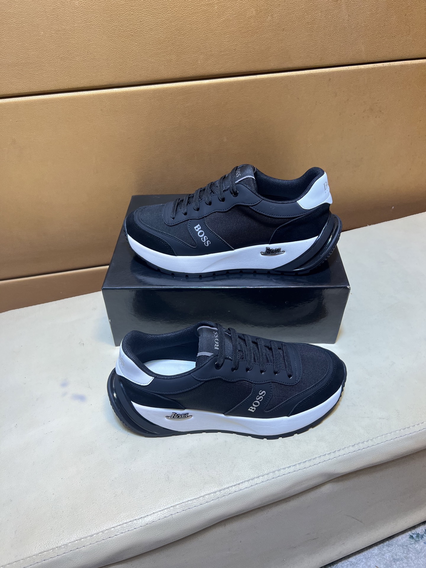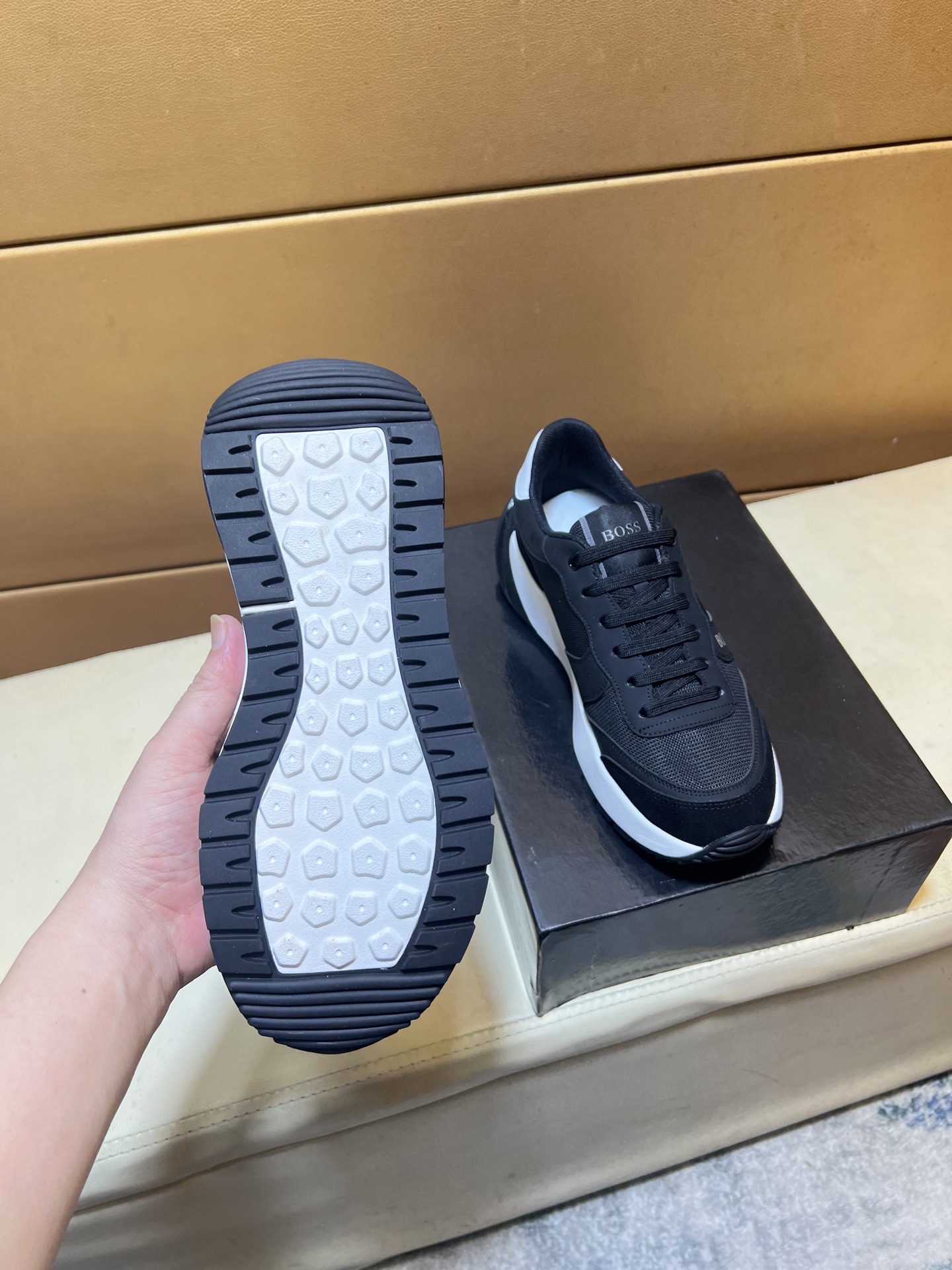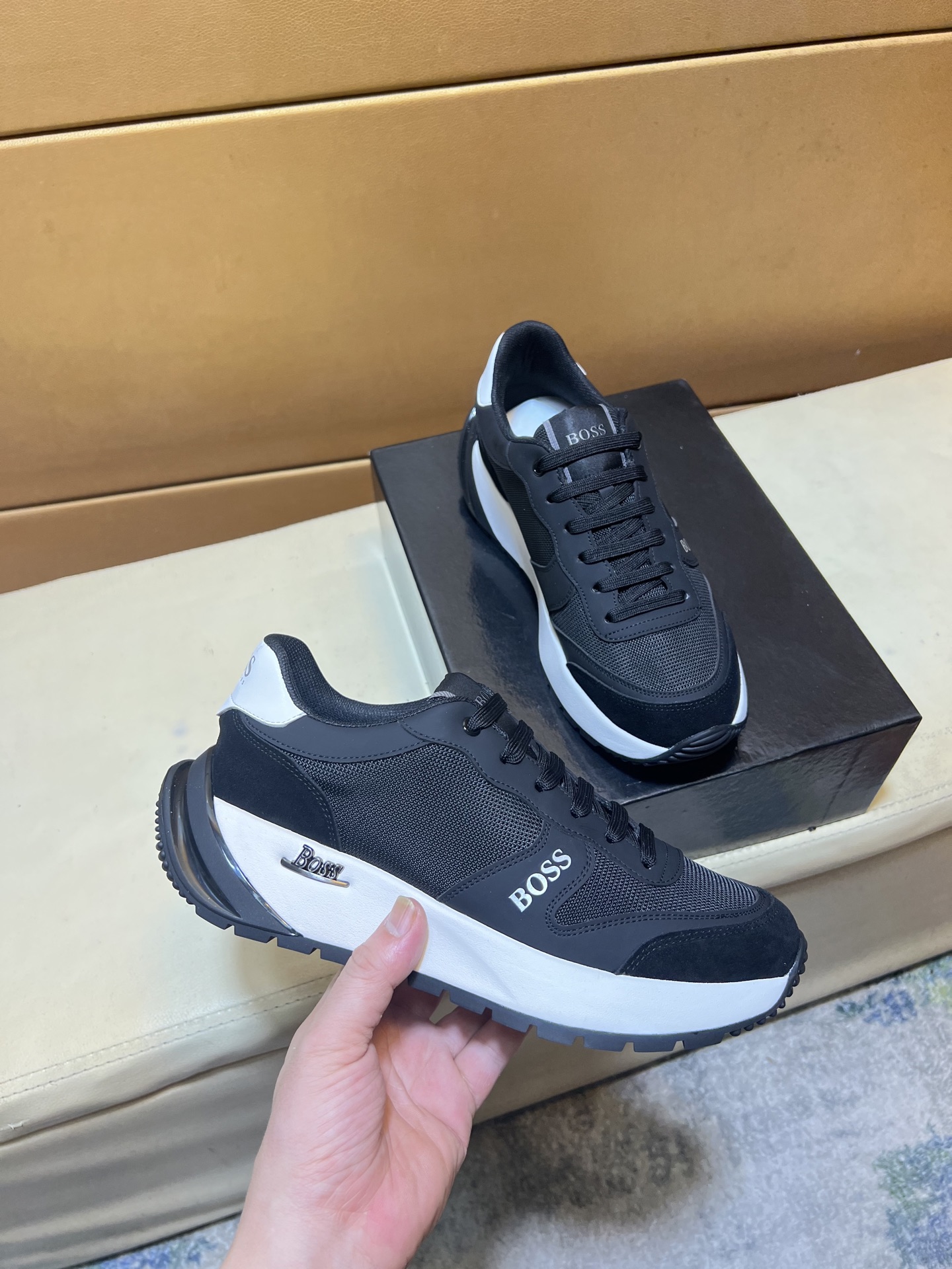 這款鞋子是AAAAA 1:1 質量(非常棒). 使用了和原版一模一樣的材料. 商標部分也保持了和BOSS一樣. 圖片拍攝是實物鞋子拍攝, 您所收到的實物保證和我們圖片一模一樣.