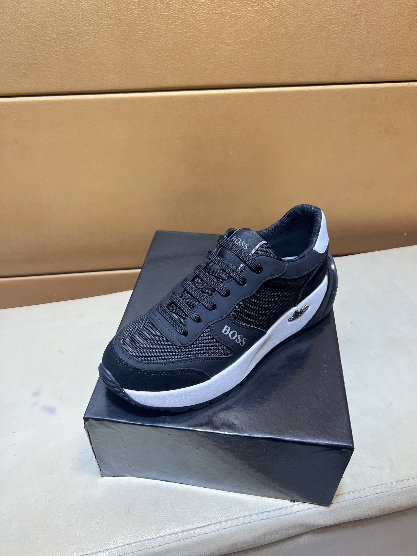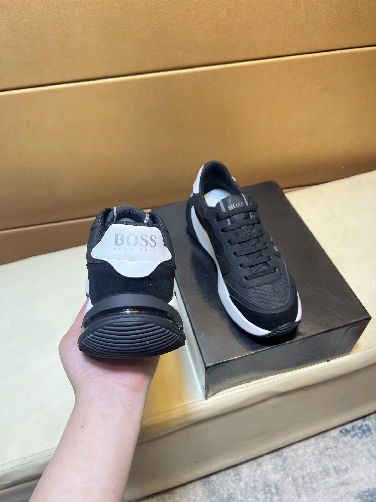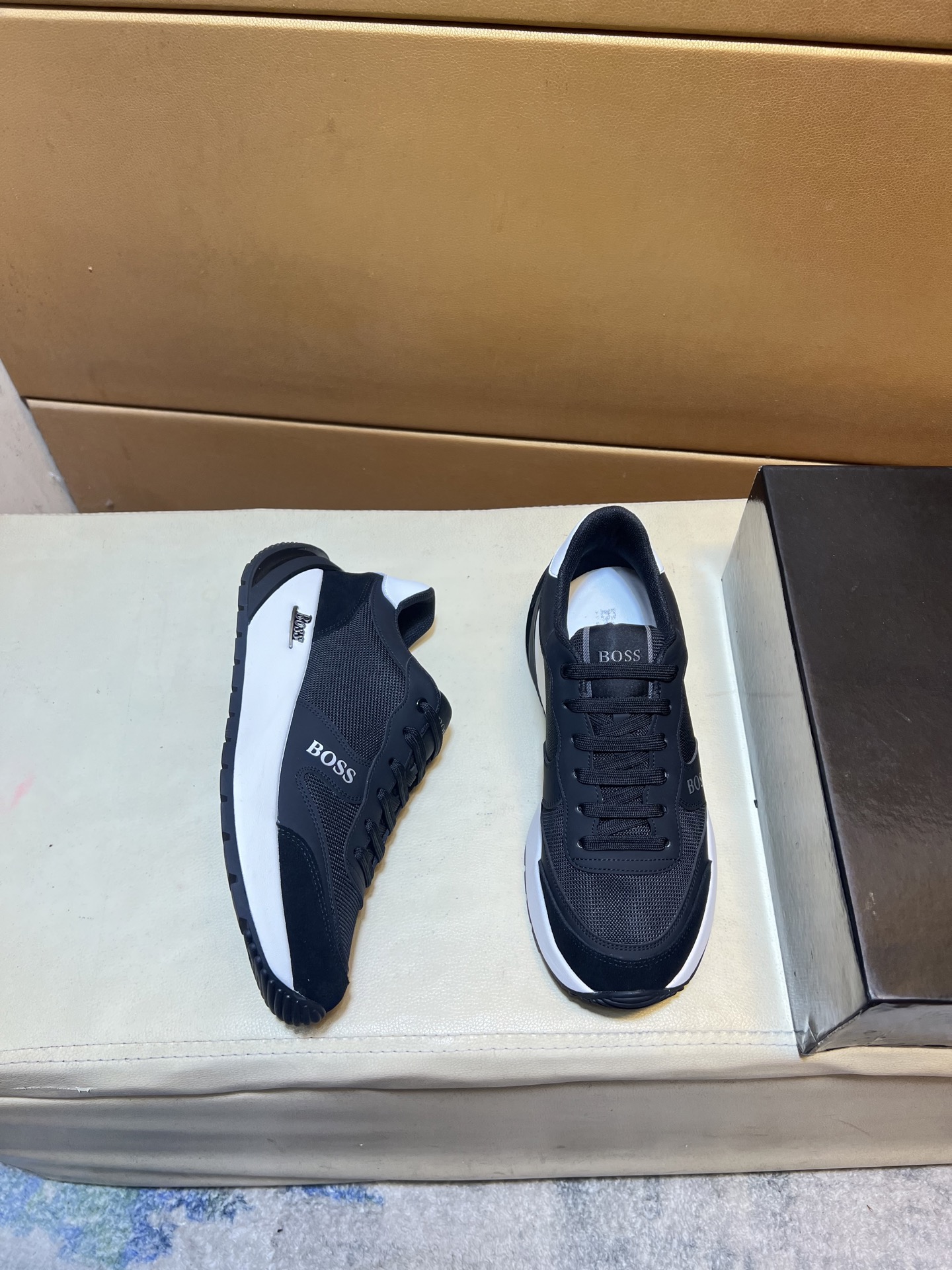 這款鞋子是AAAAA 1:1 質量(非常棒). 使用了和原版一模一樣的材料. 商標部分也保持了和BOSS一樣. 圖片拍攝是實物鞋子拍攝, 您所收到的實物保證和我們圖片一模一樣.