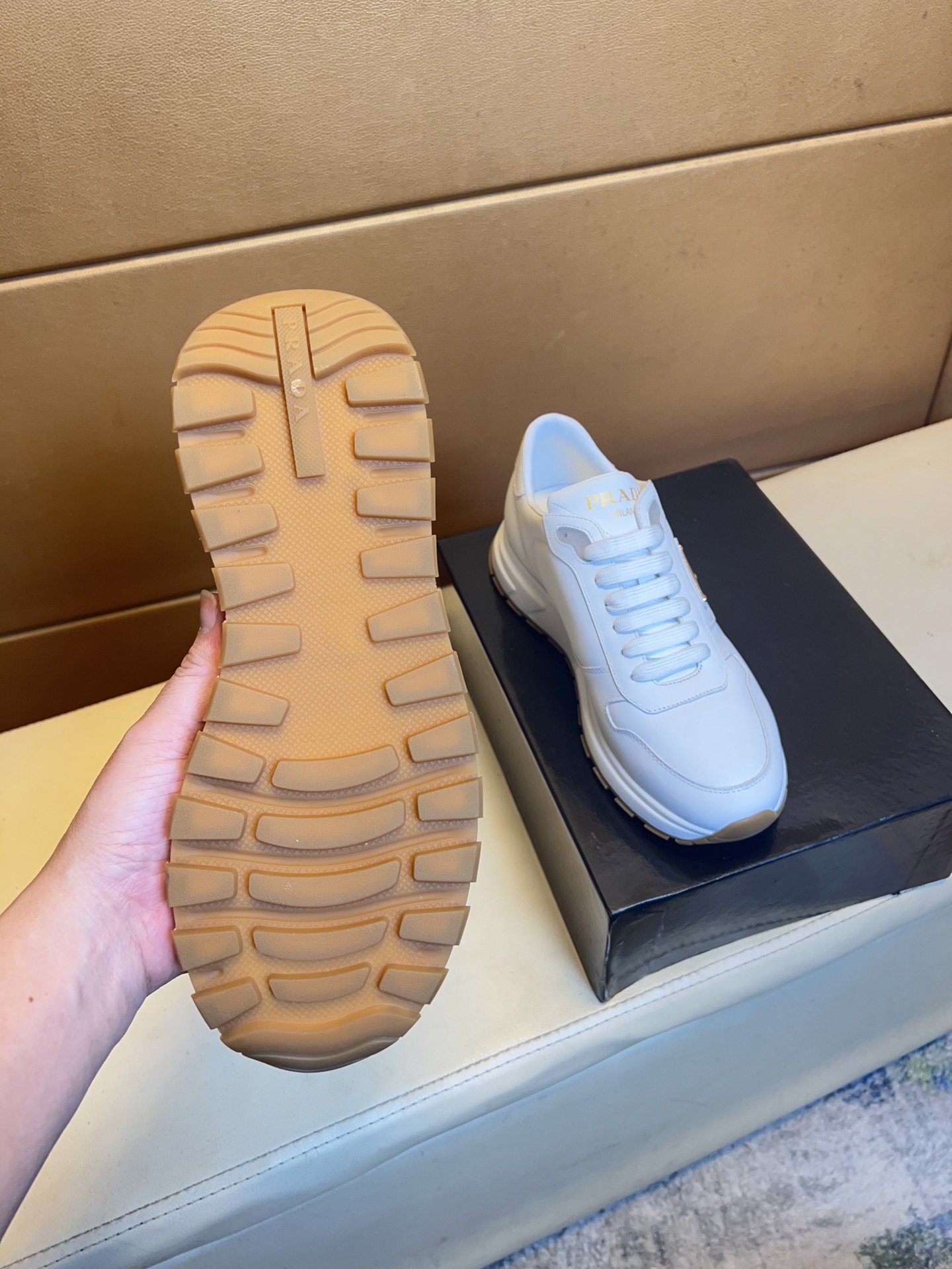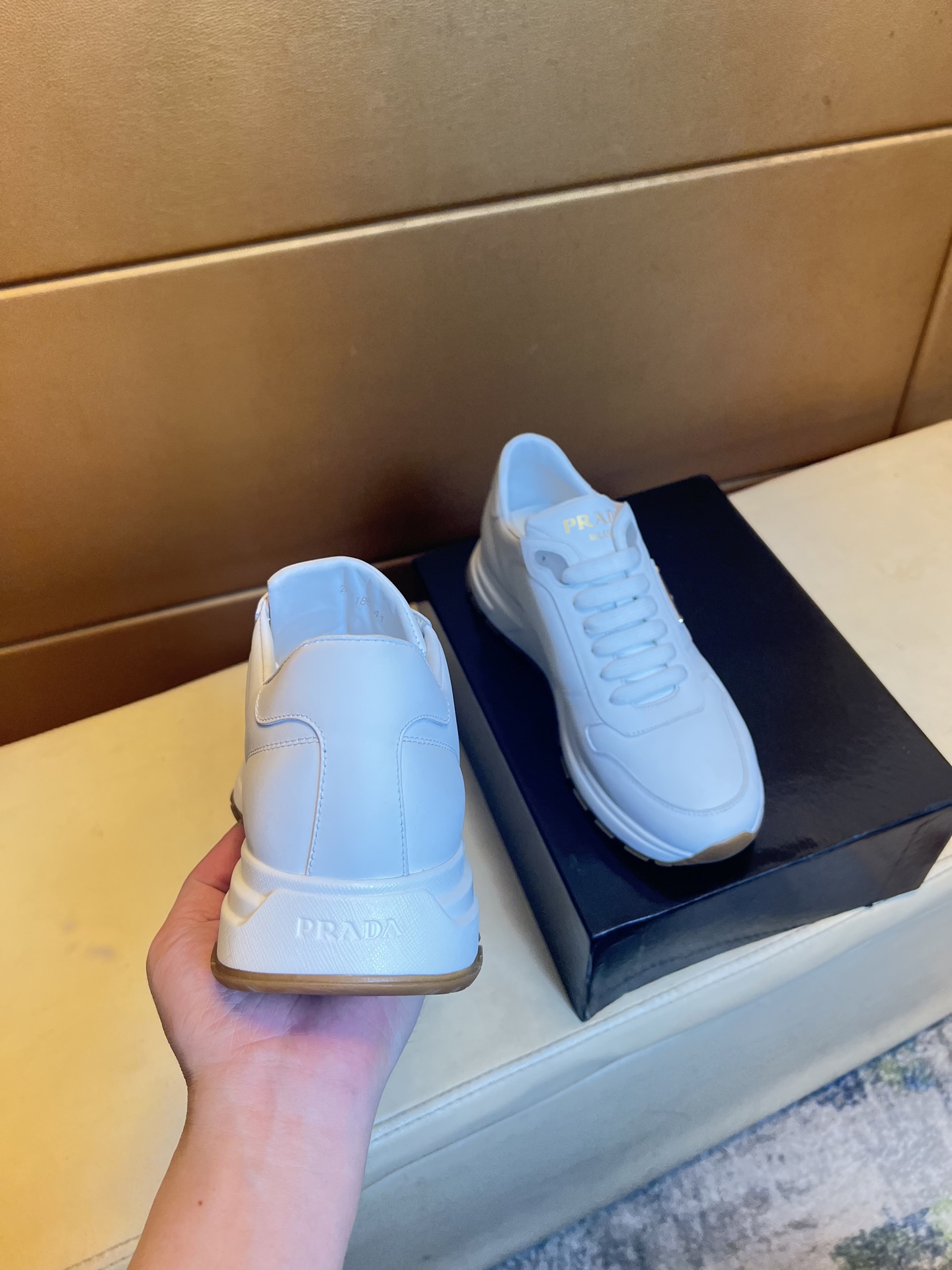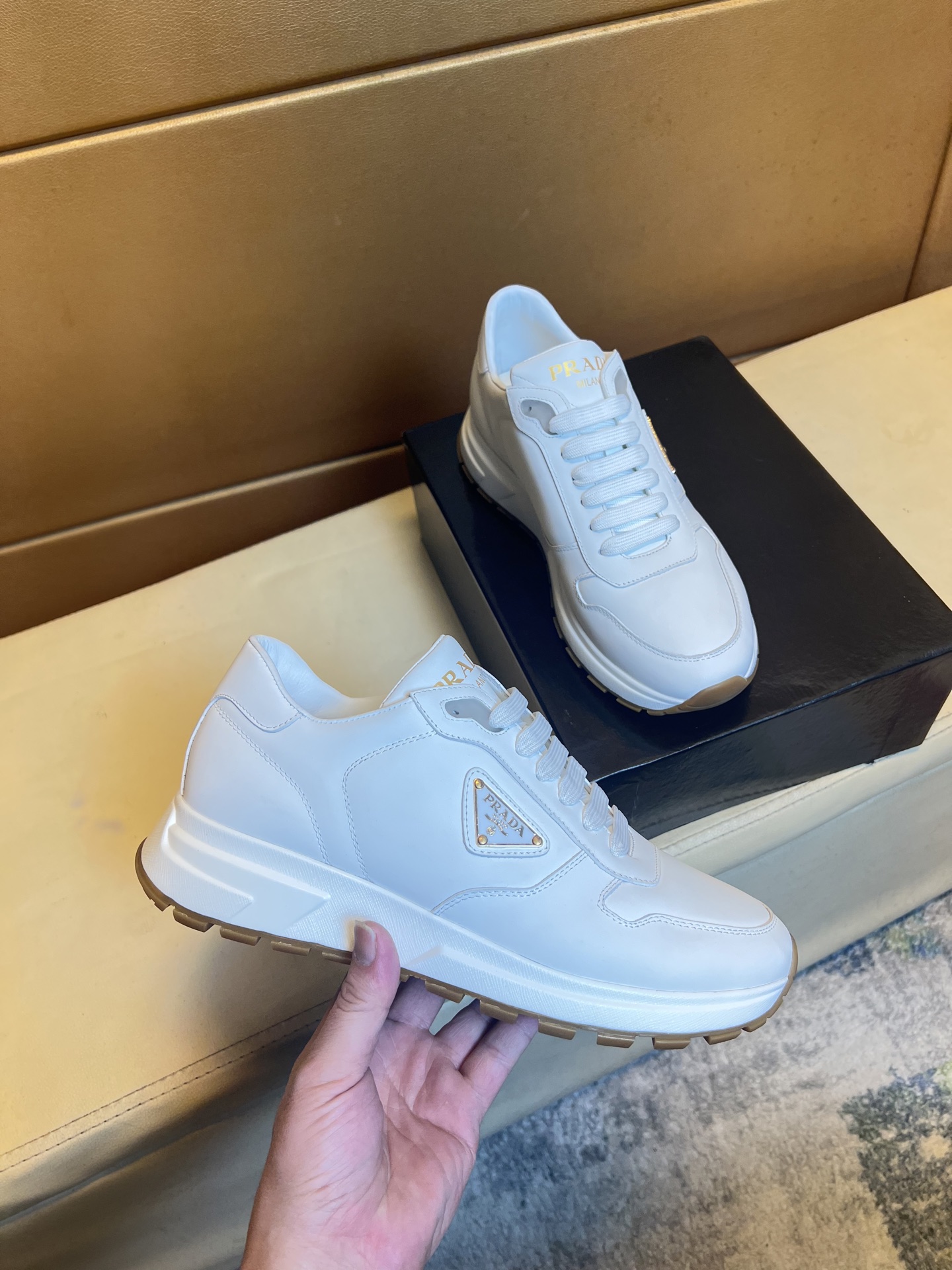 這款鞋子是AAAAA 1:1 質量(非常棒). 使用了和原版一模一樣的材料. 商標部分也保持了和普拉達/Prada一樣. 圖片拍攝是實物鞋子拍攝, 您所收到的實物保證和我們圖片一模一樣.