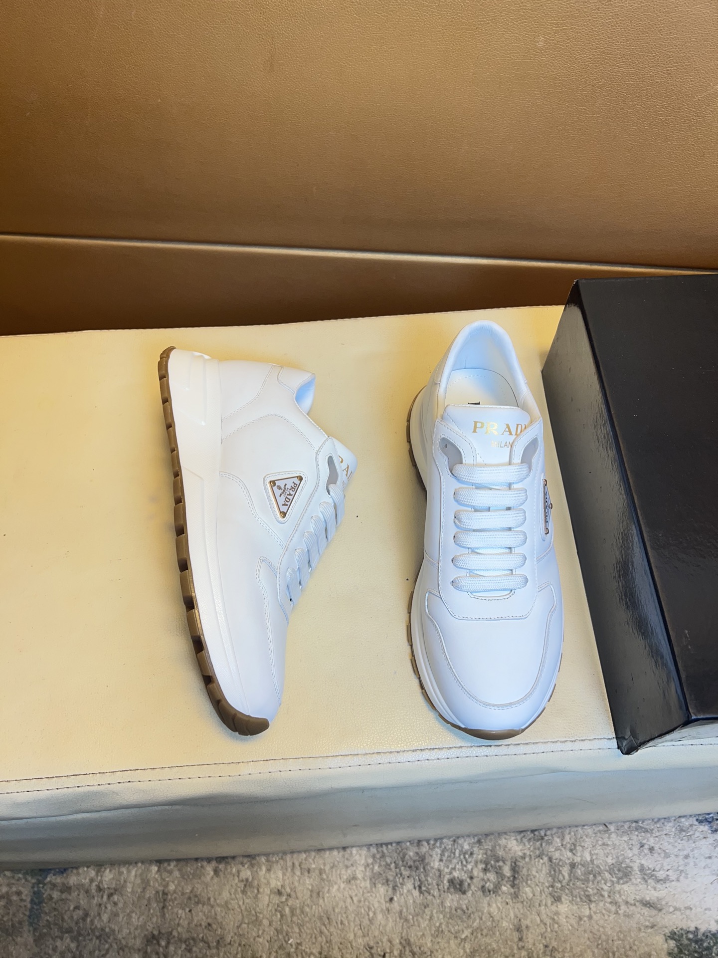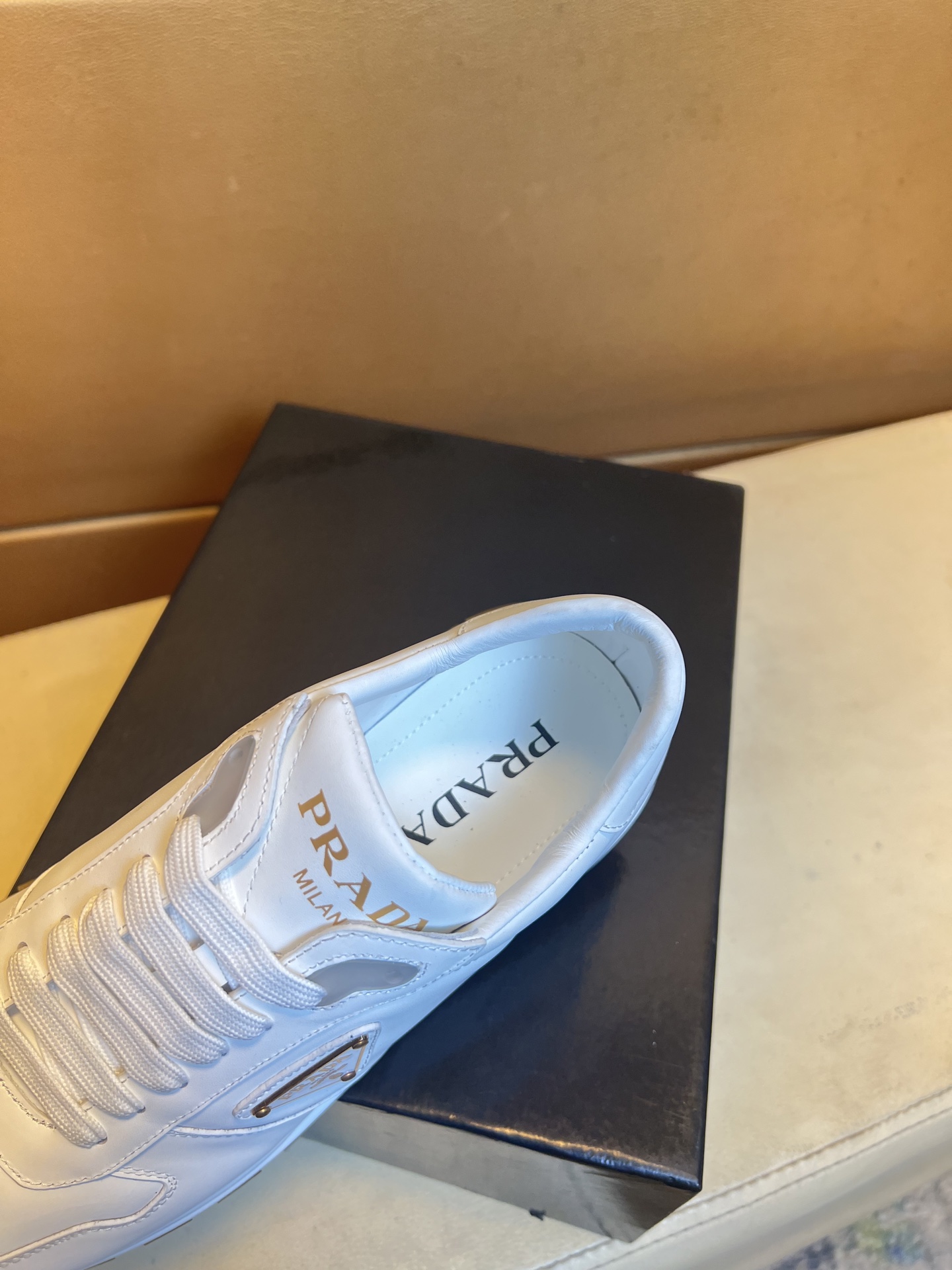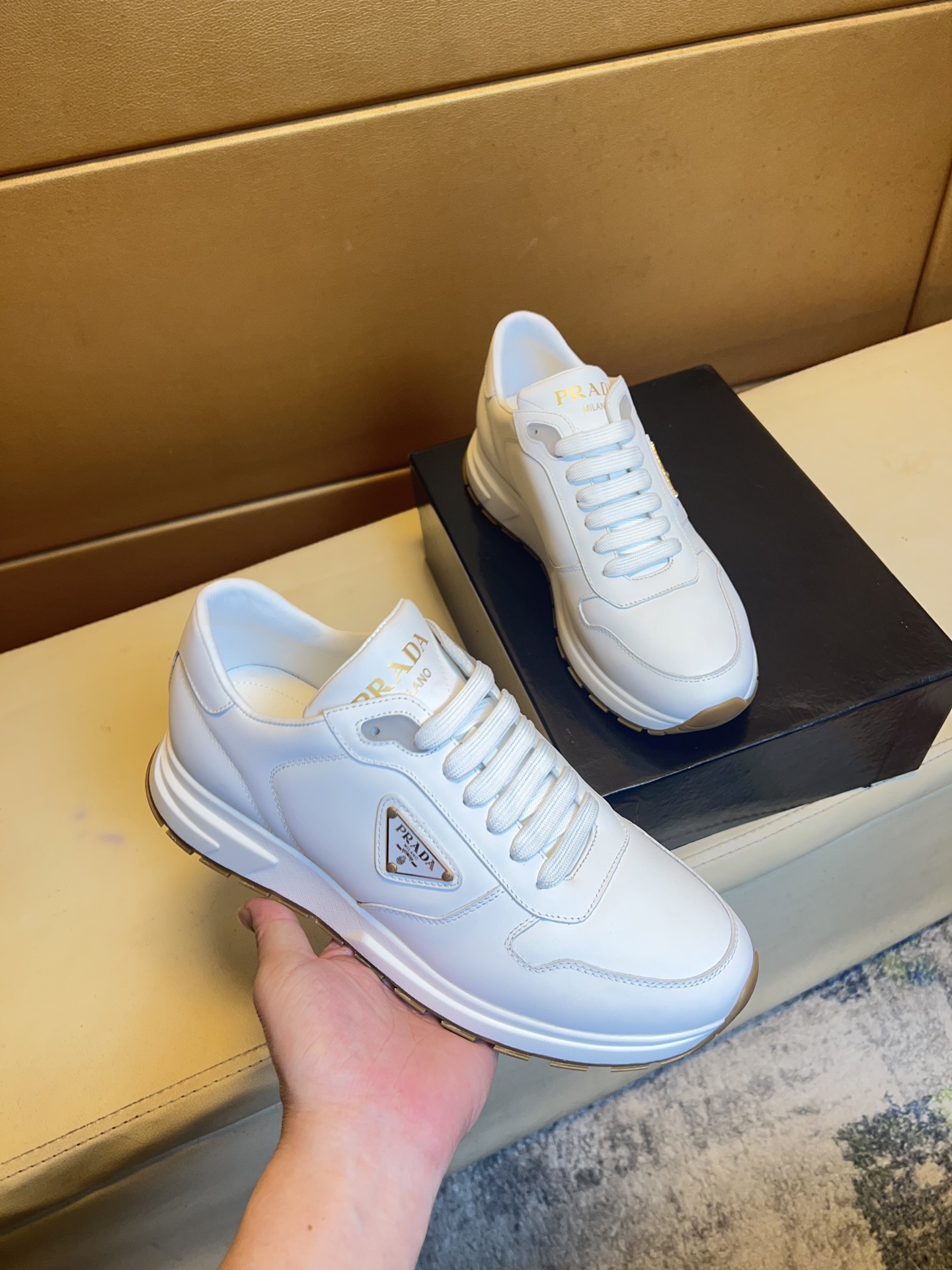 這款鞋子是AAAAA 1:1 質量(非常棒). 使用了和原版一模一樣的材料. 商標部分也保持了和普拉達/Prada一樣. 圖片拍攝是實物鞋子拍攝, 您所收到的實物保證和我們圖片一模一樣.