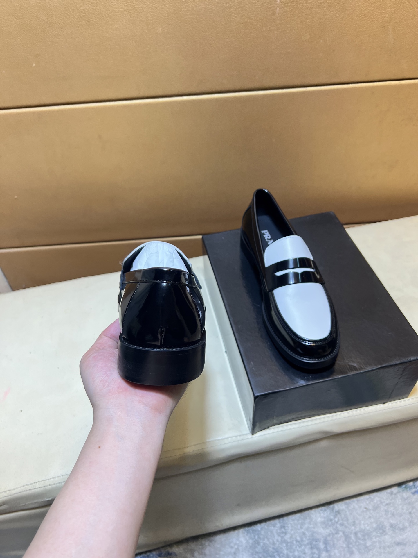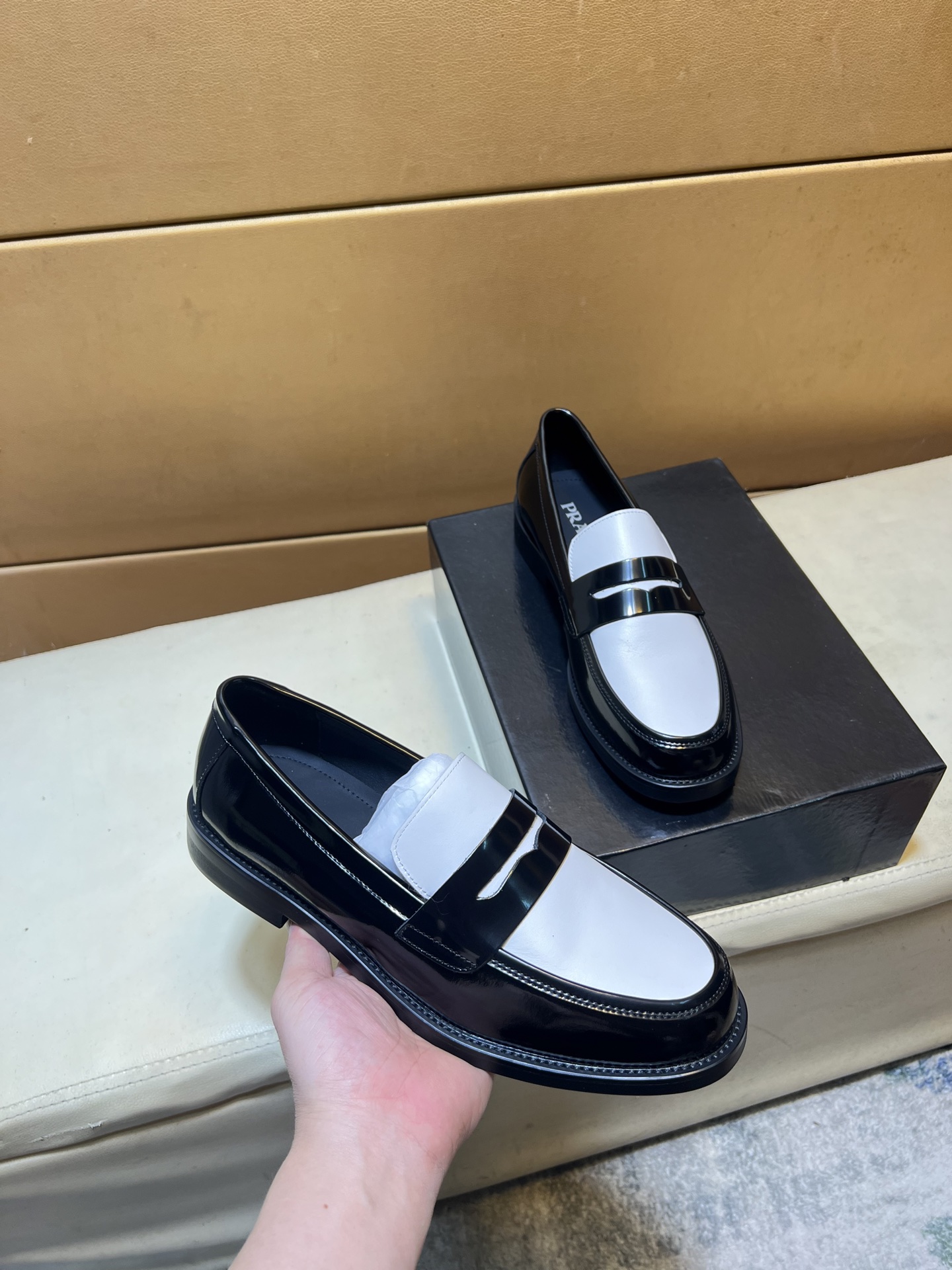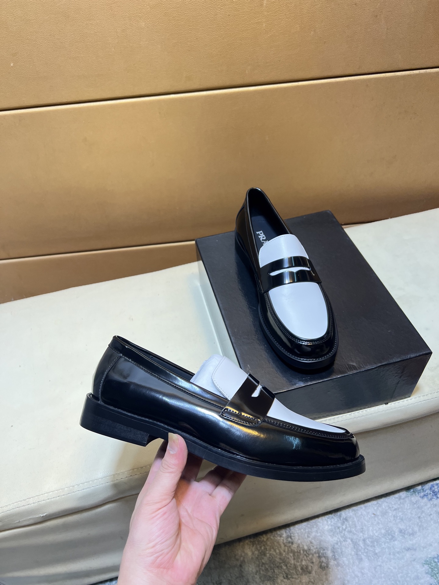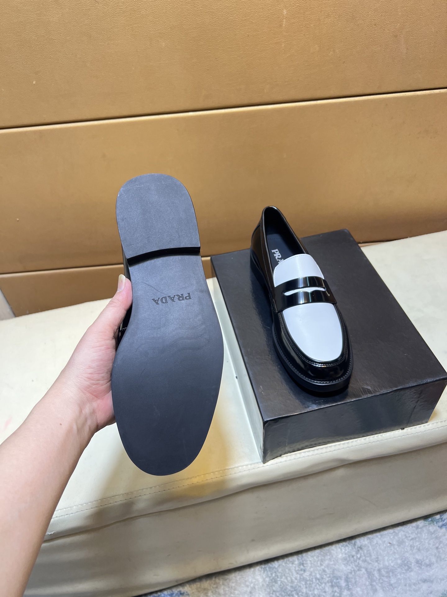 這款鞋子是AAAAA 1:1 質量(非常棒). 使用了和原版一模一樣的材料. 商標部分也保持了和普拉達/Prada一樣. 圖片拍攝是實物鞋子拍攝, 您所收到的實物保證和我們圖片一模一樣.