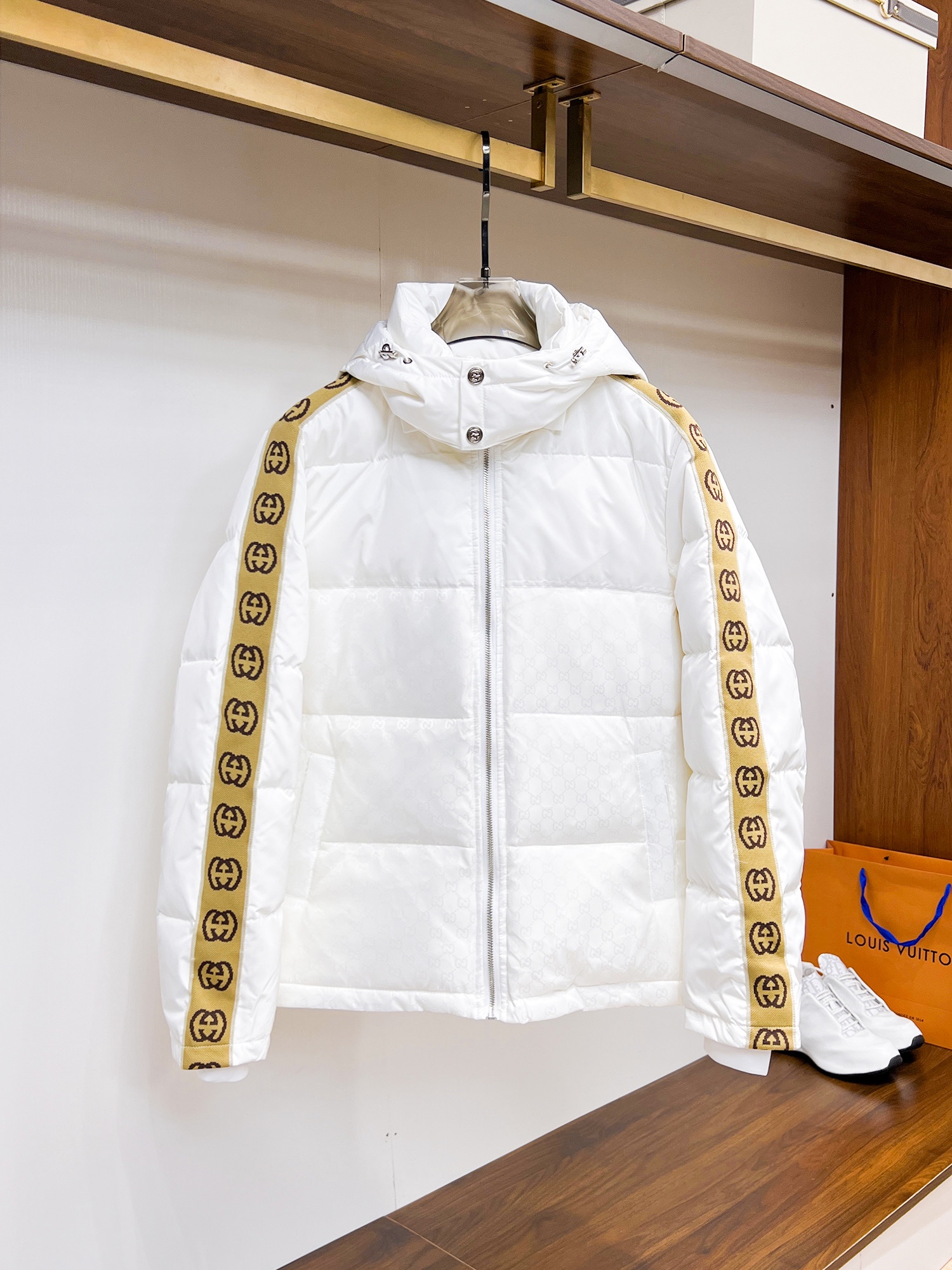 這款衣服是AAAAA 1:1 質量(非常棒). 使用了和原版一模一樣的材料. 商標部分也保持了和古奇/Gucci一樣. 圖片拍攝是實物衣服拍攝, 您所收到的實物保證和我們圖片一模一樣.