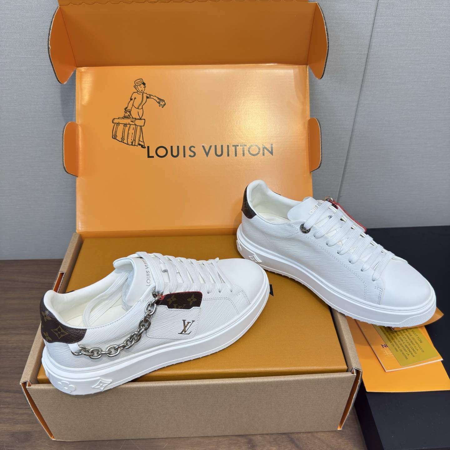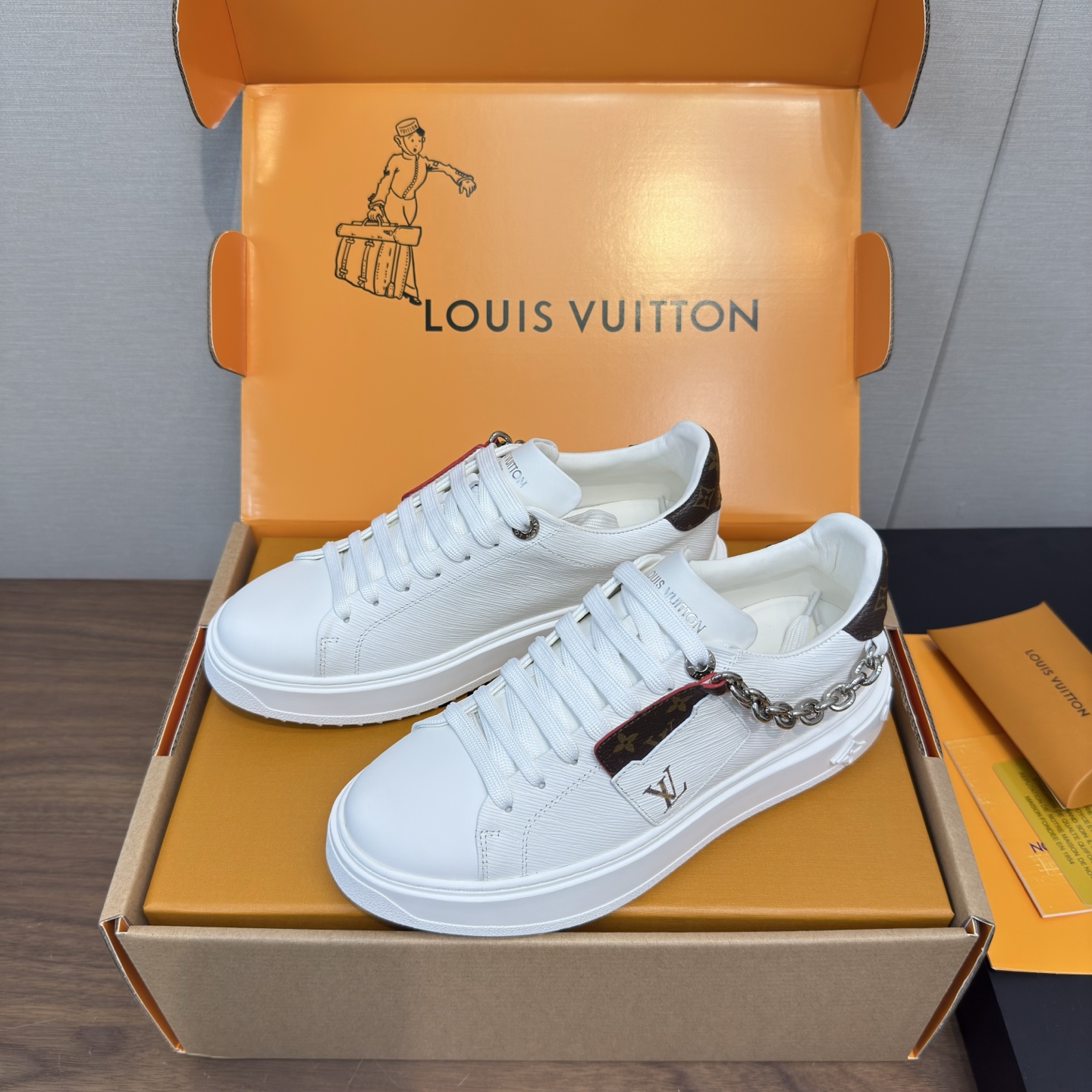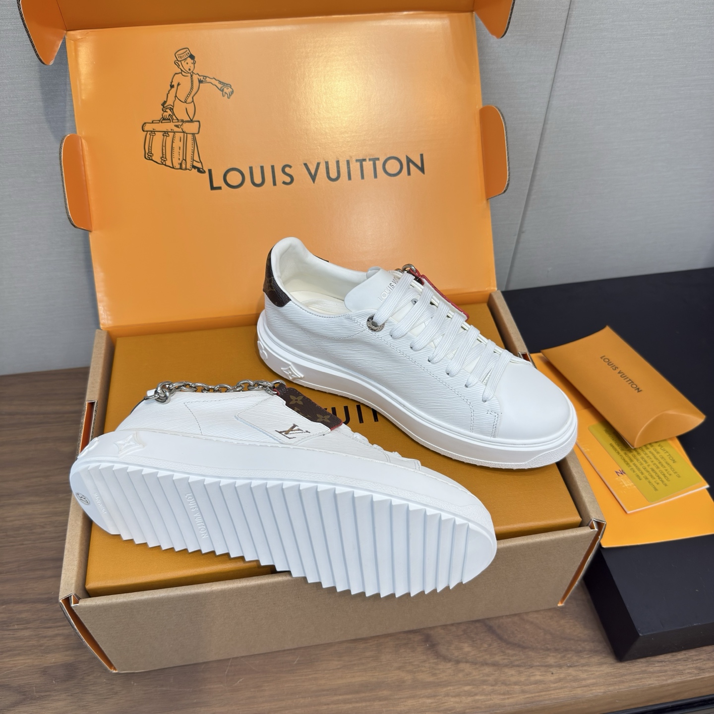 這款鞋子是AAAAA 1:1 質量(非常棒). 使用了和原版一模一樣的材料. 商標部分也保持了和路易威登/Louis Vuitton一樣. 圖片拍攝是實物鞋子拍攝, 您所收到的實物保證和我們圖片一模一樣.