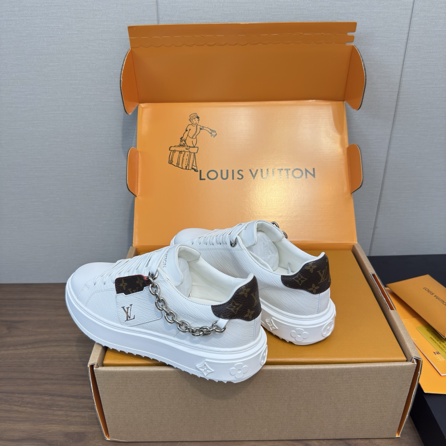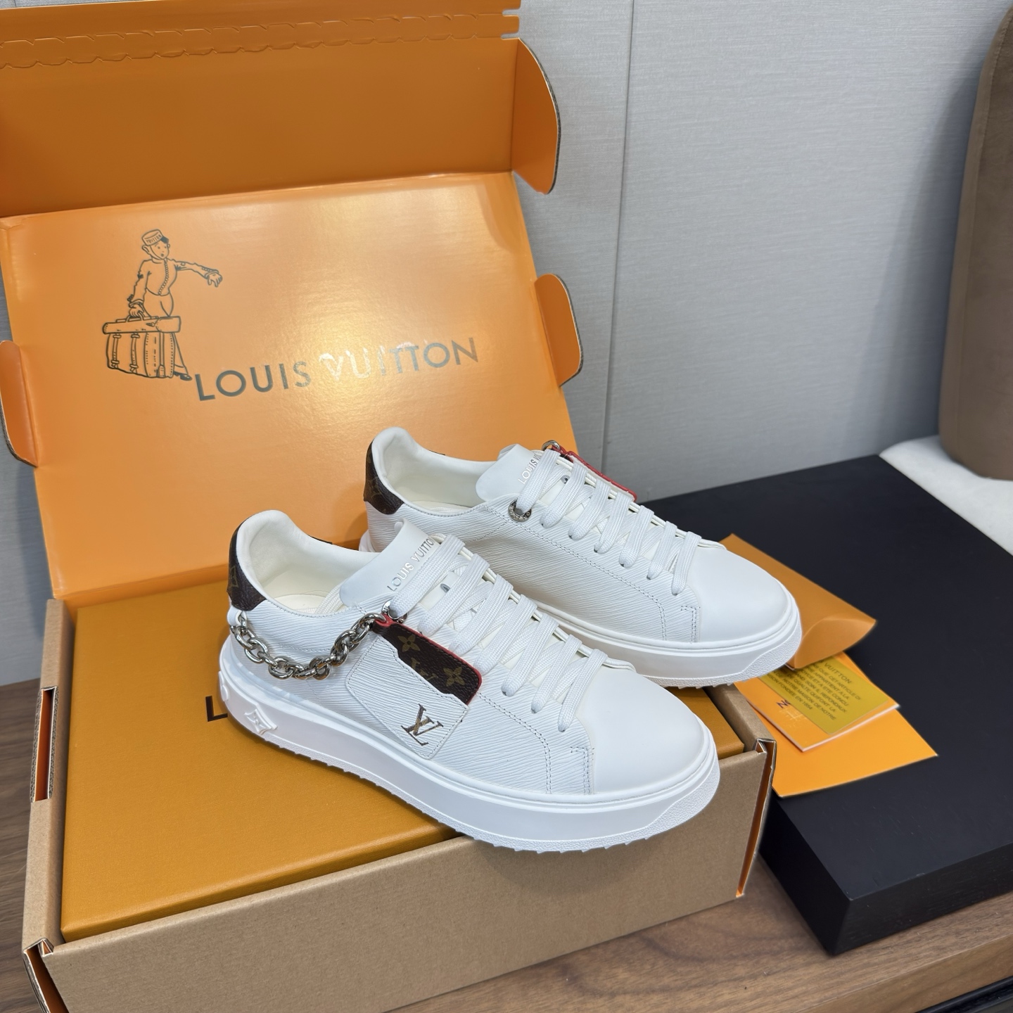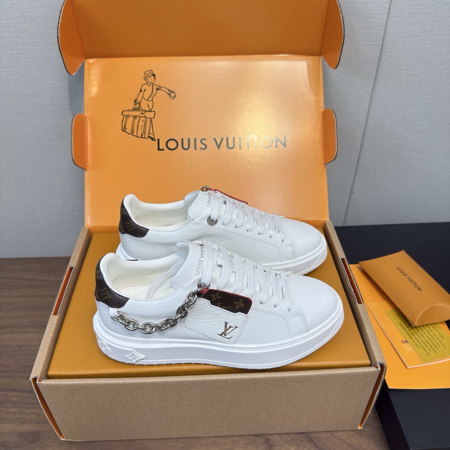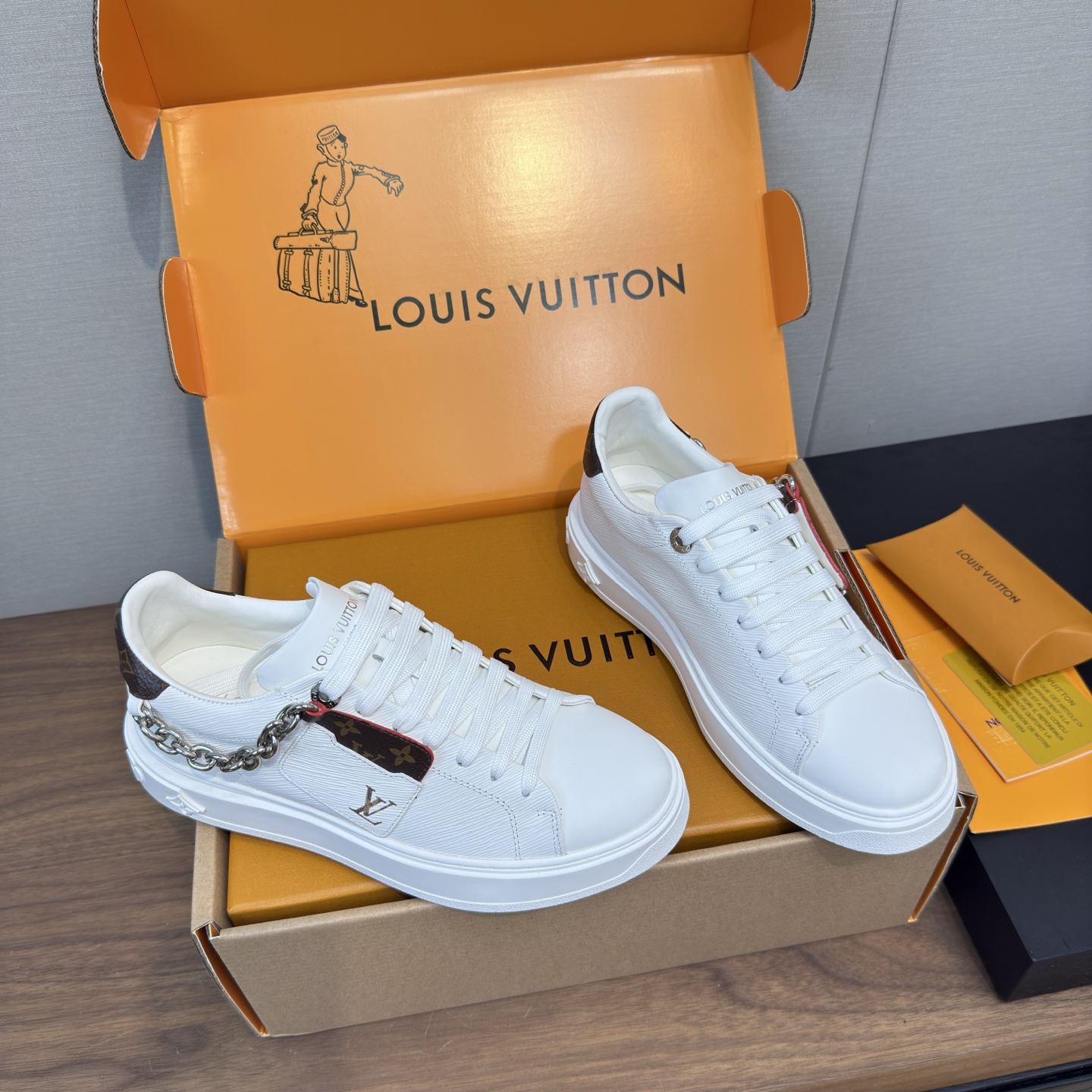 這款鞋子是AAAAA 1:1 質量(非常棒). 使用了和原版一模一樣的材料. 商標部分也保持了和路易威登/Louis Vuitton一樣. 圖片拍攝是實物鞋子拍攝, 您所收到的實物保證和我們圖片一模一樣.