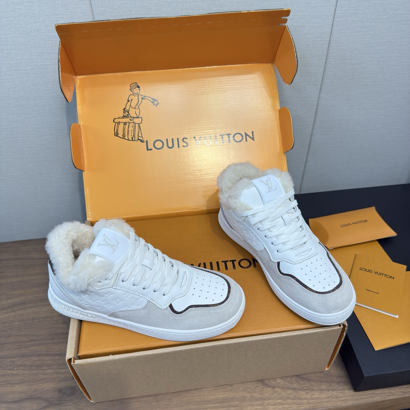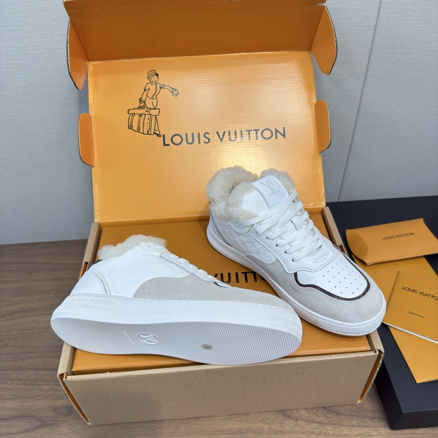 這款鞋子是AAAAA 1:1 質量(非常棒). 使用了和原版一模一樣的材料. 商標部分也保持了和路易威登/Louis Vuitton一樣. 圖片拍攝是實物鞋子拍攝, 您所收到的實物保證和我們圖片一模一樣.