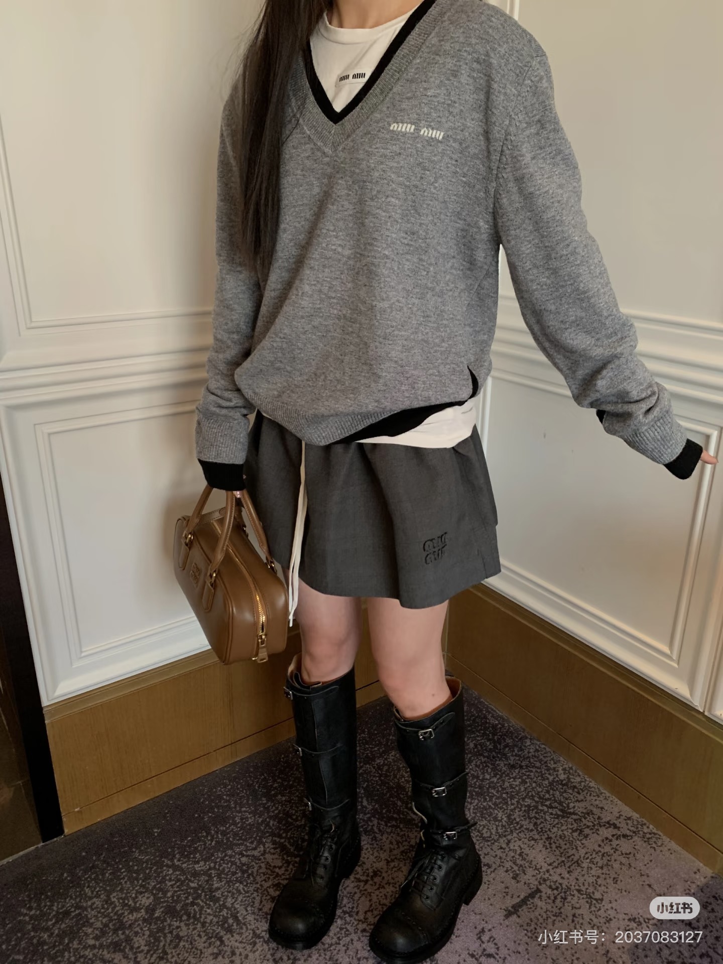 這款衣服是AAAAA 1:1 質量(非常棒). 使用了和原版一模一樣的材料. 商標部分也保持了和繆繆/Miu Miu一樣. 圖片拍攝是實物衣服拍攝, 您所收到的實物保證和我們圖片一模一樣.