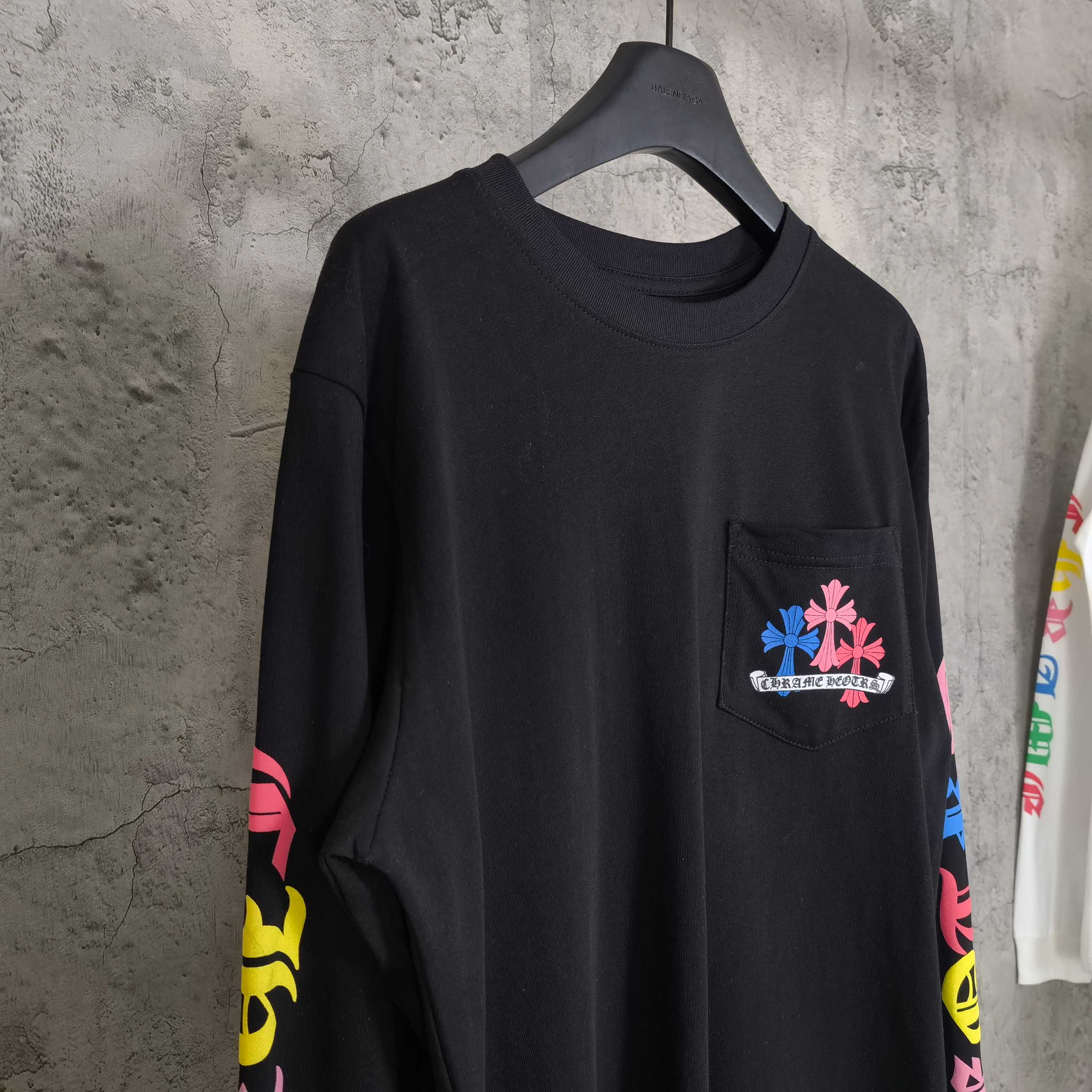 這款衣服是AAAAA 1:1 質量(非常棒). 使用了和原版一模一樣的材料. 商標部分也保持了和鉻心/Chrome Hearts一樣. 圖片拍攝是實物衣服拍攝, 您所收到的實物保證和我們圖片一模一樣.