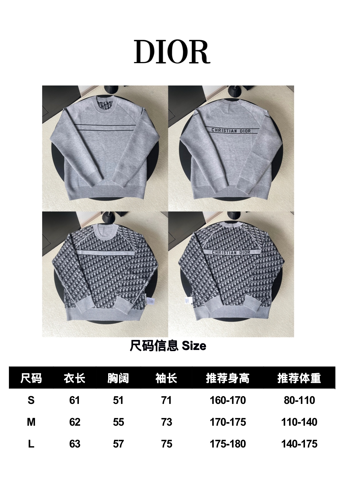 這款衣服是AAAAA 1:1 質量(非常棒). 使用了和原版一模一樣的材料. 商標部分也保持了和迪奧/Dior一樣. 圖片拍攝是實物衣服拍攝, 您所收到的實物保證和我們圖片一模一樣.