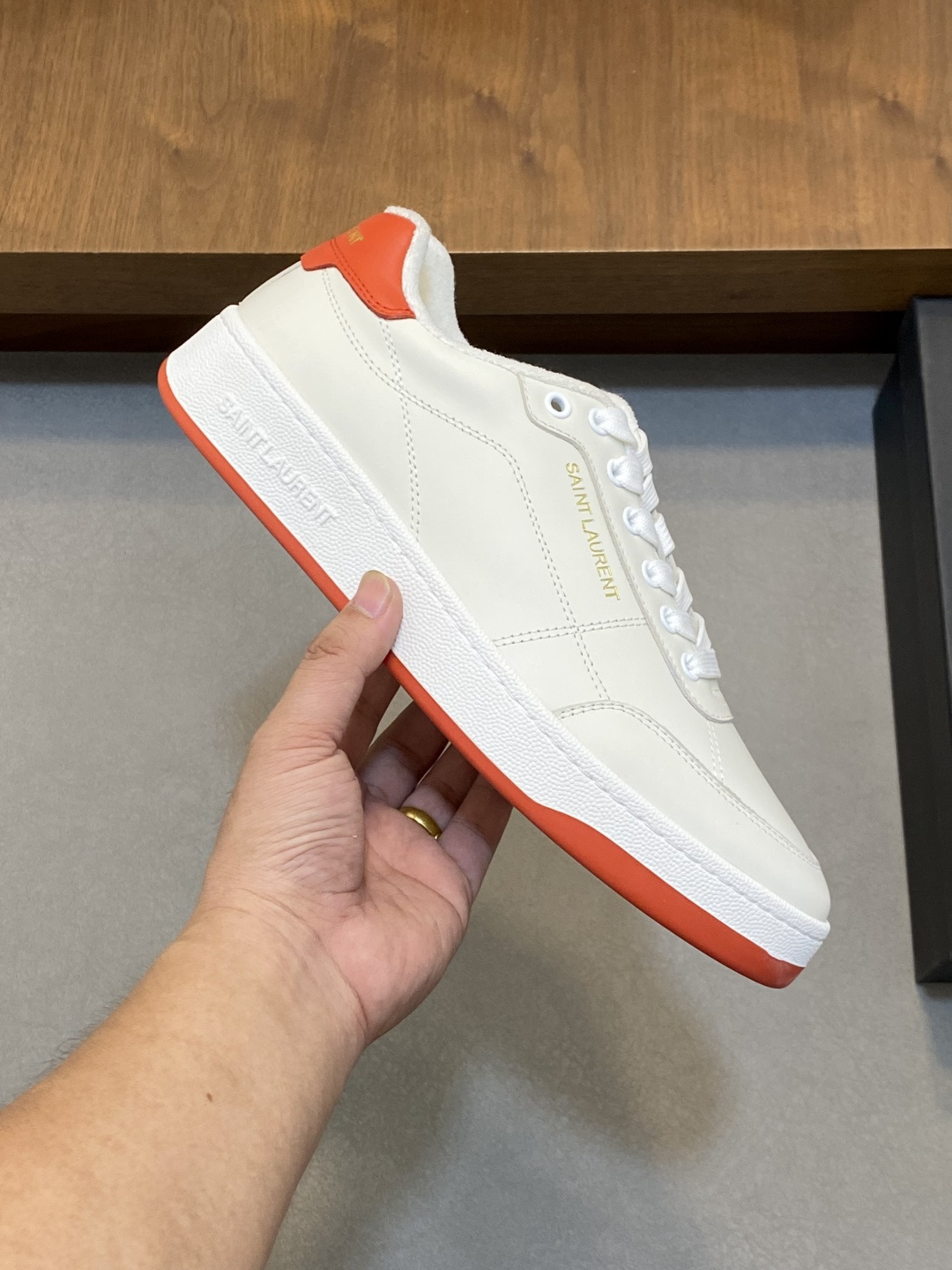 這款鞋子是AAAAA 1:1 質量(非常棒). 使用了和原版一模一樣的材料. 商標部分也保持了和聖羅蘭/Saint Laurent一樣. 圖片拍攝是實物鞋子拍攝, 您所收到的實物保證和我們圖片一模一樣.