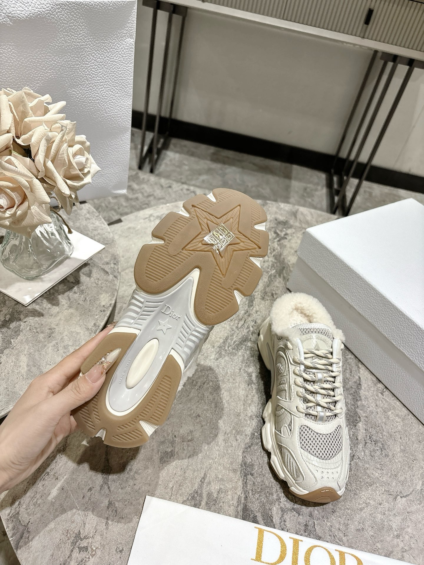 這款鞋子是AAAAA 1:1 質量(非常棒). 使用了和原版一模一樣的材料. 商標部分也保持了和迪奧/Dior一樣. 圖片拍攝是實物鞋子拍攝, 您所收到的實物保證和我們圖片一模一樣.