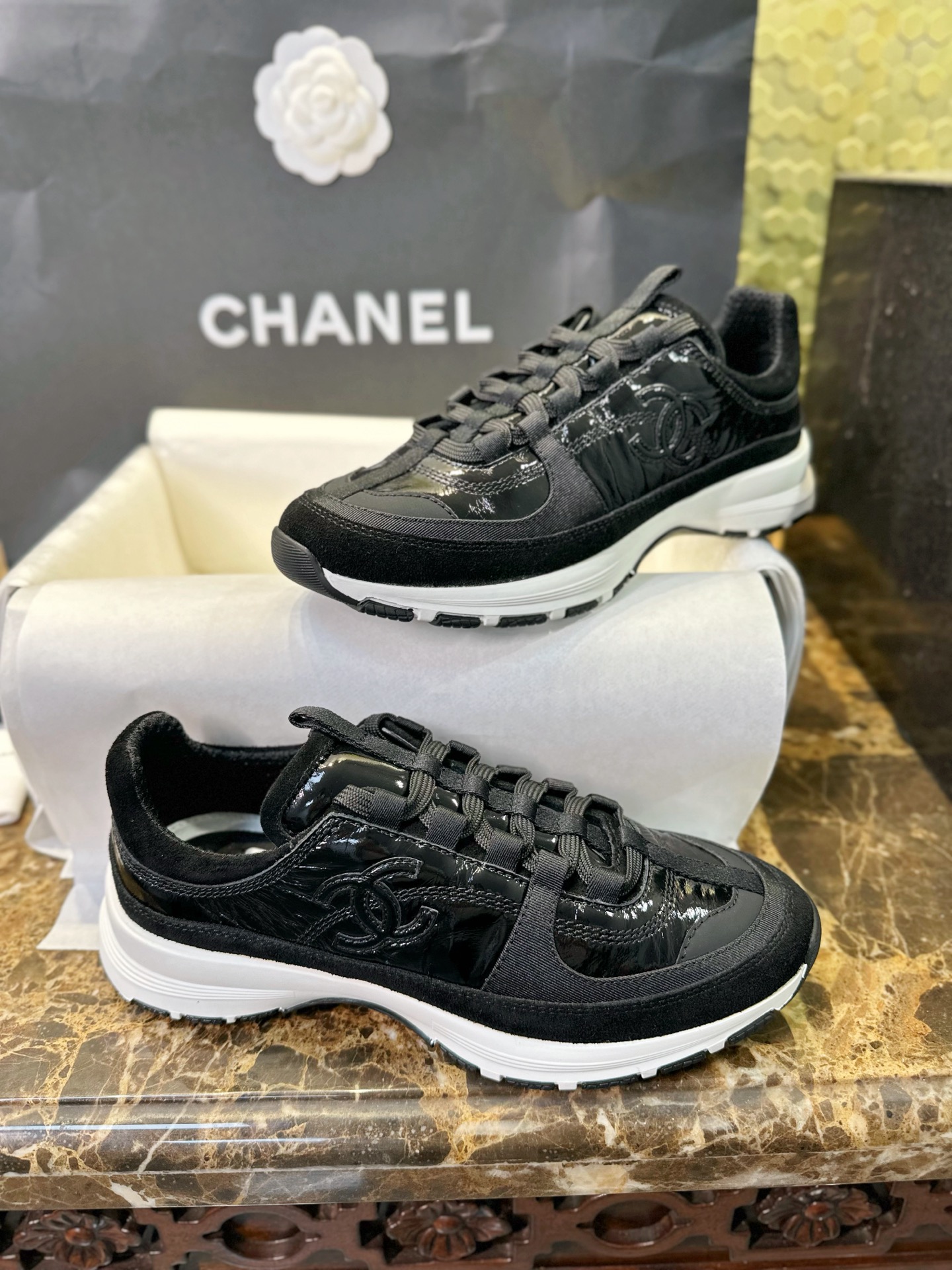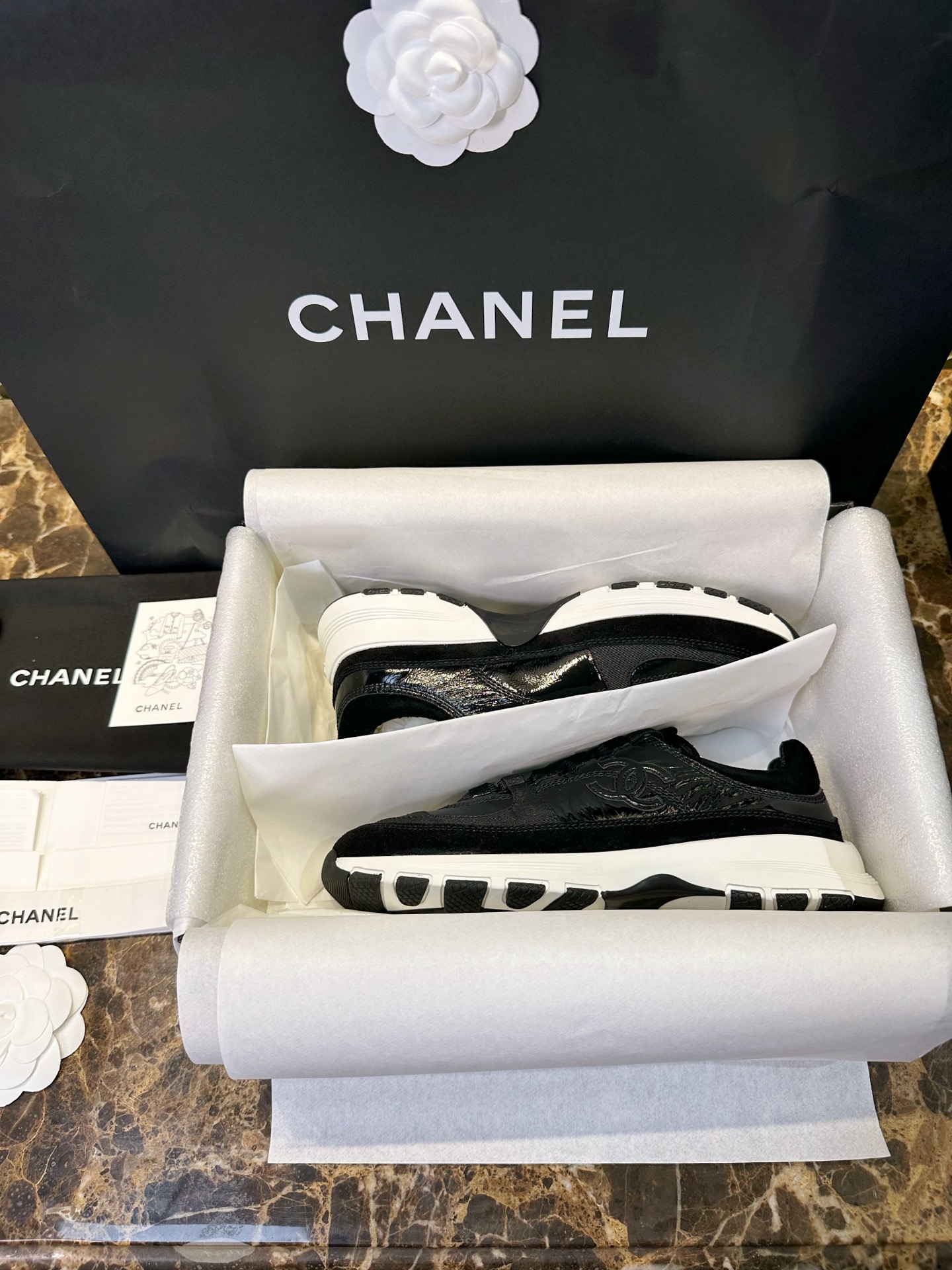 這款鞋子是AAAAA 1:1 質量(非常棒). 使用了和原版一模一樣的材料. 商標部分也保持了和香奈兒/Chanel一樣. 圖片拍攝是實物鞋子拍攝, 您所收到的實物保證和我們圖片一模一樣.