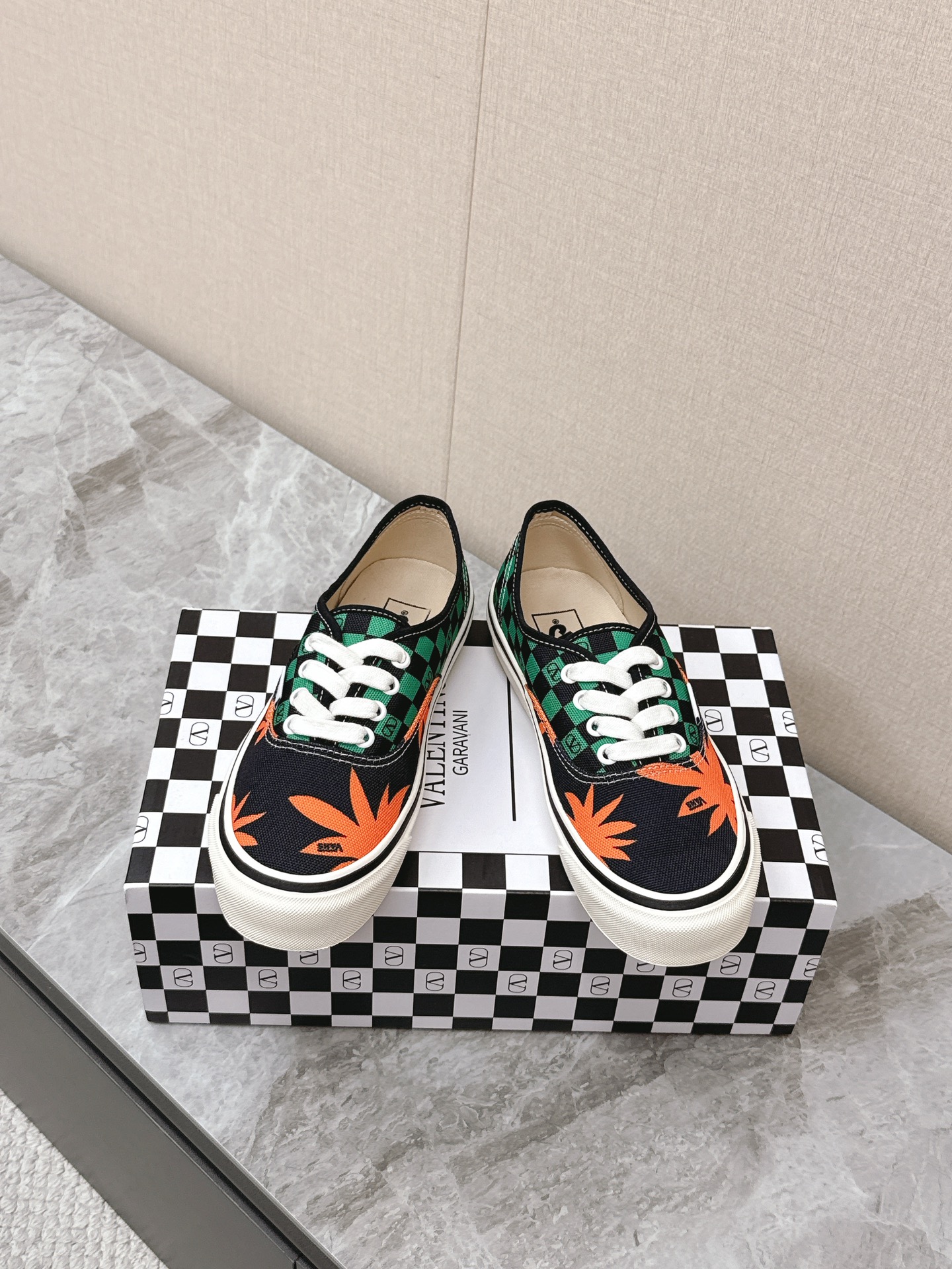 這款鞋子是AAAAA 1:1 質量(非常棒). 使用了和原版一模一樣的材料. 商標部分也保持了和瓦倫蒂諾/Valentino一樣. 圖片拍攝是實物鞋子拍攝, 您所收到的實物保證和我們圖片一模一樣.